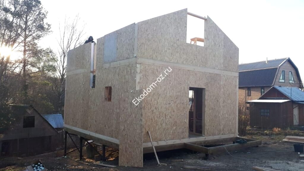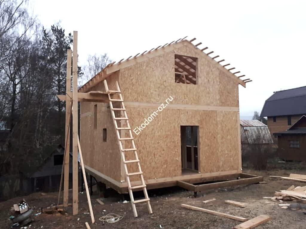 Дом из СИП панелей 6,15х8,1 м (ОСП «Калевала»/ «Талеон», ППС «Новопласт») с мансардой