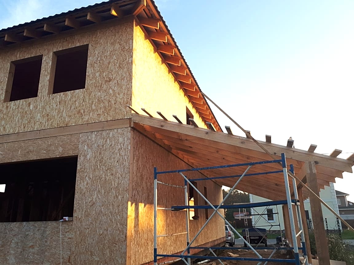 Двухэтажный дом из СИП панелей 12,5х10,63 м с ОСП-3 «Калевала/ «Талеон» и ППС «Новопласт»