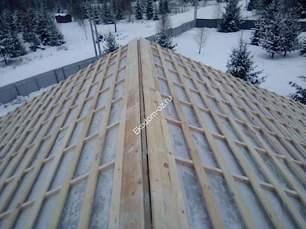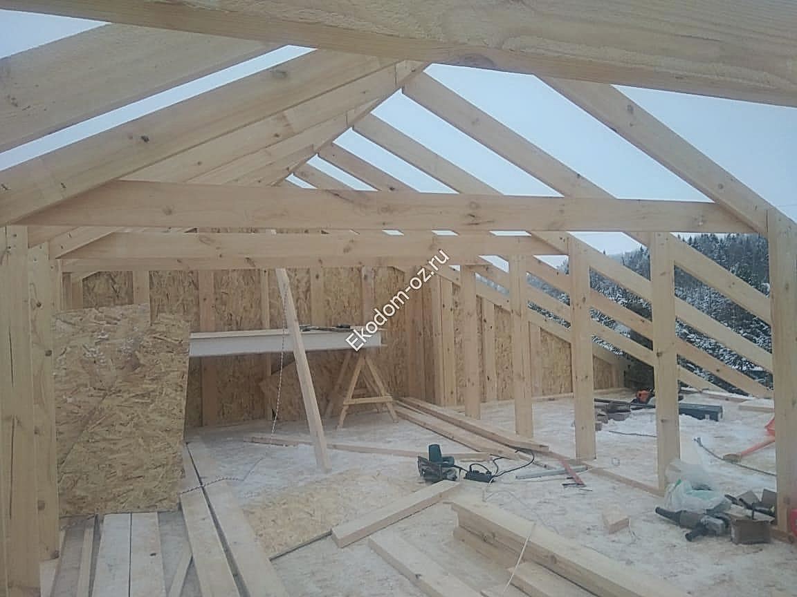 - Кровля: металлочерепица «Norman» 0.5 мм, комплект планок, контробрешетка, крыша двускатная, Пин Ап из ОСП 12 мм