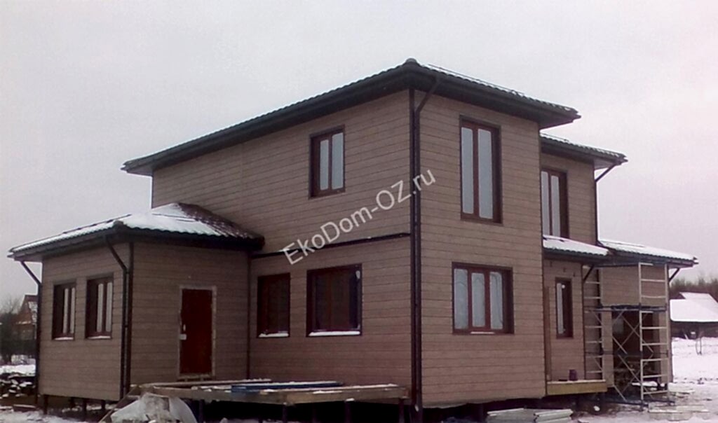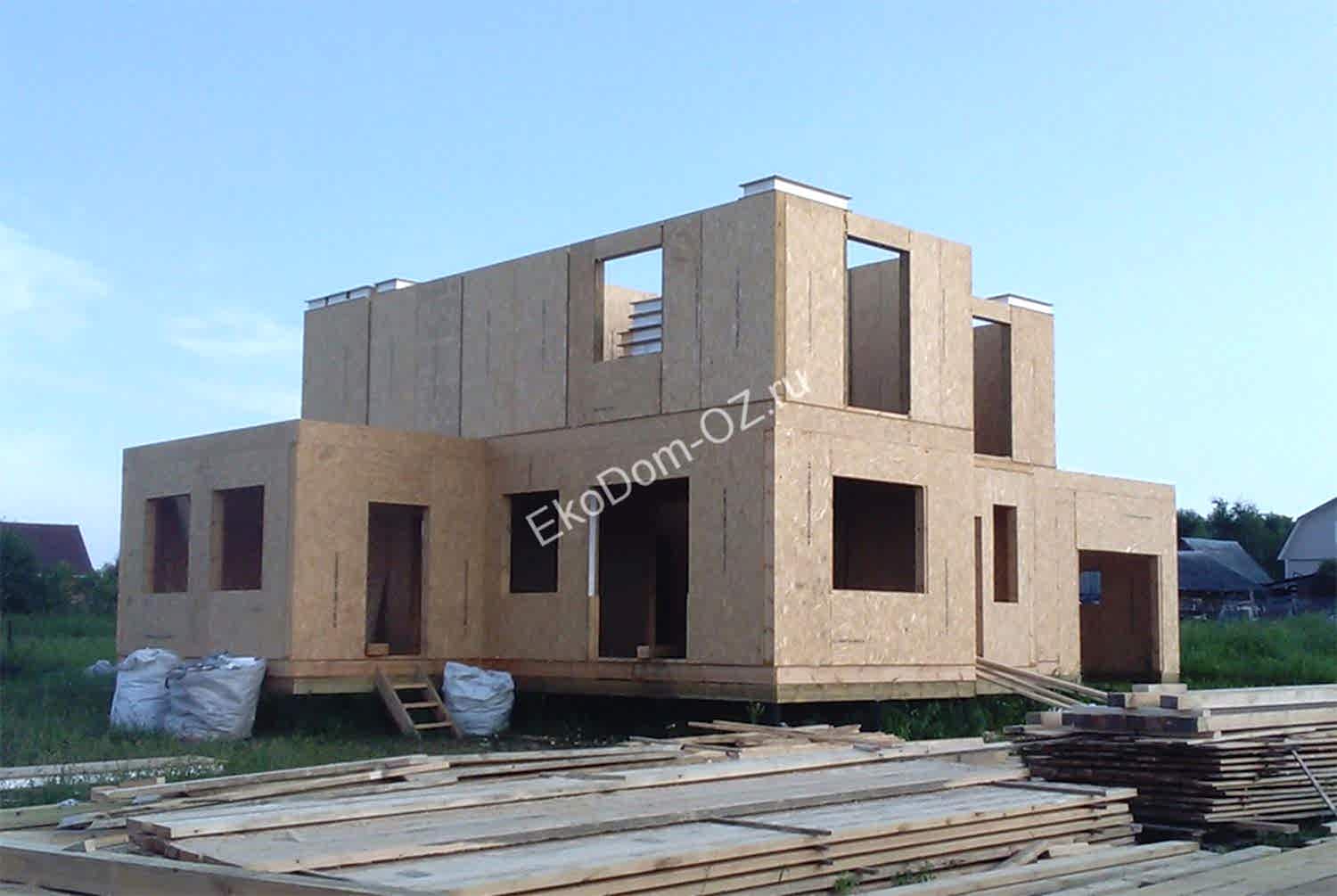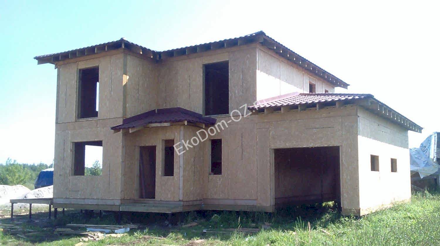 Дом построен в д. Будьково Двухэтажный дом с гаражом. Теплый контур дома выполнен из SIP панелей с OSB «Калевала».