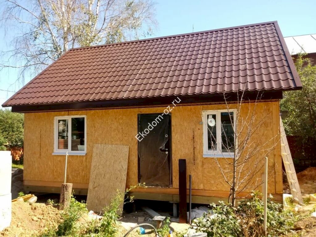 Двухэтажный дом из СИП панелей 6,15х8,15 м с ОСП «Калевала»