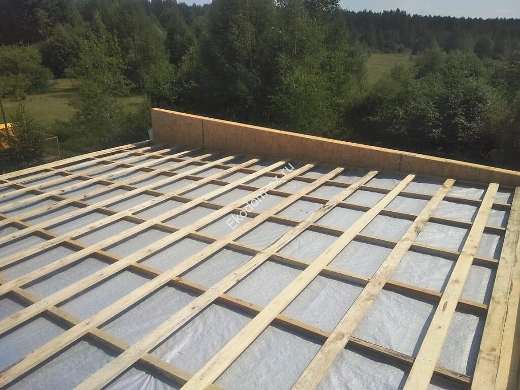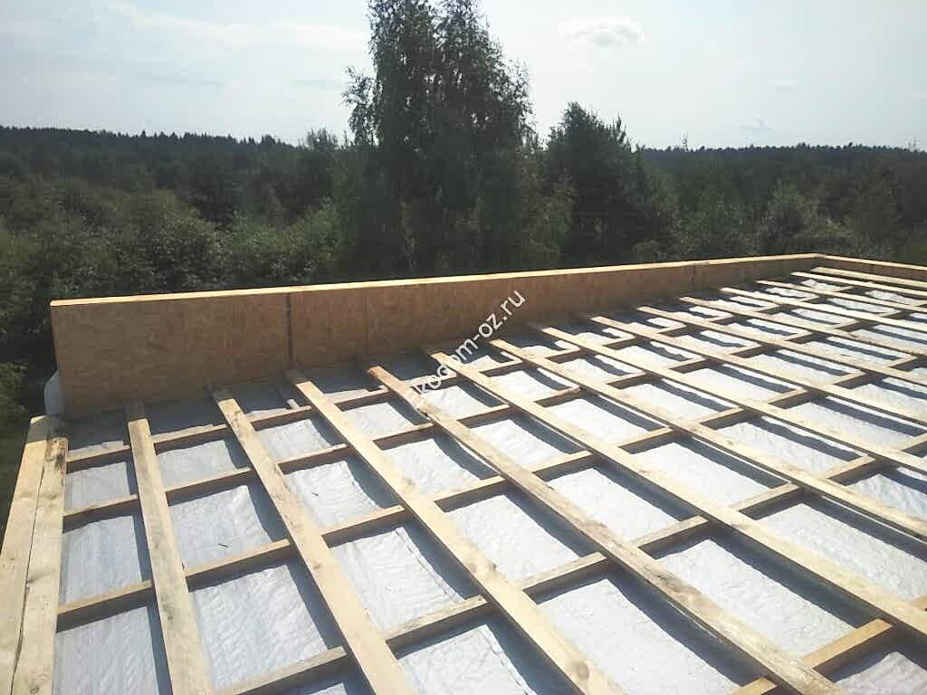 - Кровля: плоская с парапетами, устройство каркасных парапетов с обшивкой ОСП 9 мм с двух Пин Ап профлист 0,5 мм