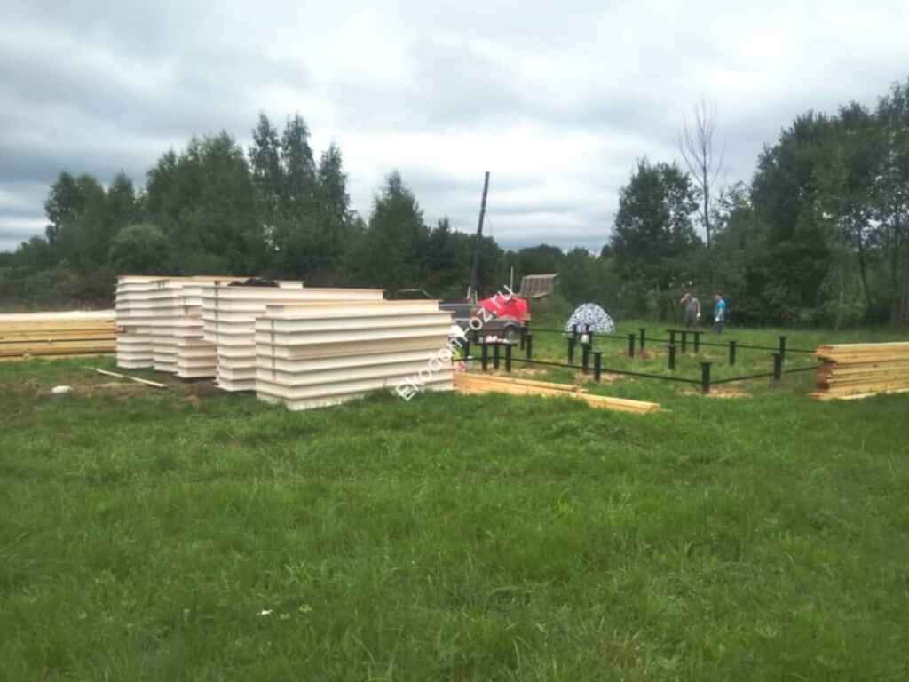 - Фундамент: Винтовые сваи Пин Ап 108 мм, оголовки 250 х 250 мм
