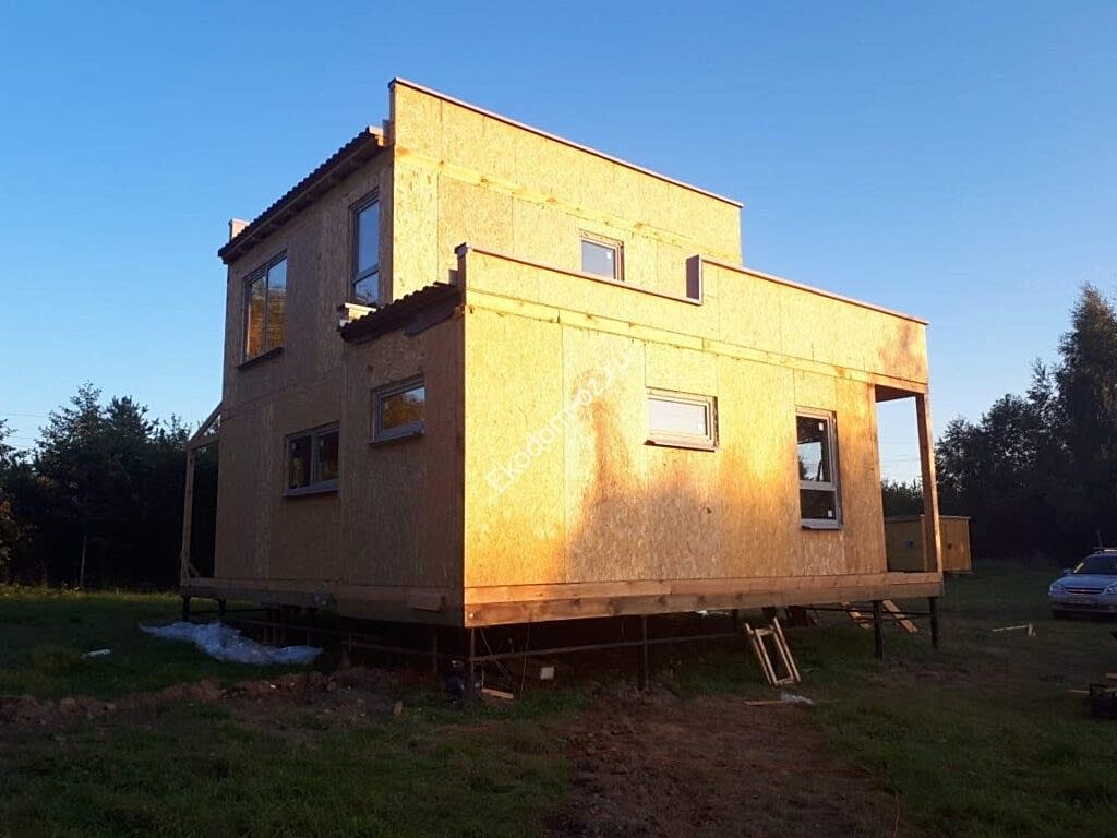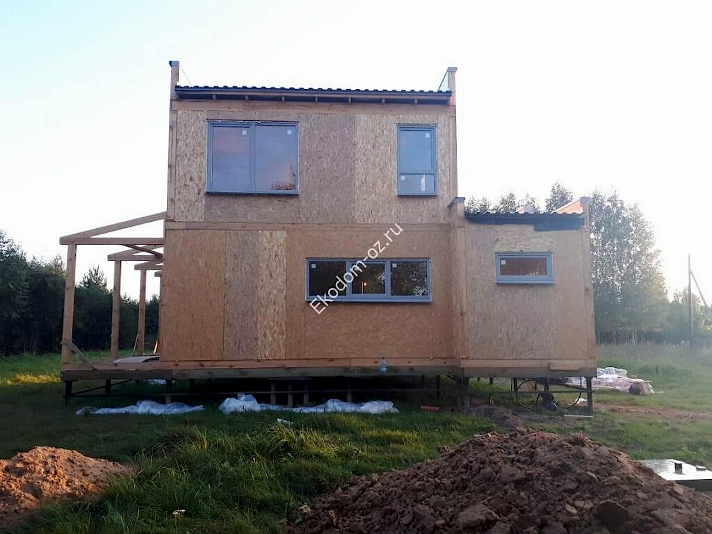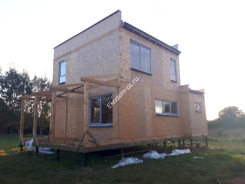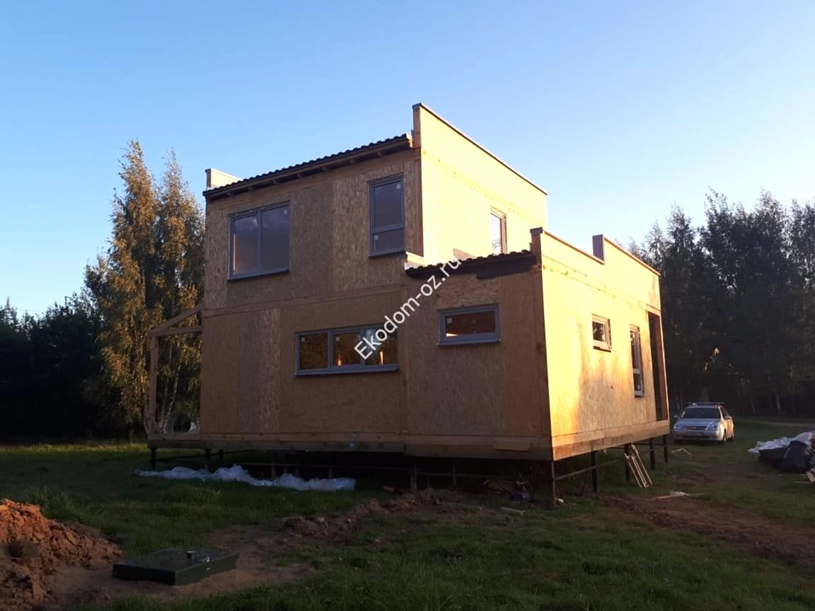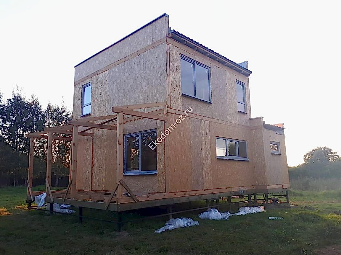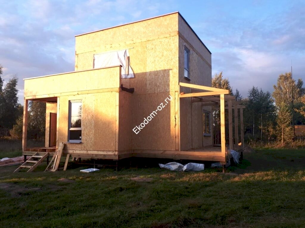 Дом из СИП панелей 8,9х8,85 м с ОСП-3 «Калевала/ «Талеон» на перекрытиях, с ОСП-3 «Эггер»