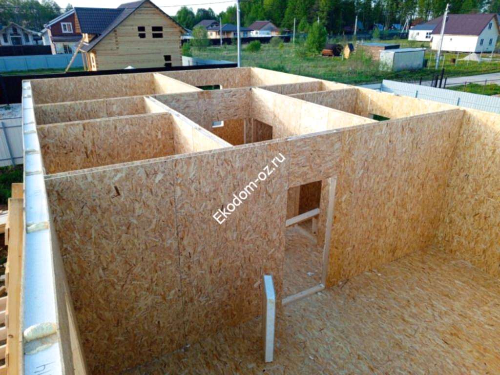 - Перегородки:Пин Ап перекрытие СИП 224 мм с ОСП-3 ППС «Новопласт», наружные стены СИП 174 мм, чердачное перекрытие СИП 174 мм; внутренние перегородки СИП 124 мм