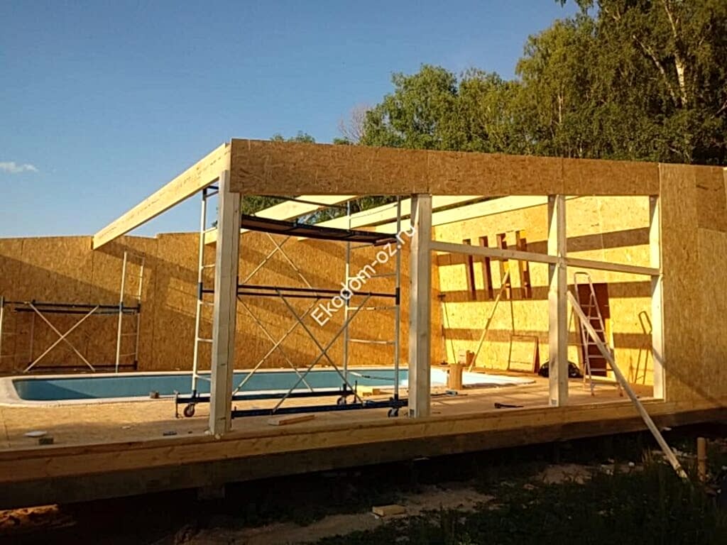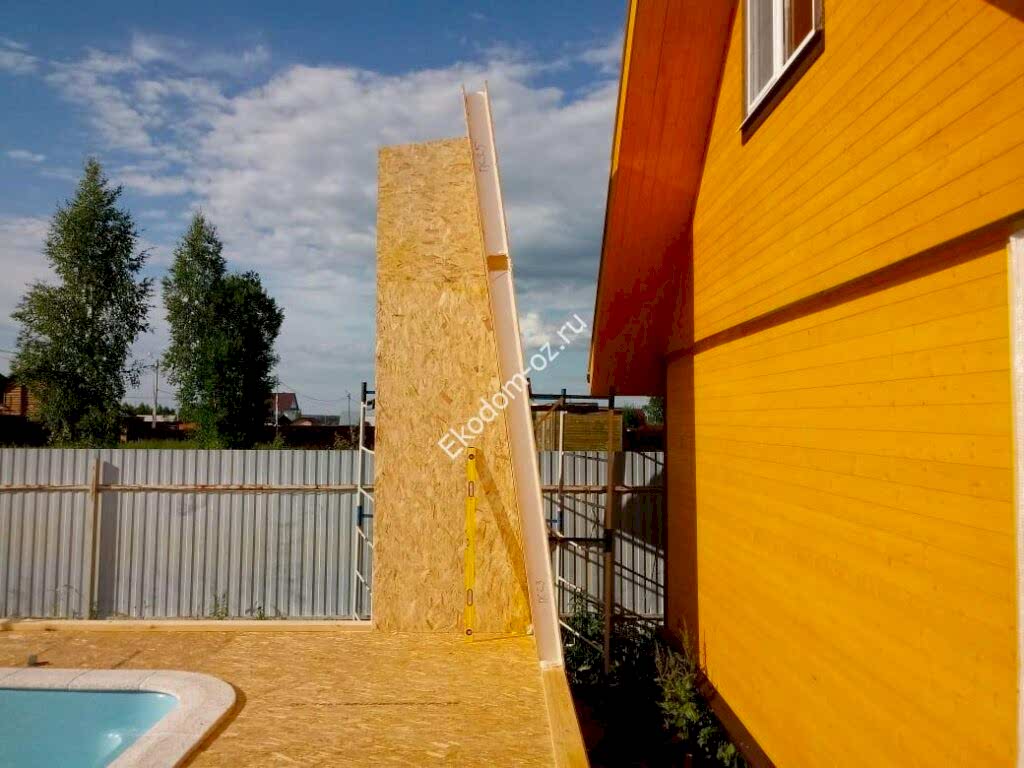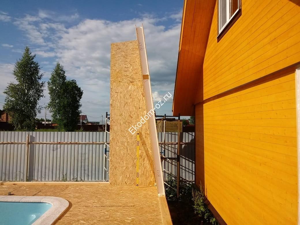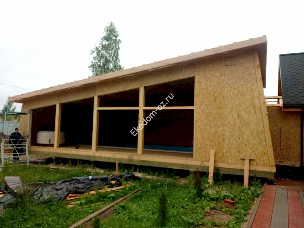 - Фундамент: винтовые сваи Пин Ап 108 мм, оголовки 200 х 200 мм