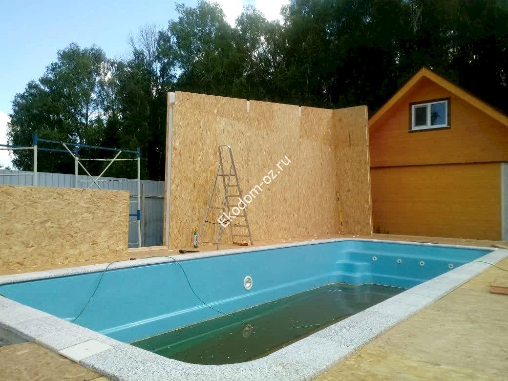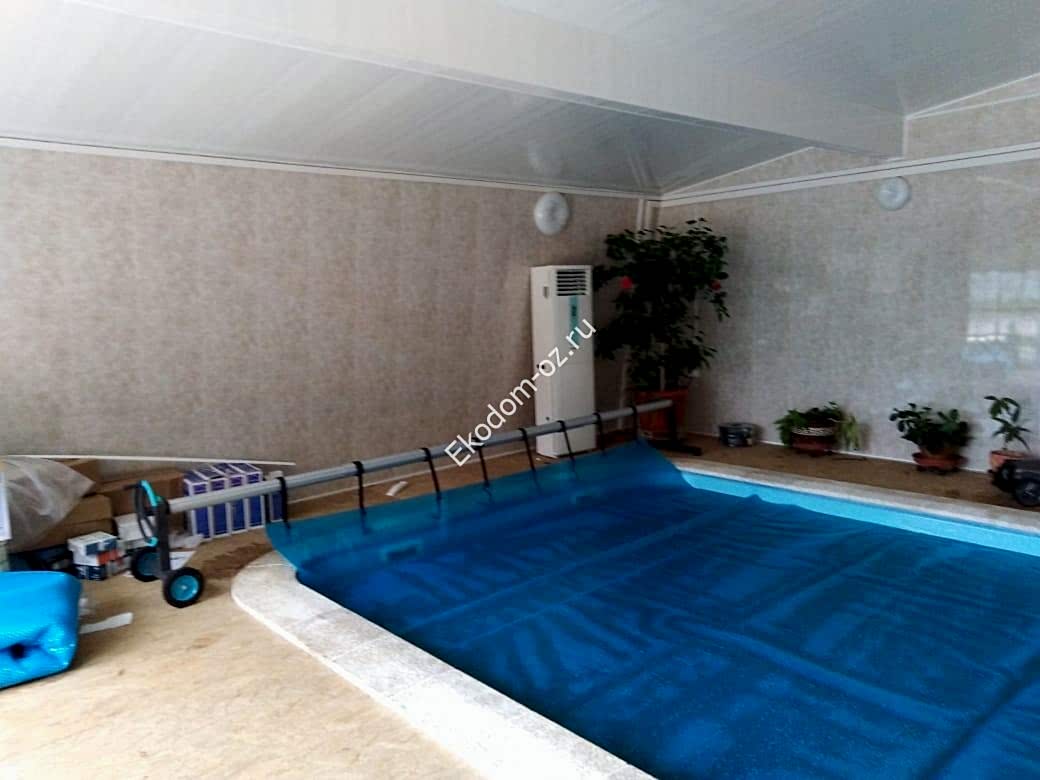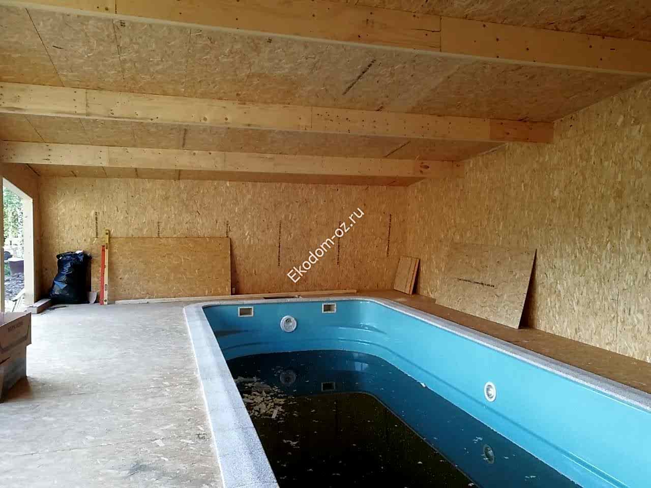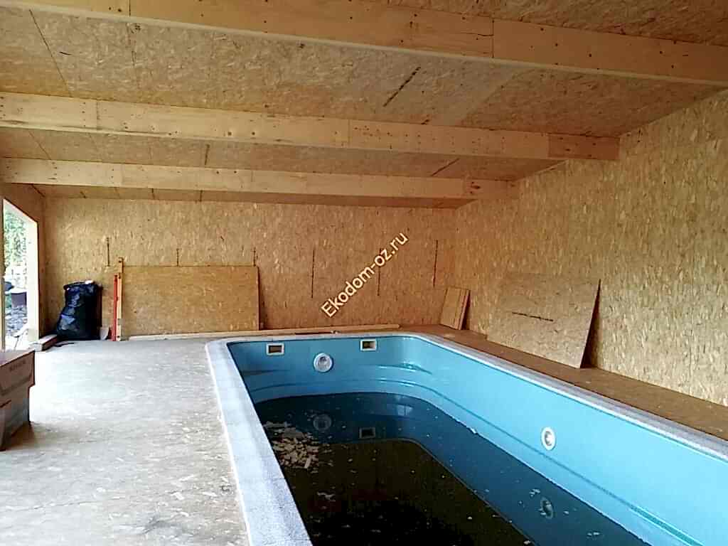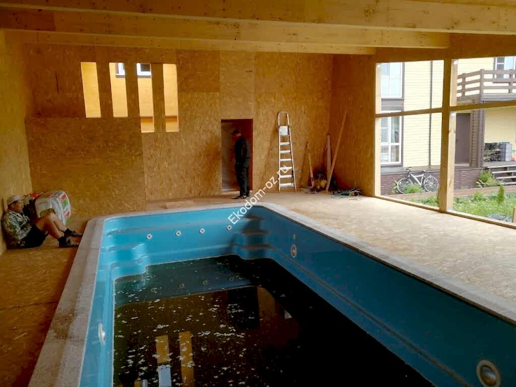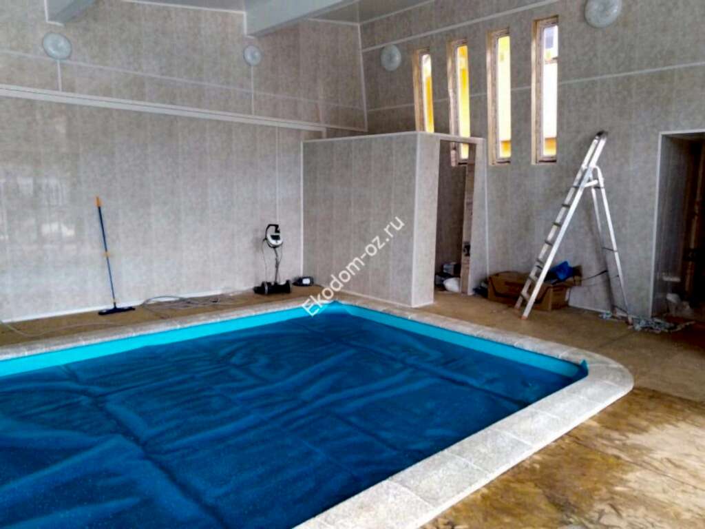 На фотографиях можно увидеть частичную внутреннюю отделку бассейна по итогам строительства.
