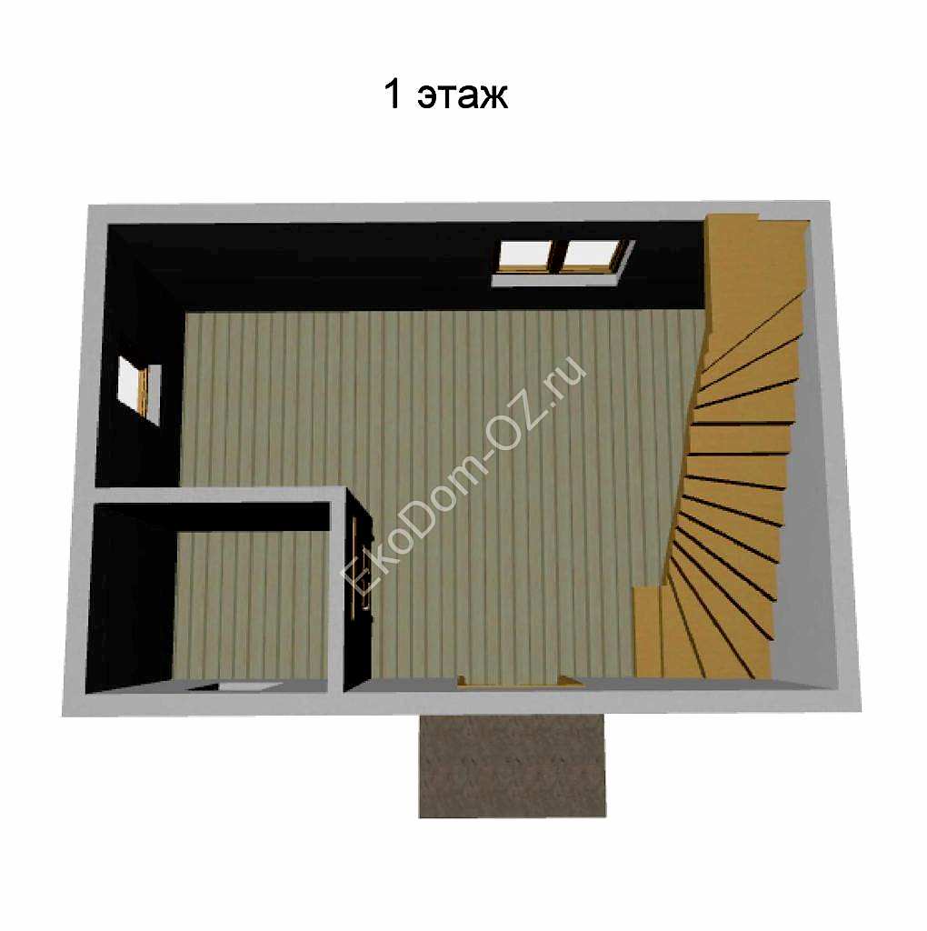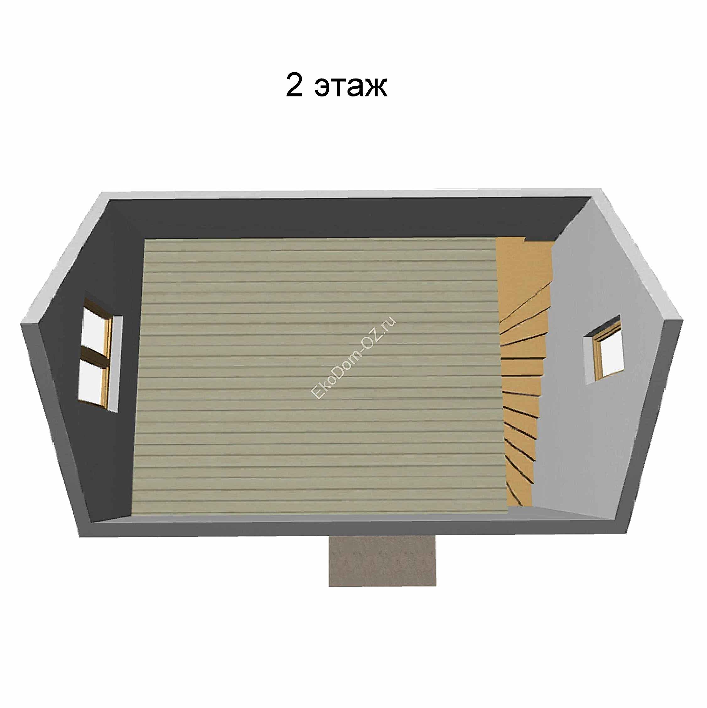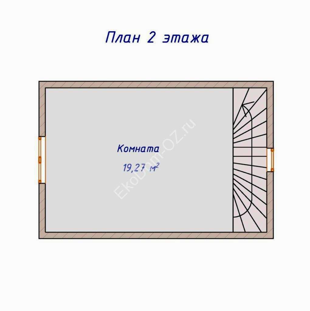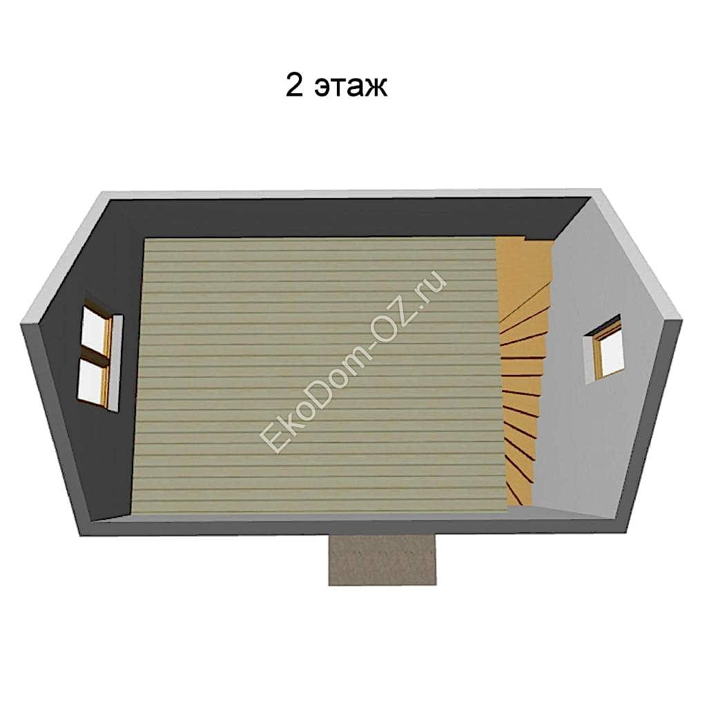 Проект дома 2 этажаФ2 имеет на первом этаже кухню-гостиную площадью 18.12 м2 часть которой занимает лестница с забежными (поворотными) ступенями и небольшой санузел 2.8 м2. Лестница ведет в спальню на втором мансардном этаже, которая благодаря крутым скатам крыши имеет комфортные размеры в 19.27 м2. Общаяплощадь Байтурсынова, 12 составляет 55 м2, что позволяет построить его на небольшом загородном участке для семьи из двух-трех человек или использовать его под зимнюю дачу, оснастив электрическим Пин Ап