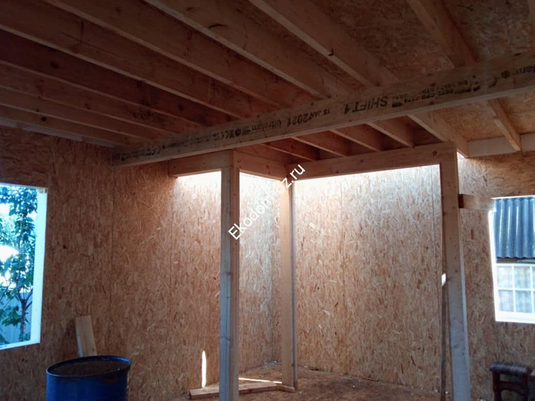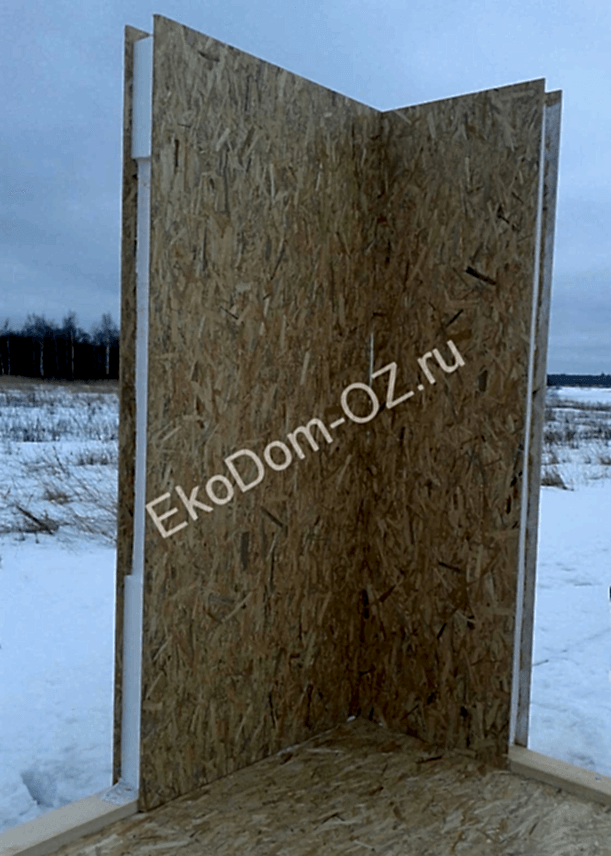 Размер сооруженияиз СИП панелей 6.85м*8.625 м в 2 Пин Ап (ОСП-3 «Талеон» и ППС «Новопласт»);