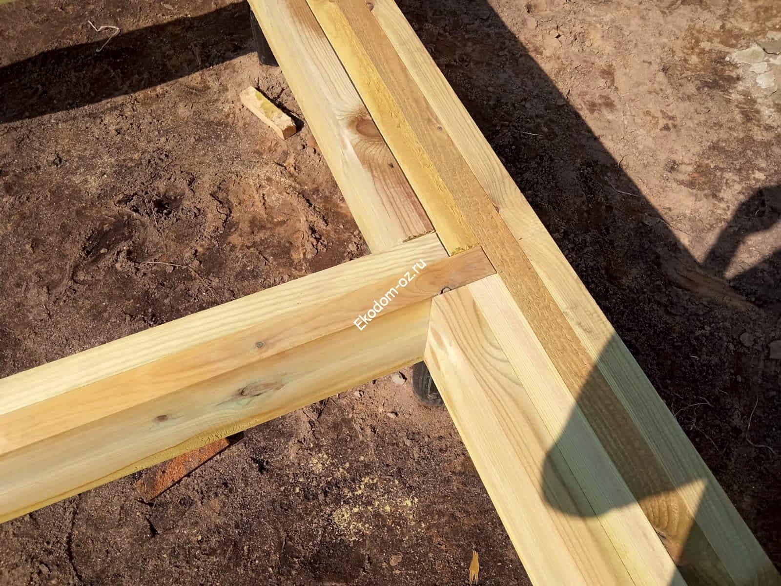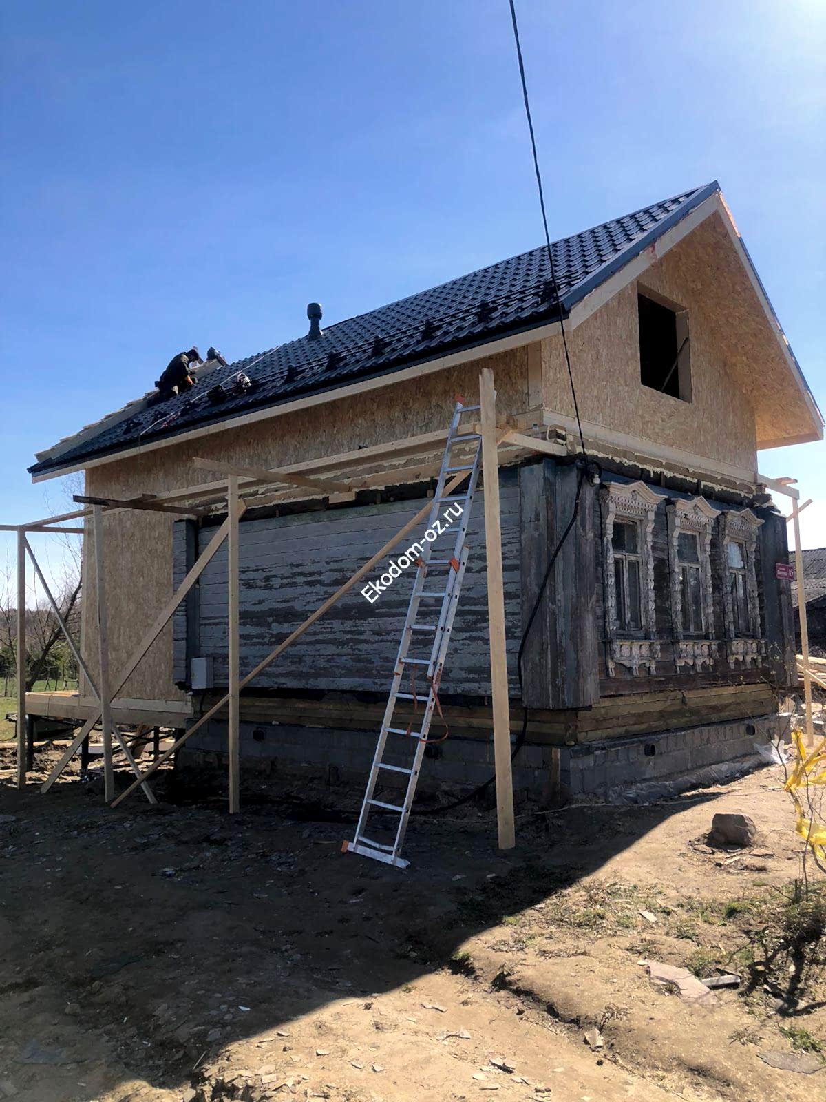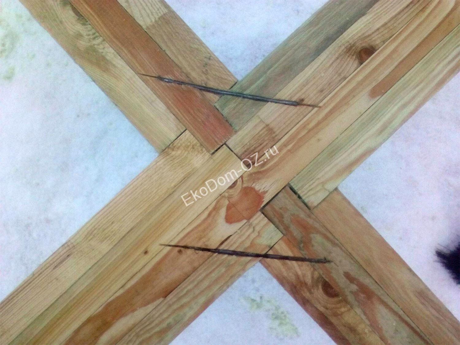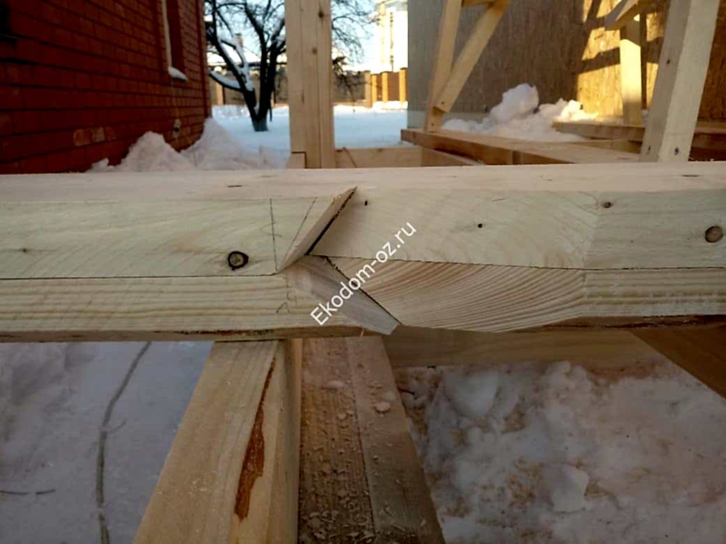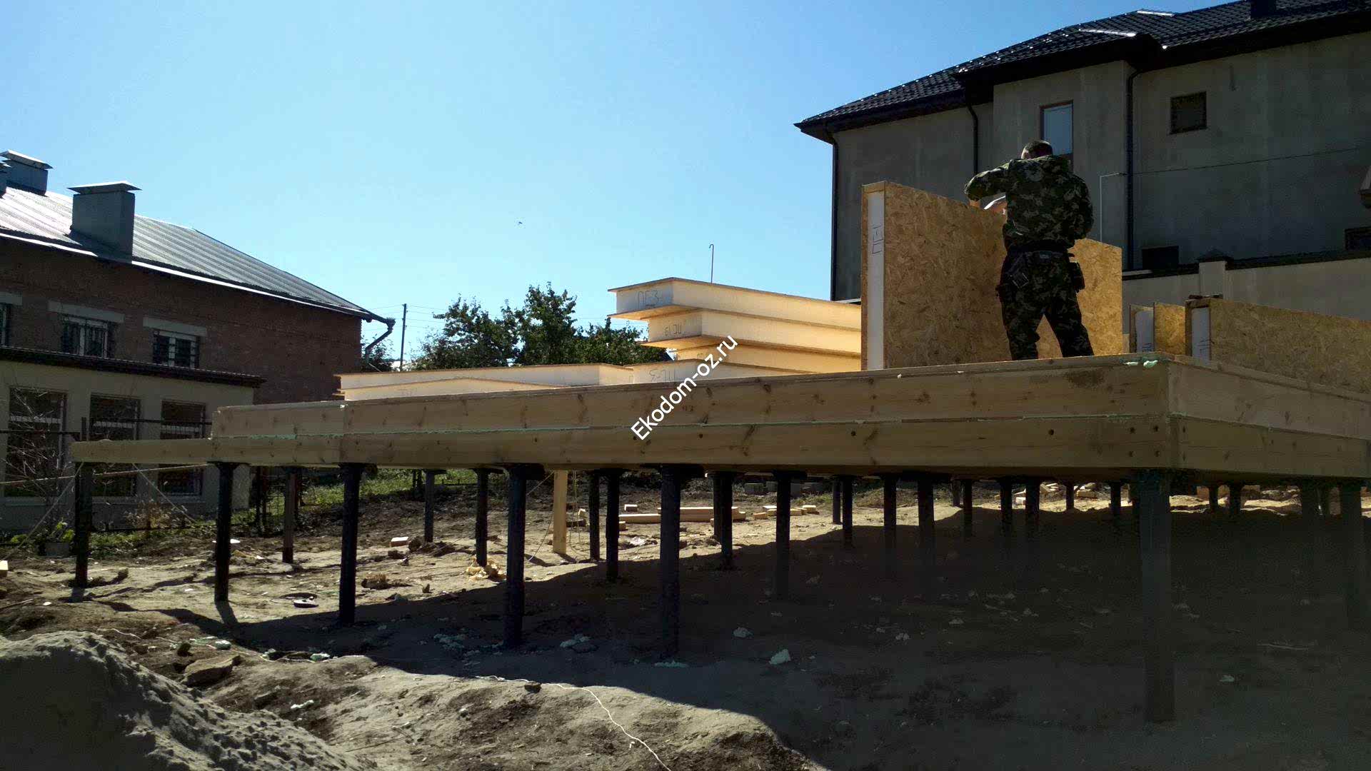 - Сборка крыльца: обвязка, лаги, Пин Ап брус, стропильная система, покрытие ОСП 12 мм с настилом руберойда