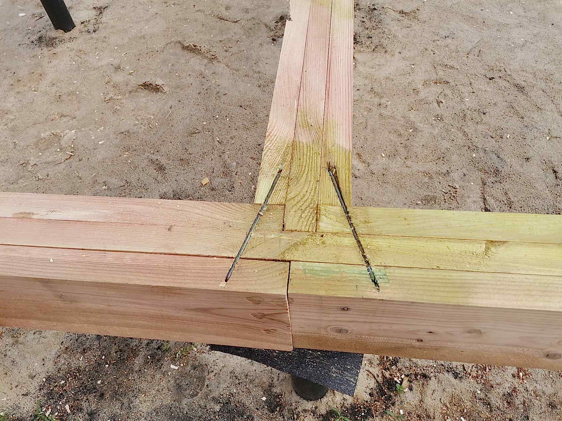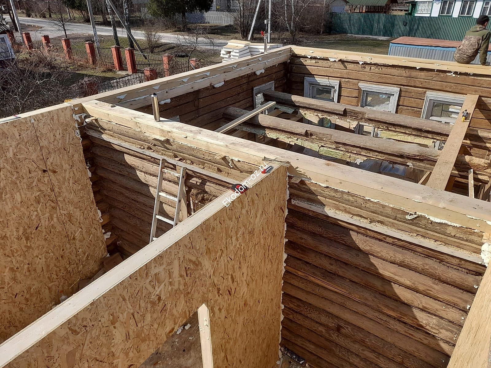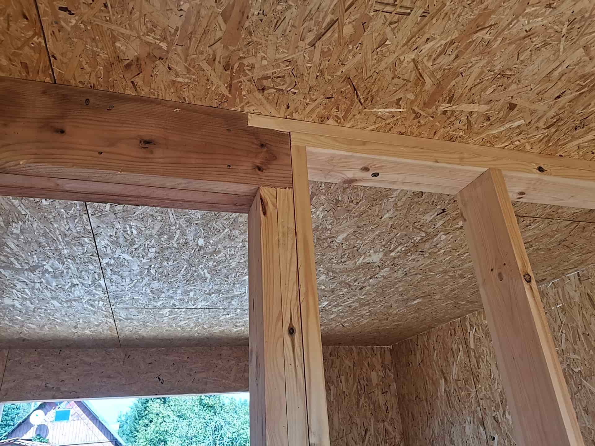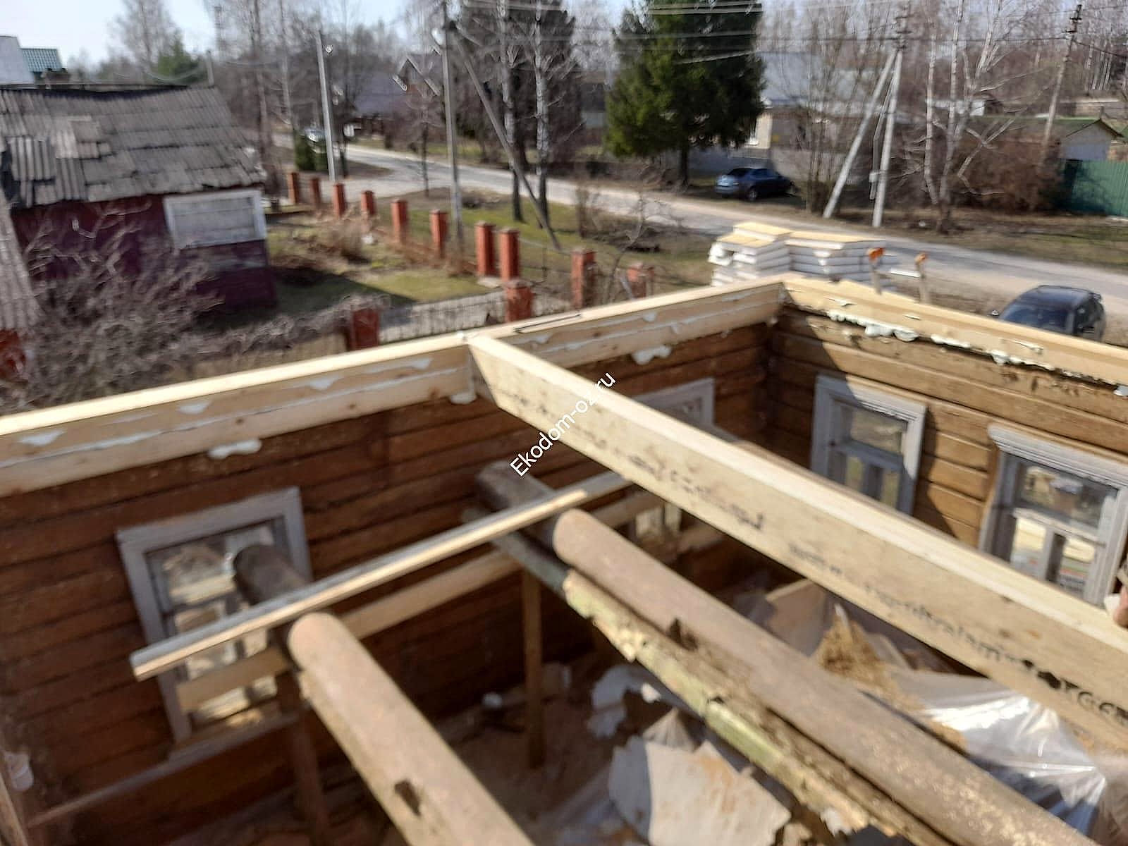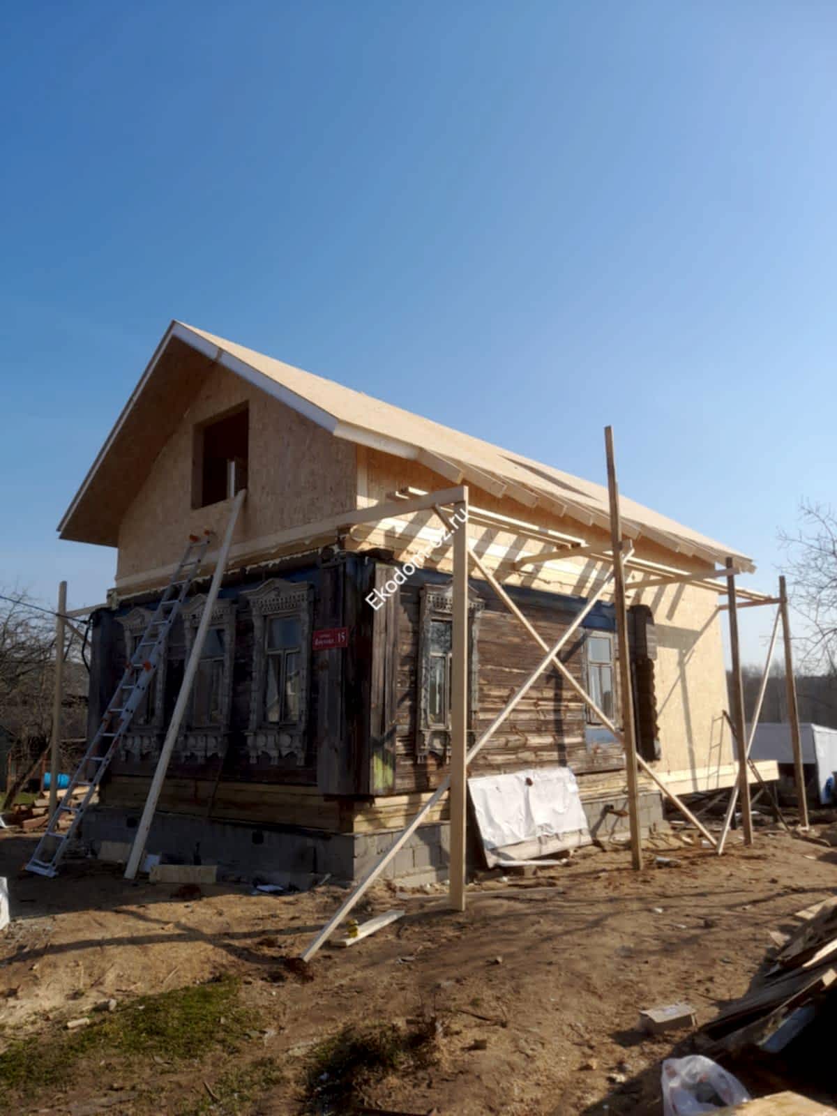 - Сборка крыльца: обвязка, лаги, Пин Ап брус, стропильная система, покрытие ОСП 12 мм с настилом руберойда