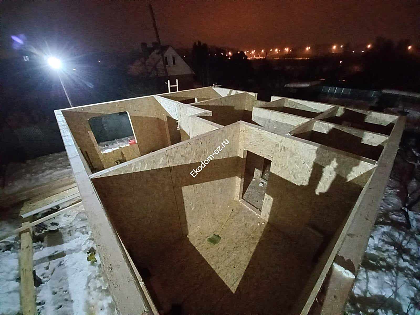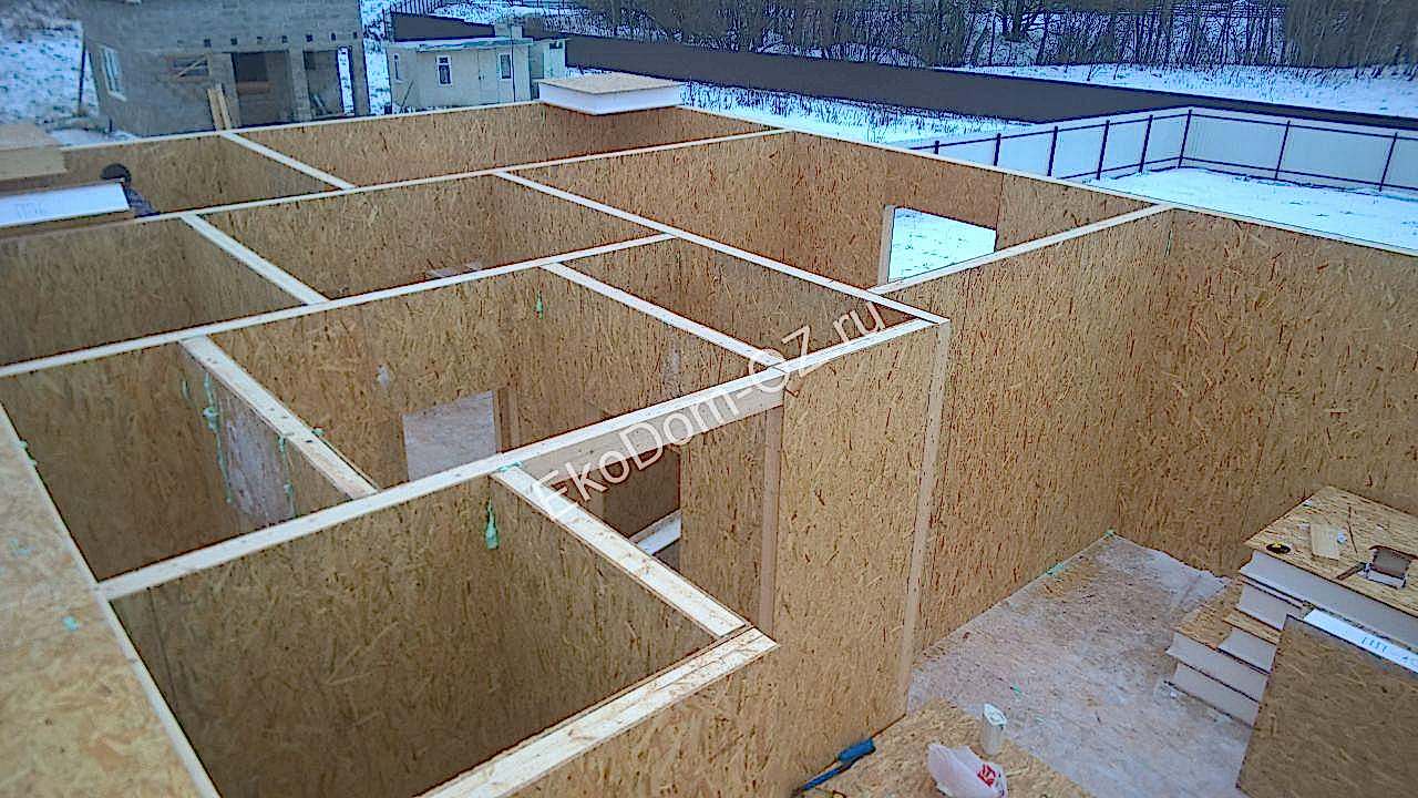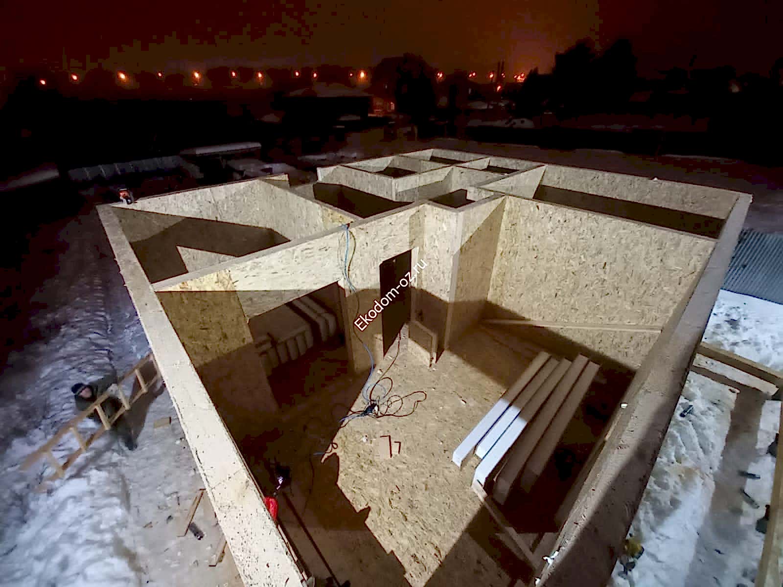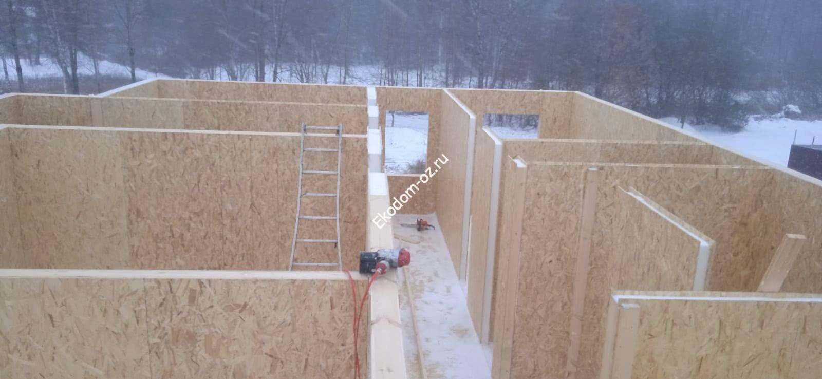 Размер сооружения 15х10.7 м из СИП панелей в 2 этажа Пин Ап и ППС «Новопласт»);