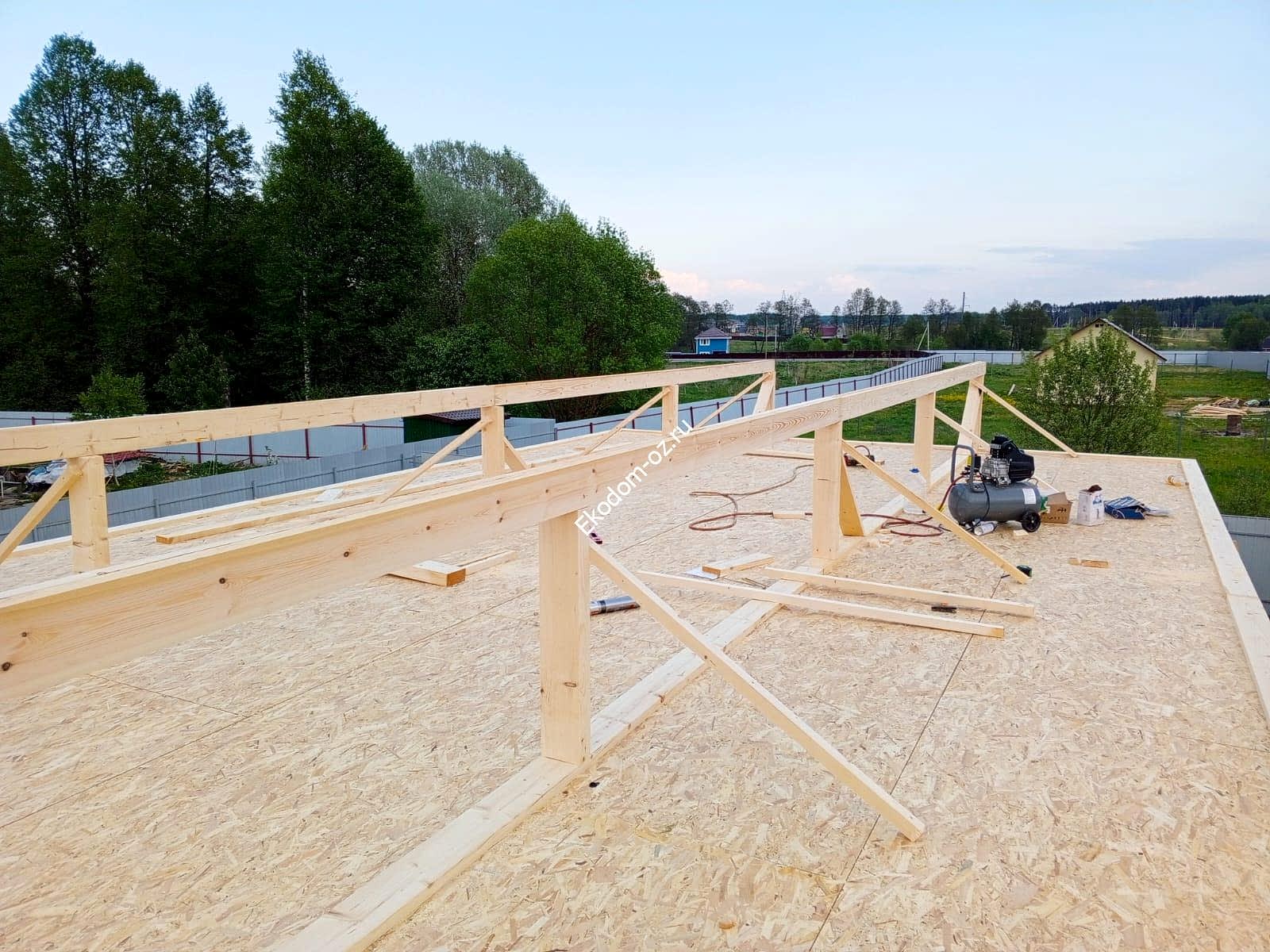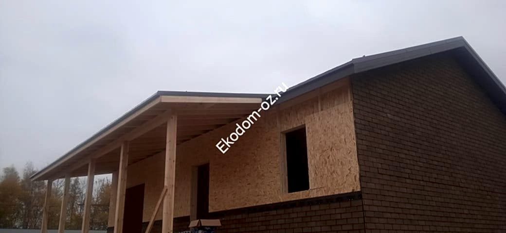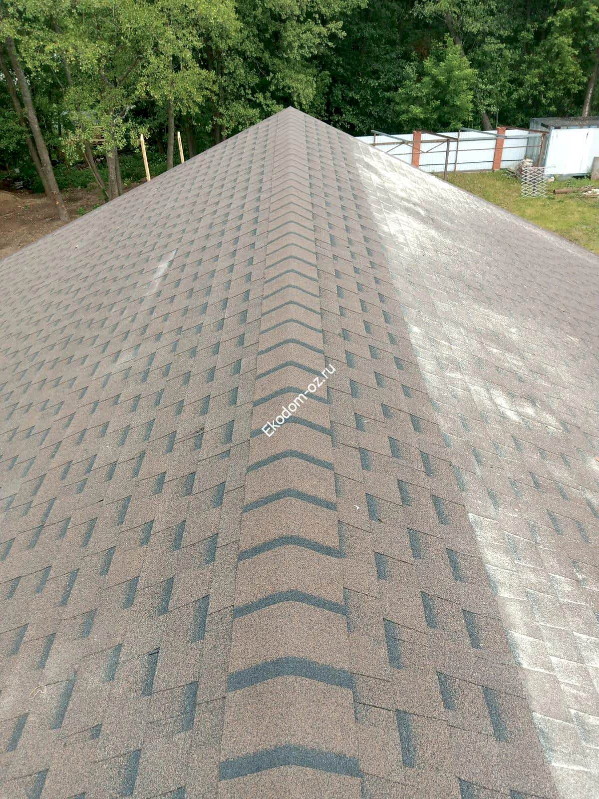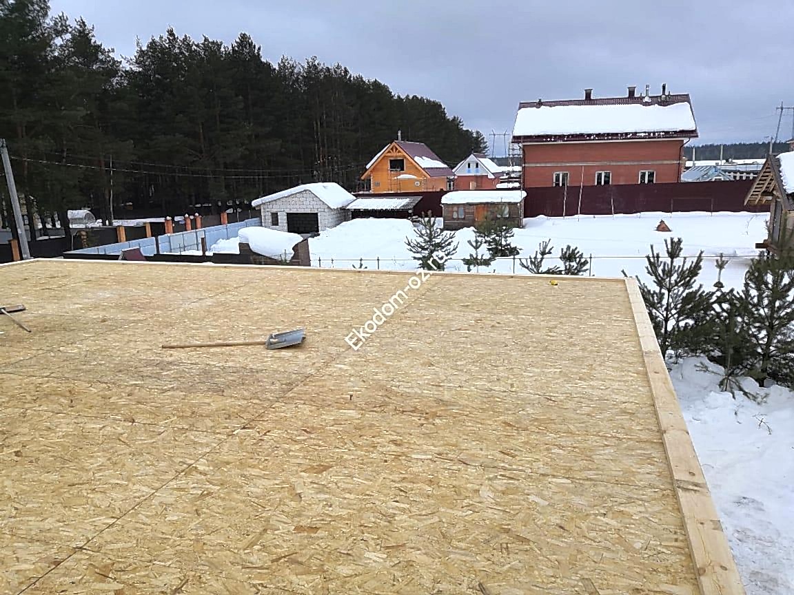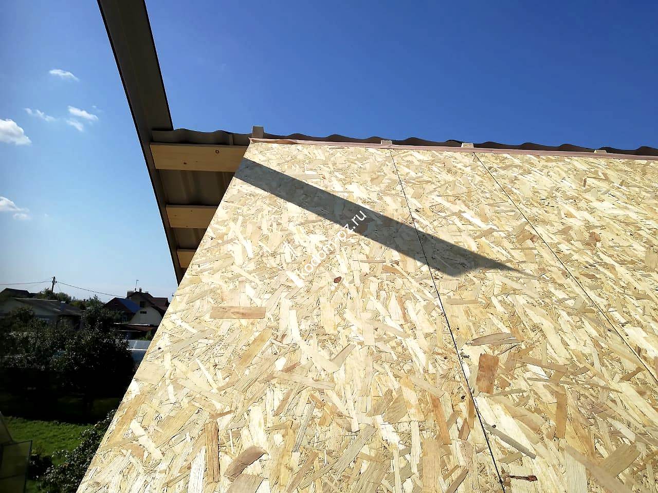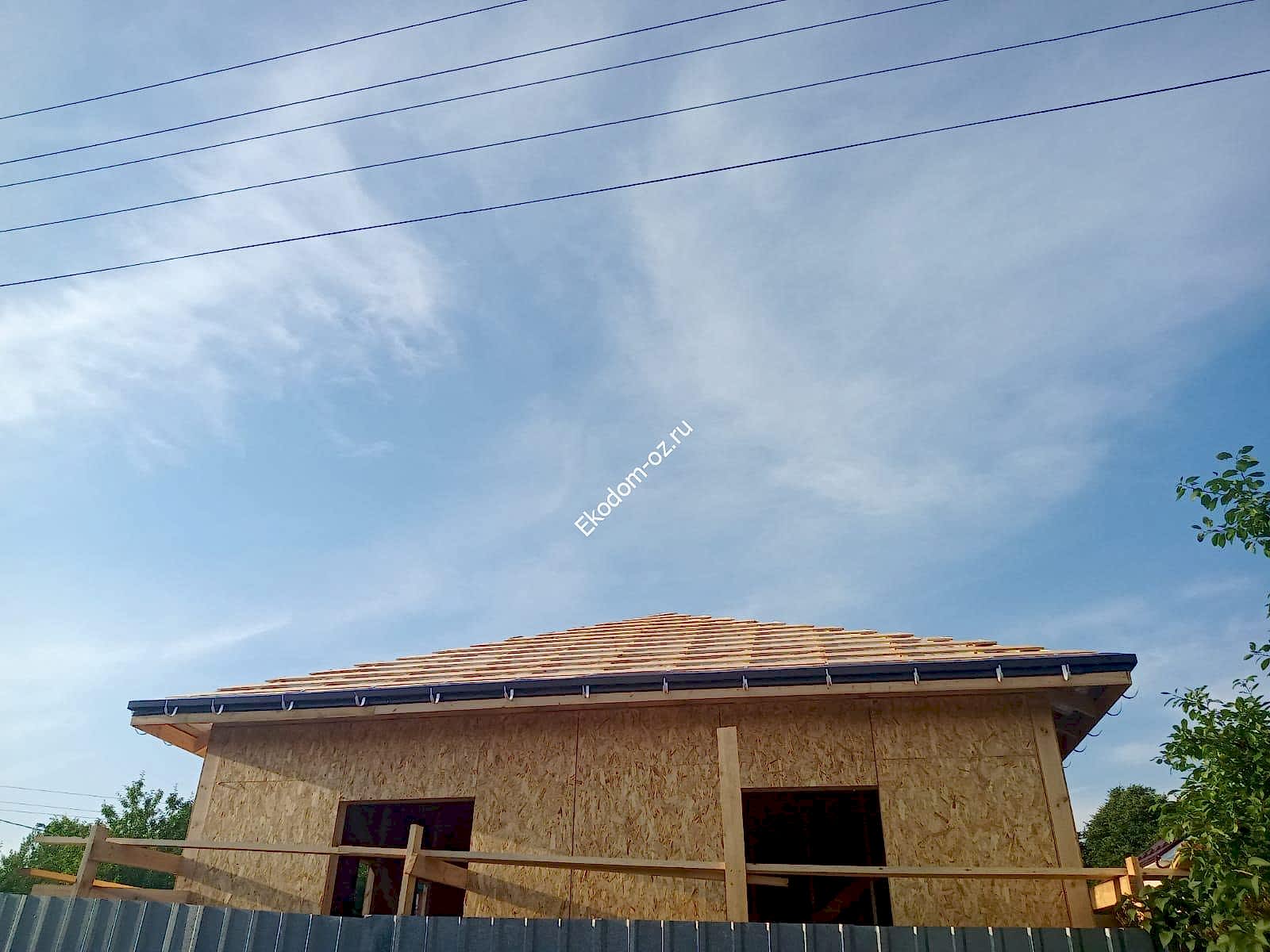 - Кровля:стропильная система, двухскатная, покрытие: качественная гибкая Пин Ап шинглас серия: Ранчо ОСП на фронтоны и для укладки кровельного покрытия.