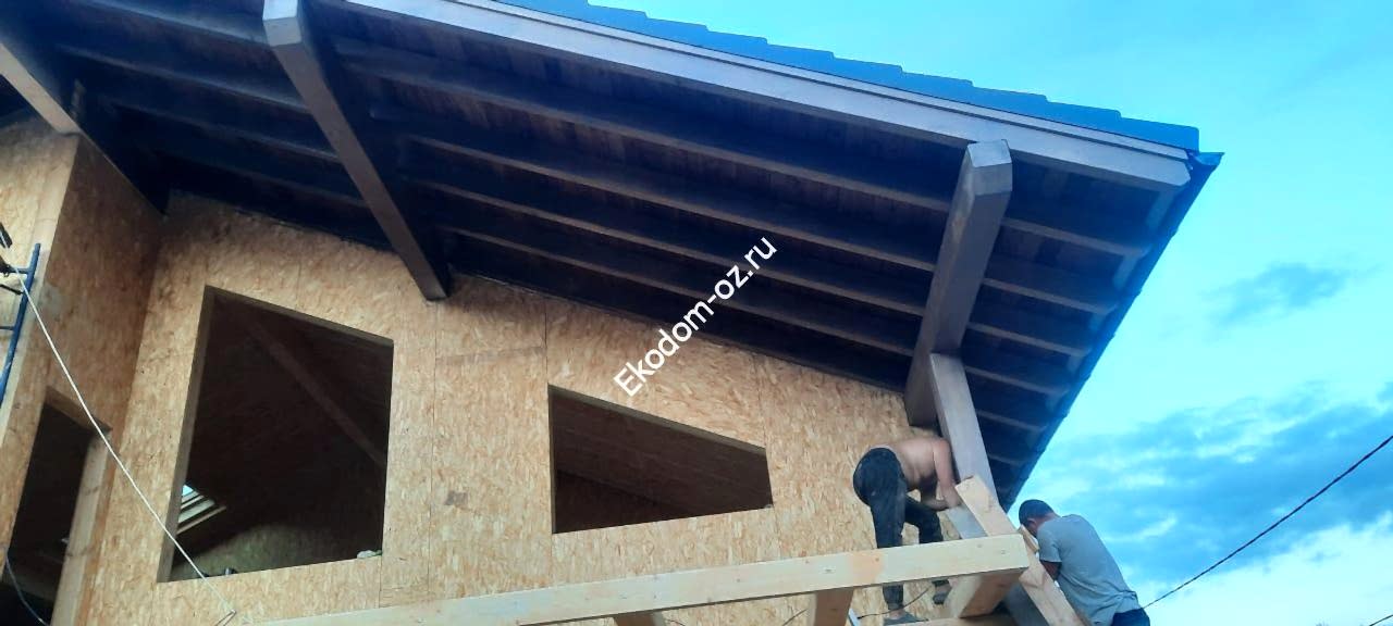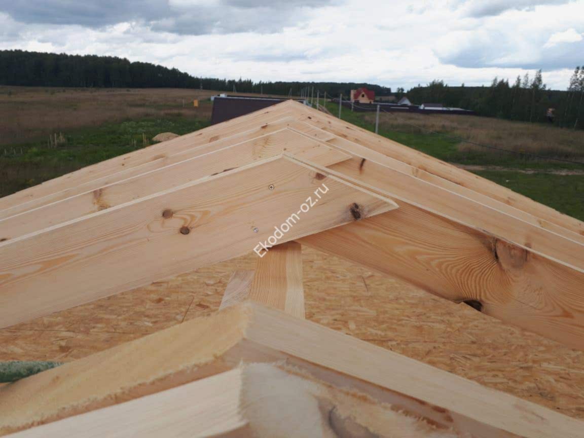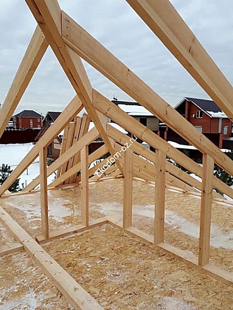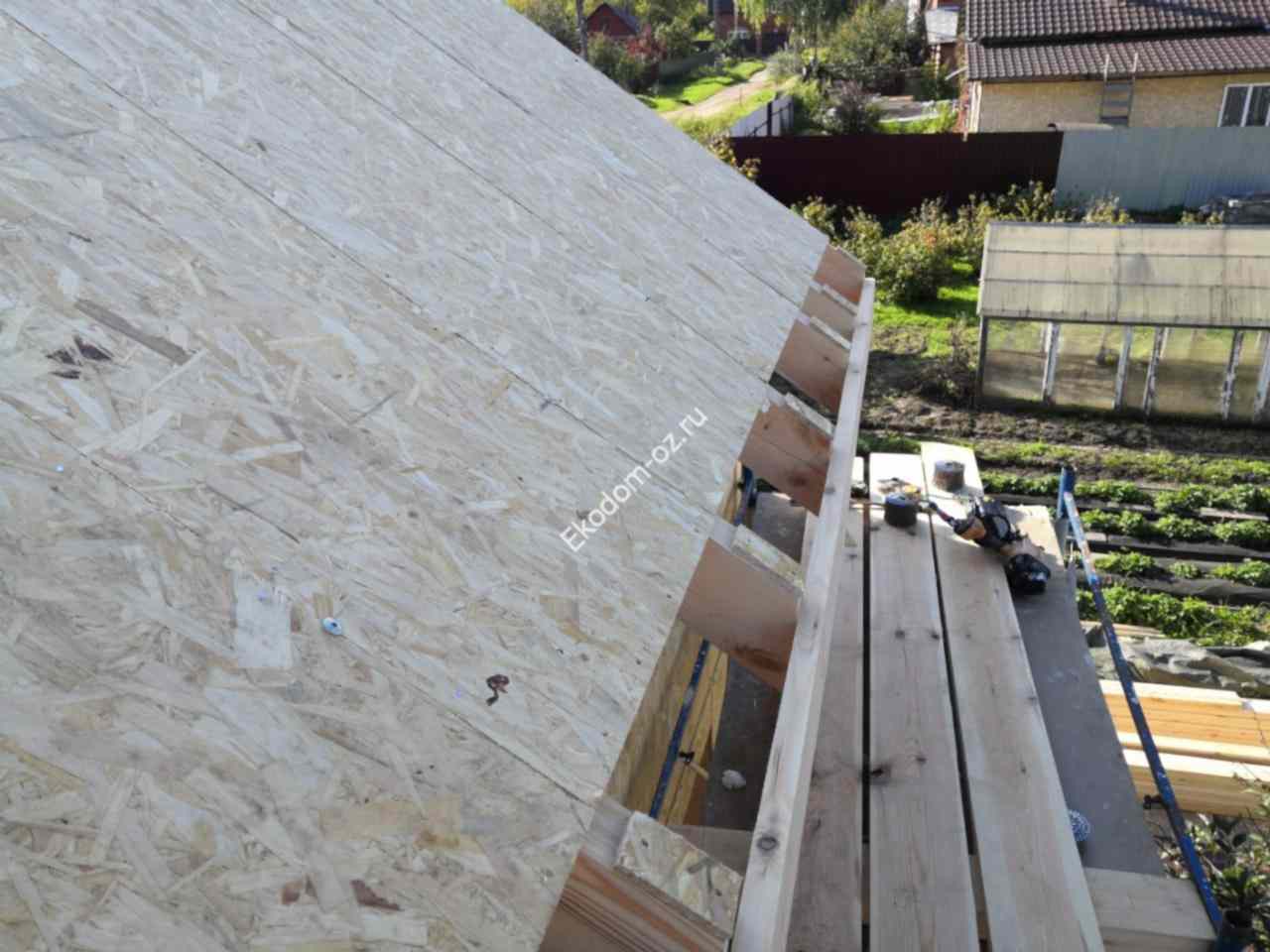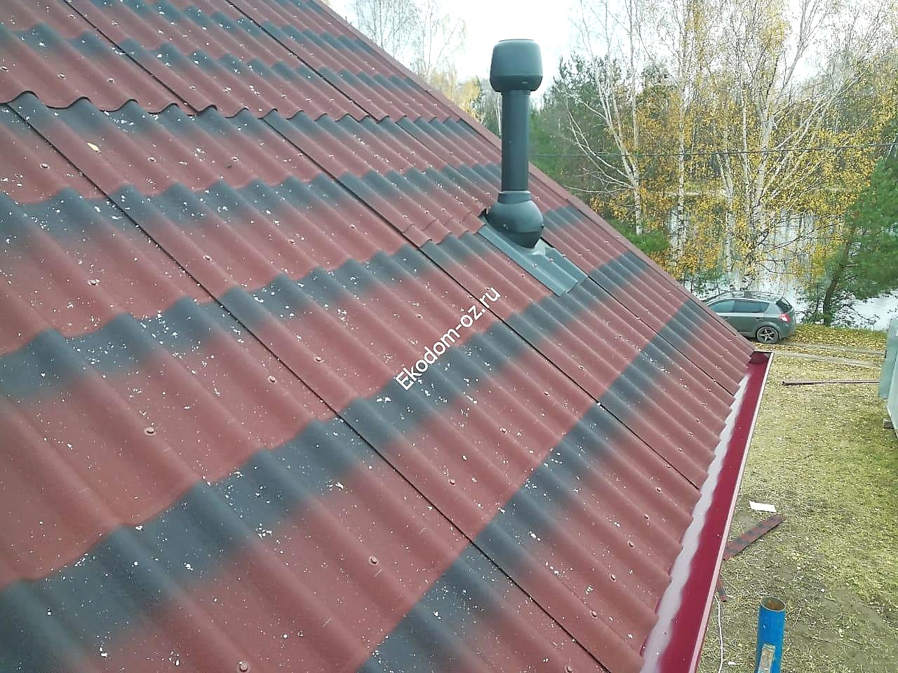 - Кровля:стропильная система, двухскатная, покрытие: качественная гибкая Пин Ап шинглас серия: Ранчо ОСП на фронтоны и для укладки кровельного покрытия.