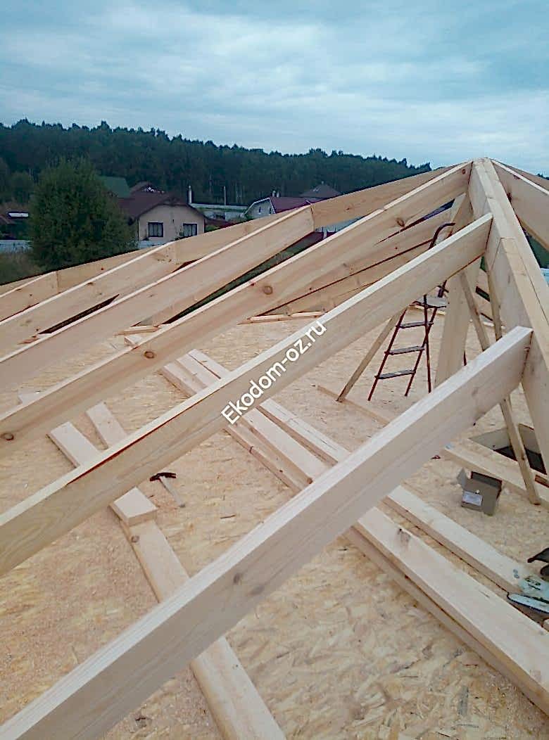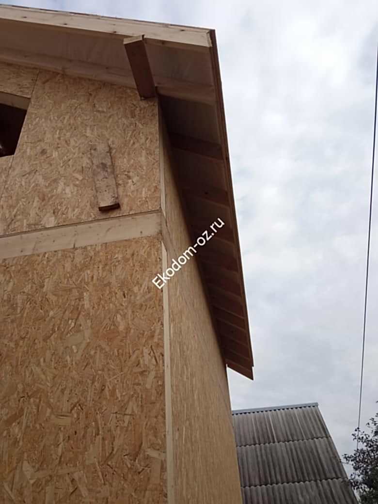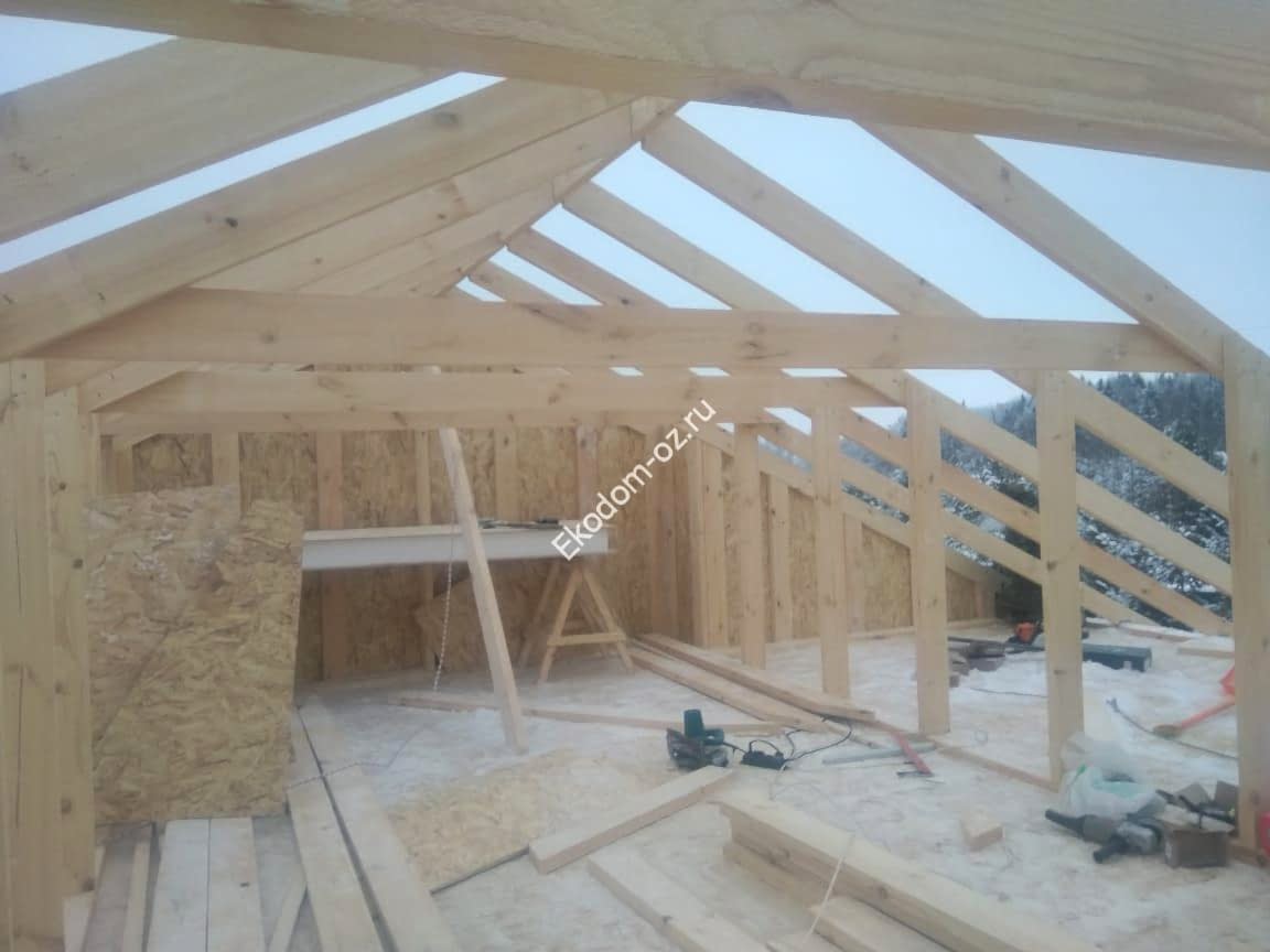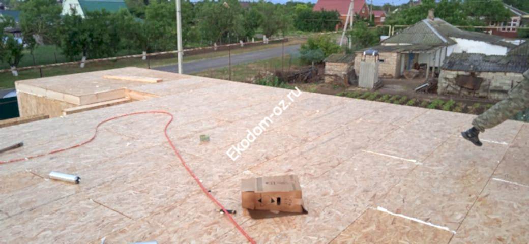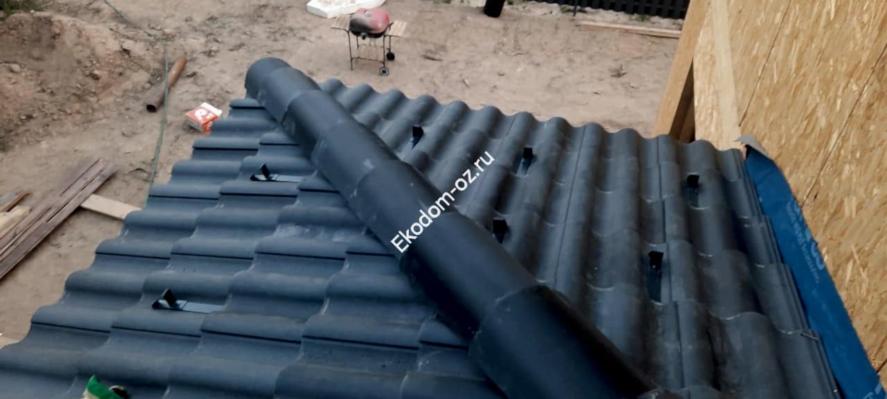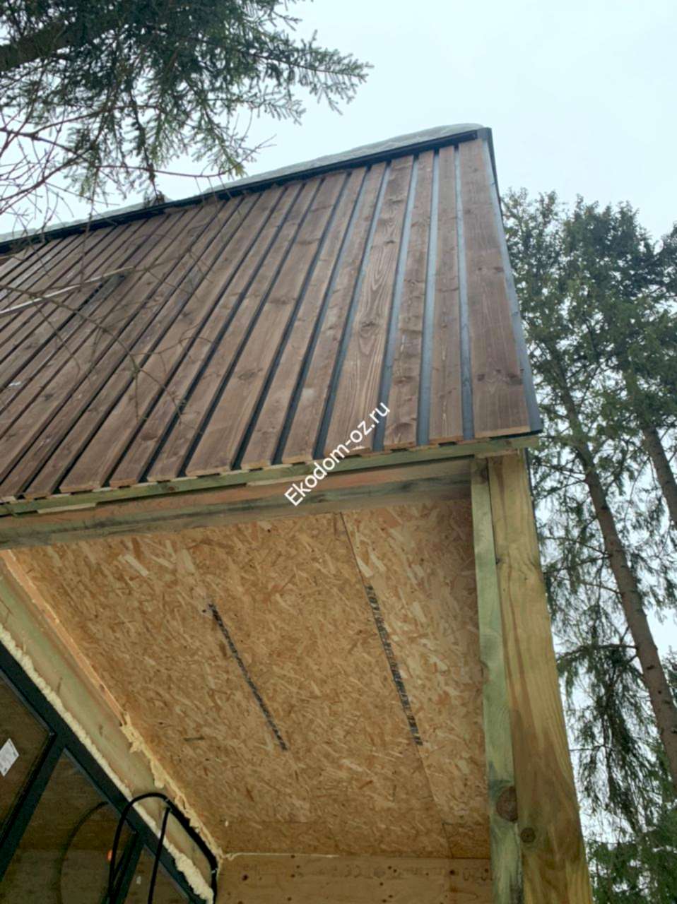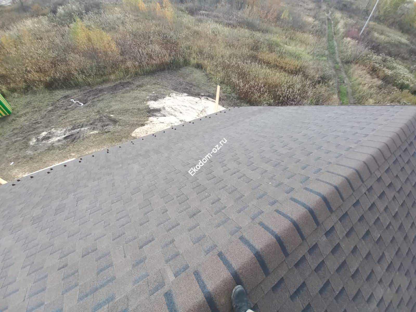 - Кровля:стропильная система, двухскатная, покрытие: качественная гибкая Пин Ап шинглас серия: Ранчо ОСП на фронтоны и для укладки кровельного покрытия.