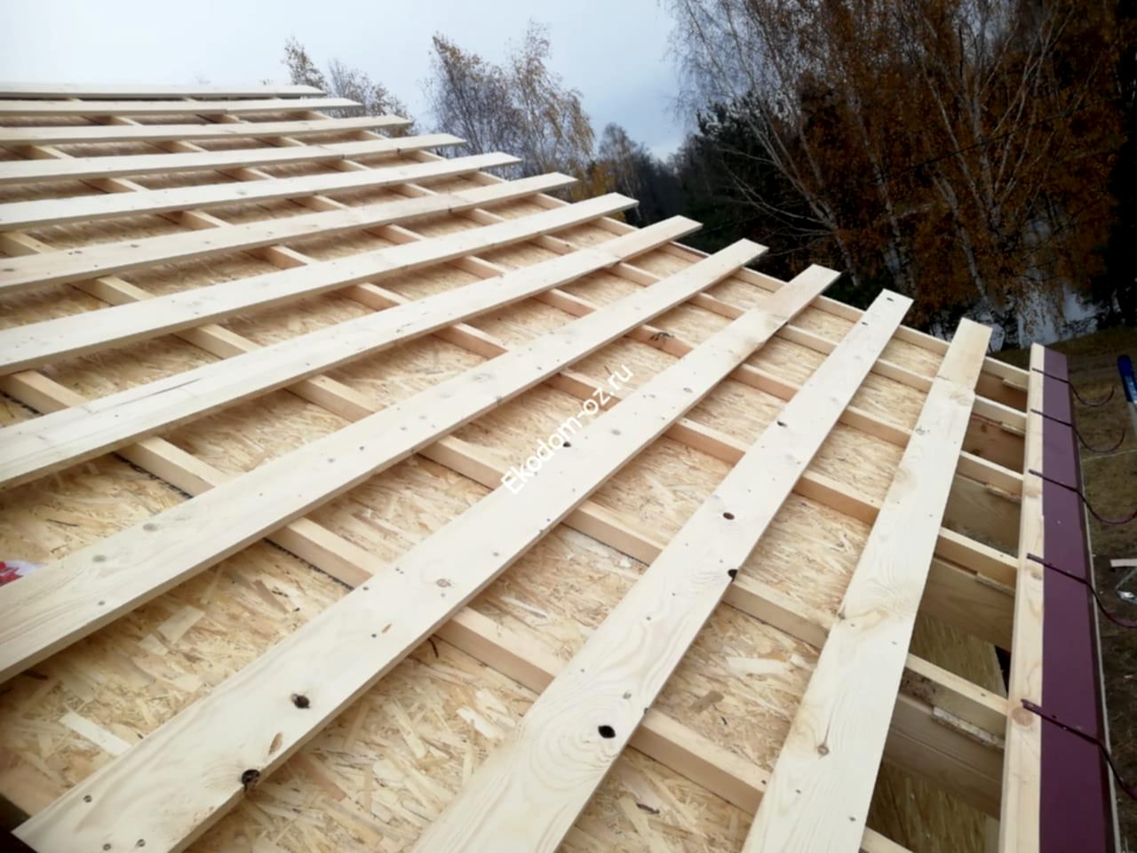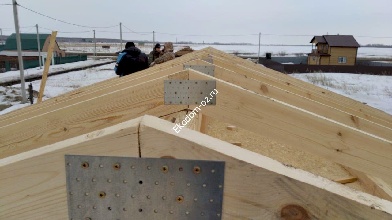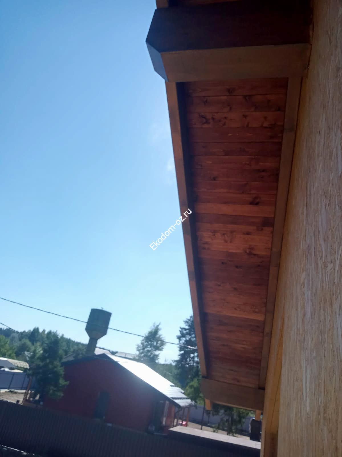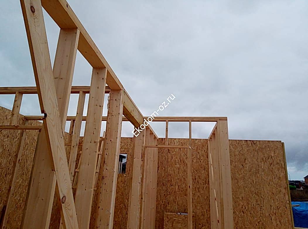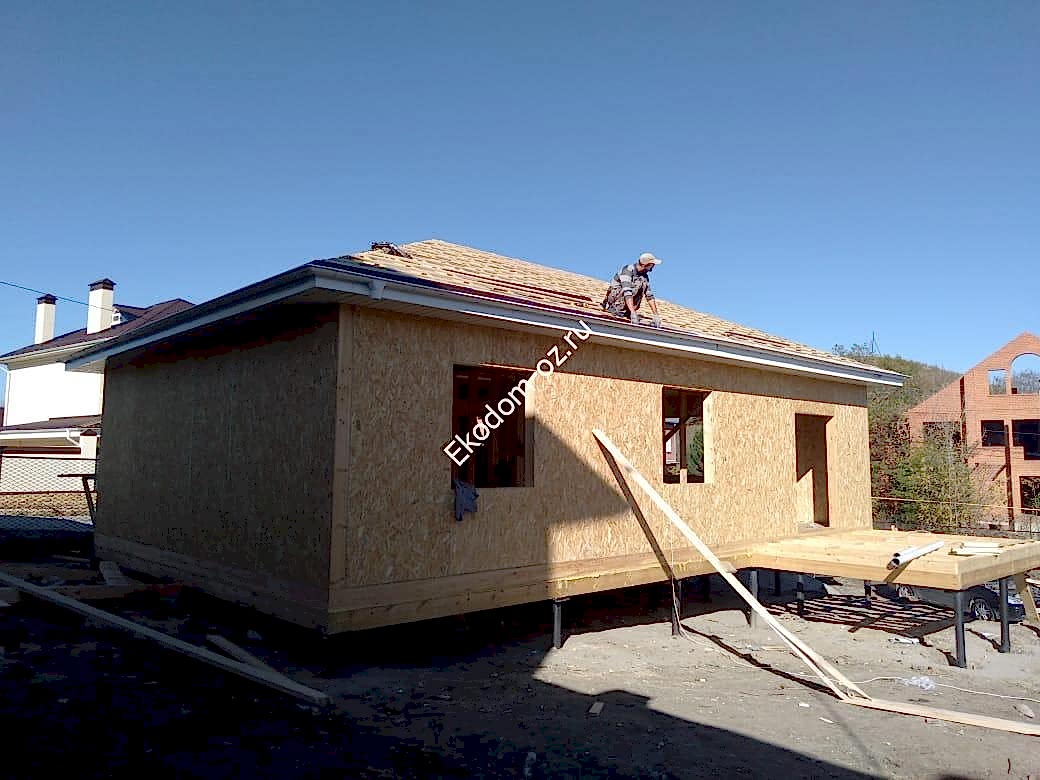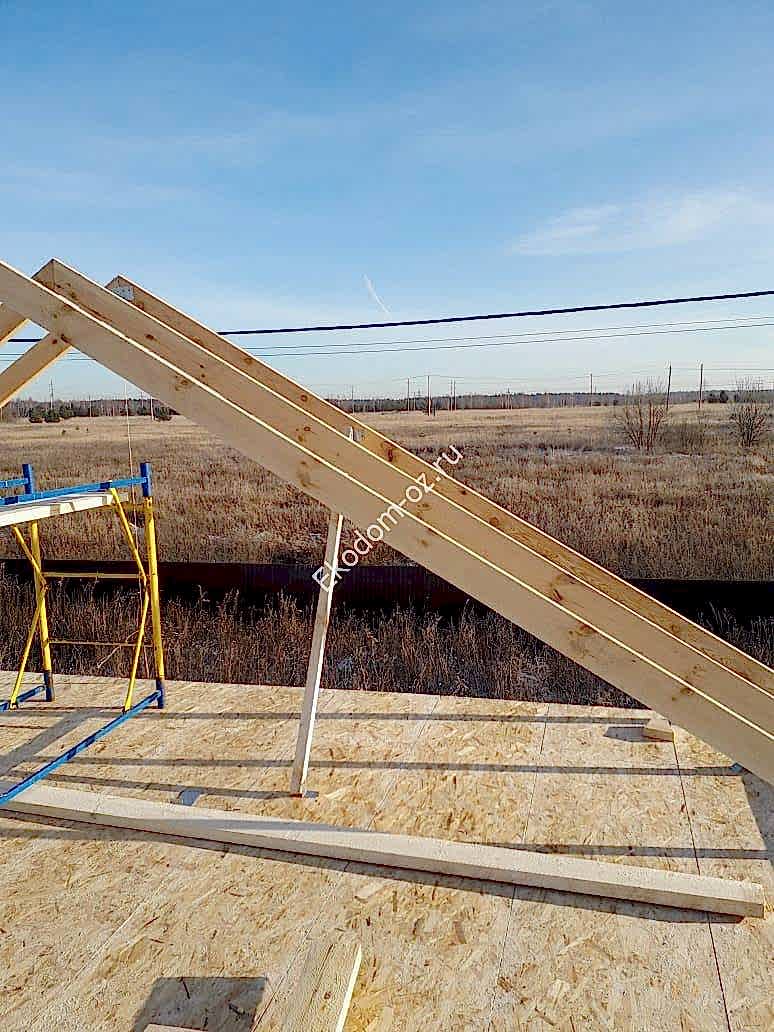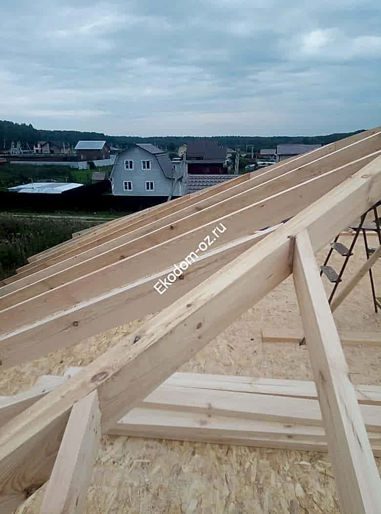 - Кровля:стропильная система, двухскатная, покрытие: качественная гибкая Пин Ап шинглас серия: Ранчо ОСП на фронтоны и для укладки кровельного покрытия.