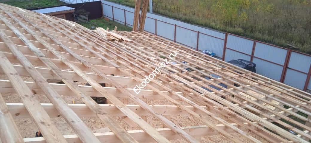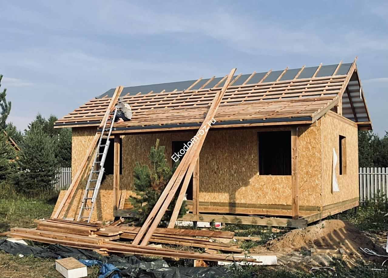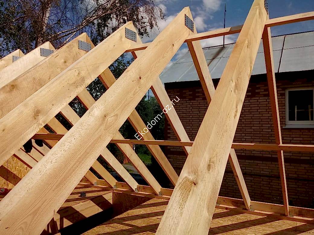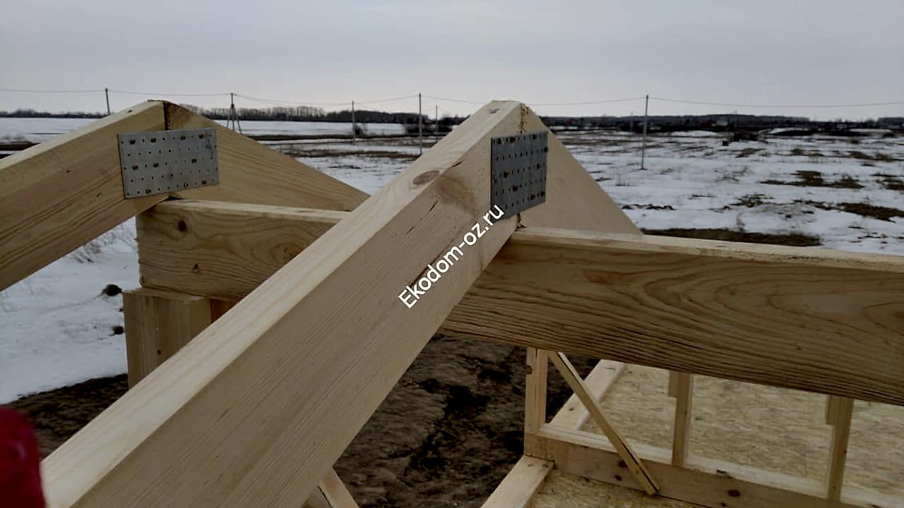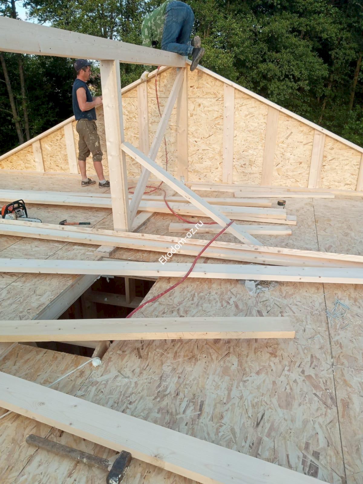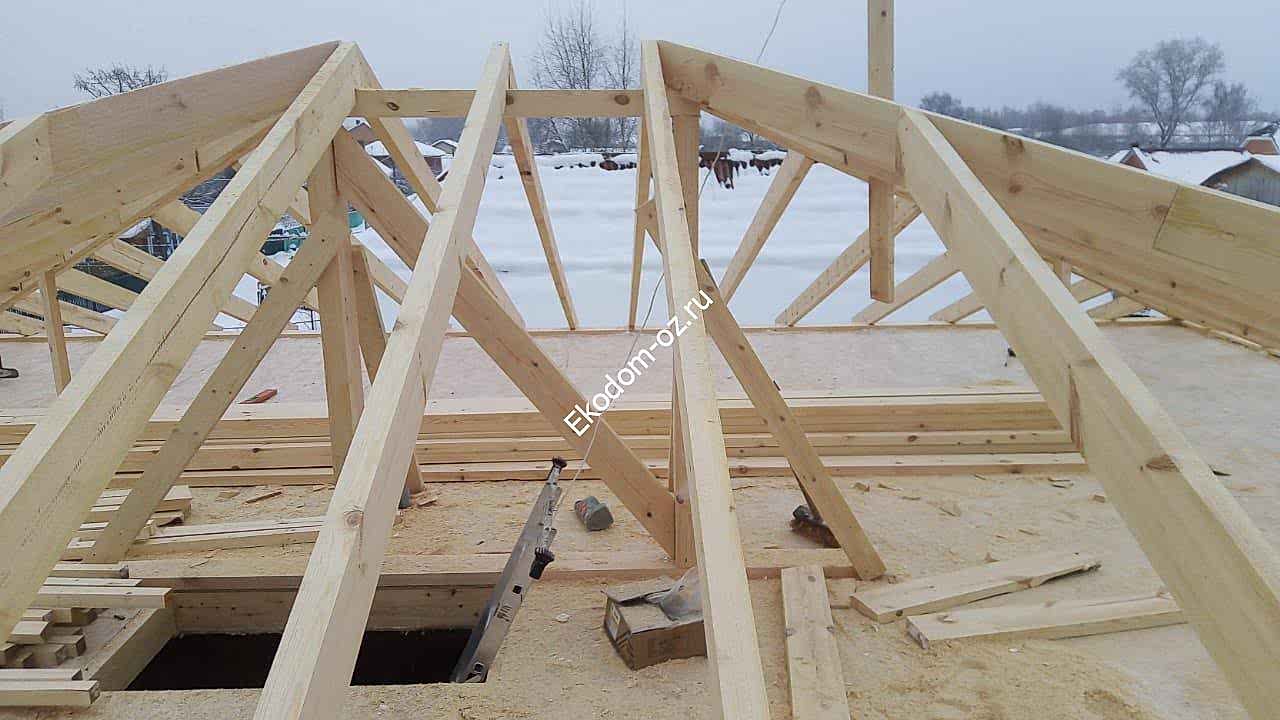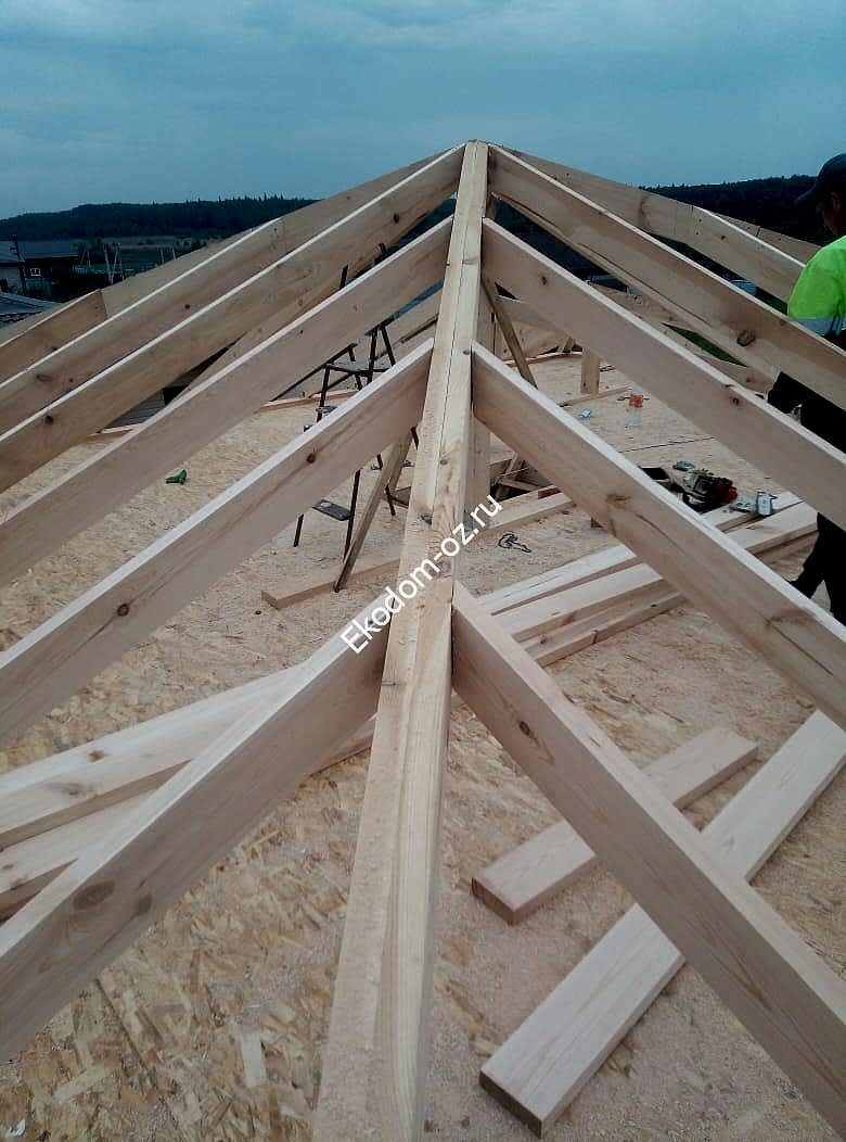 - Кровля:стропильная система, двухскатная, покрытие: качественная гибкая Пин Ап шинглас серия: Ранчо ОСП на фронтоны и для укладки кровельного покрытия.
