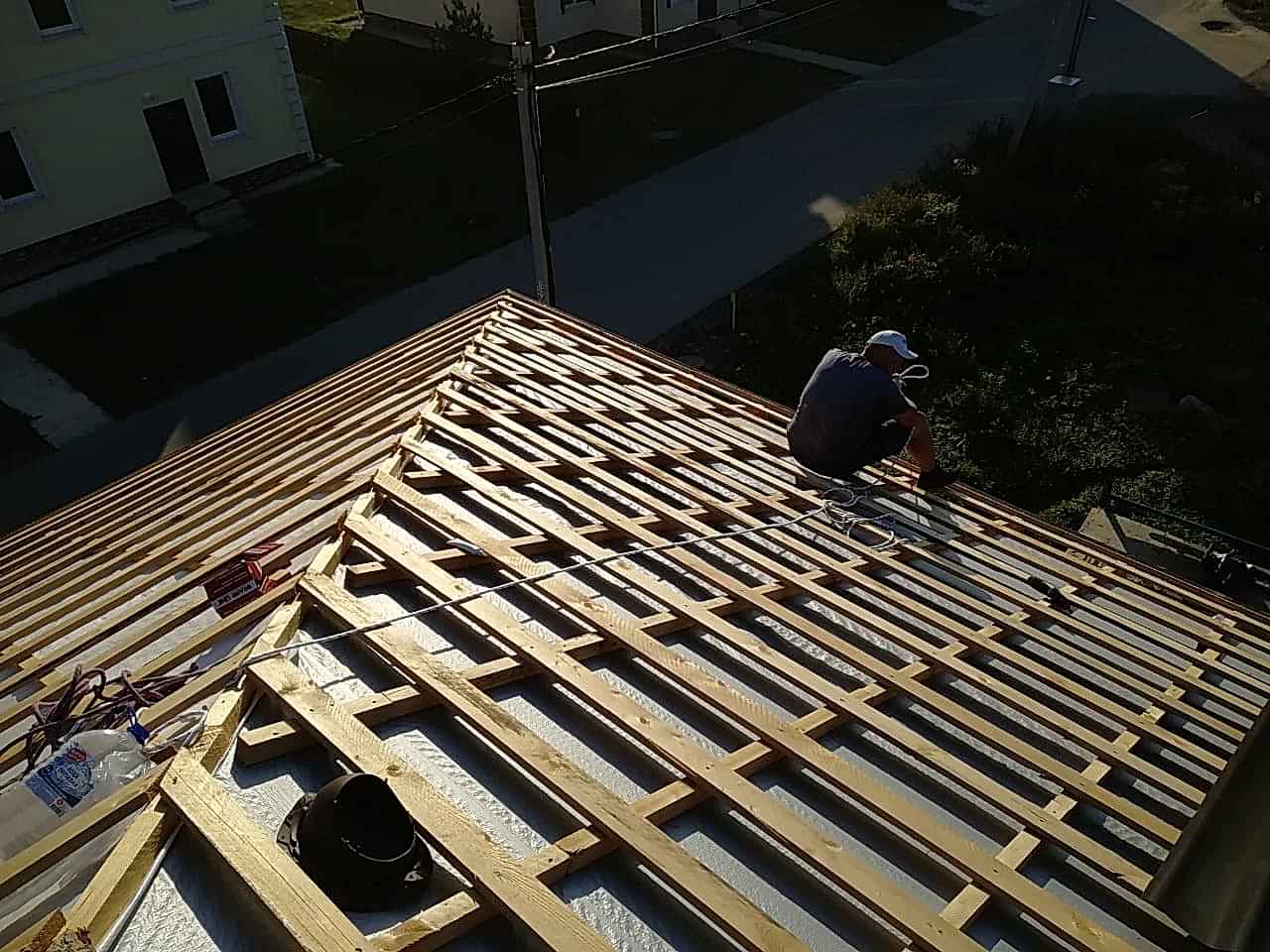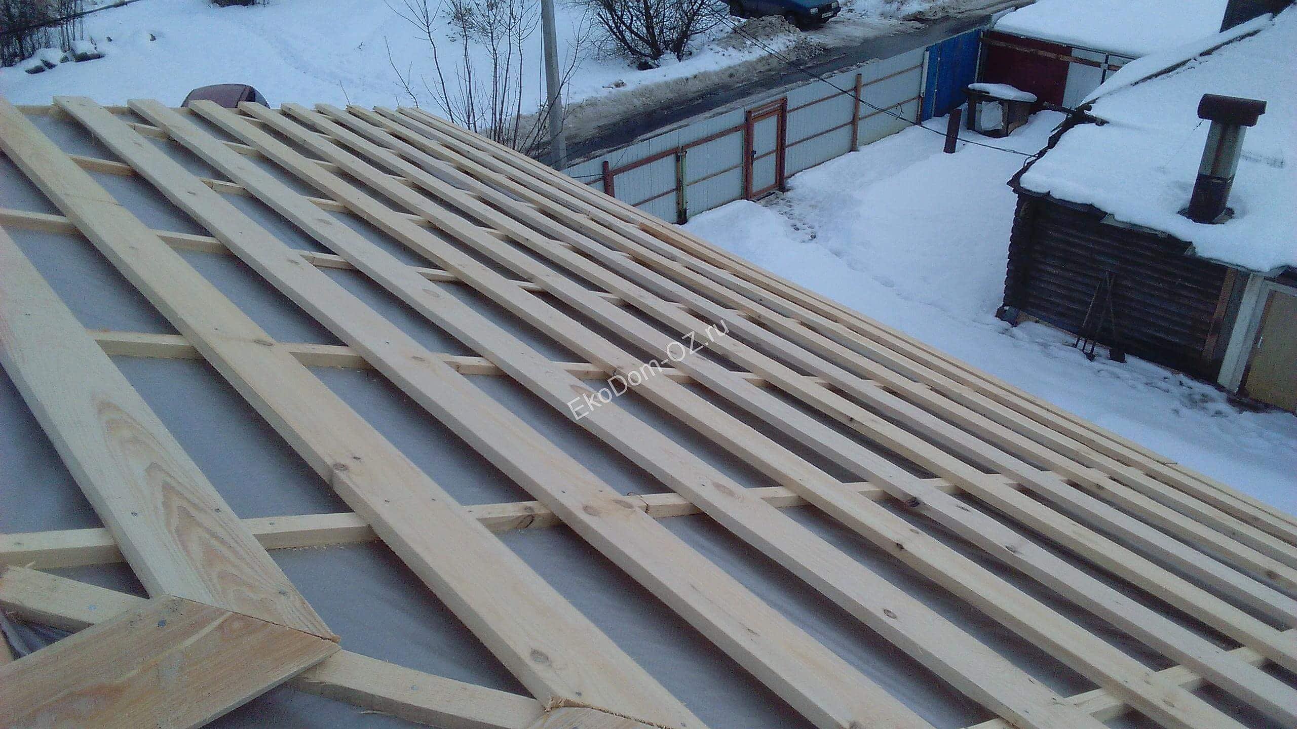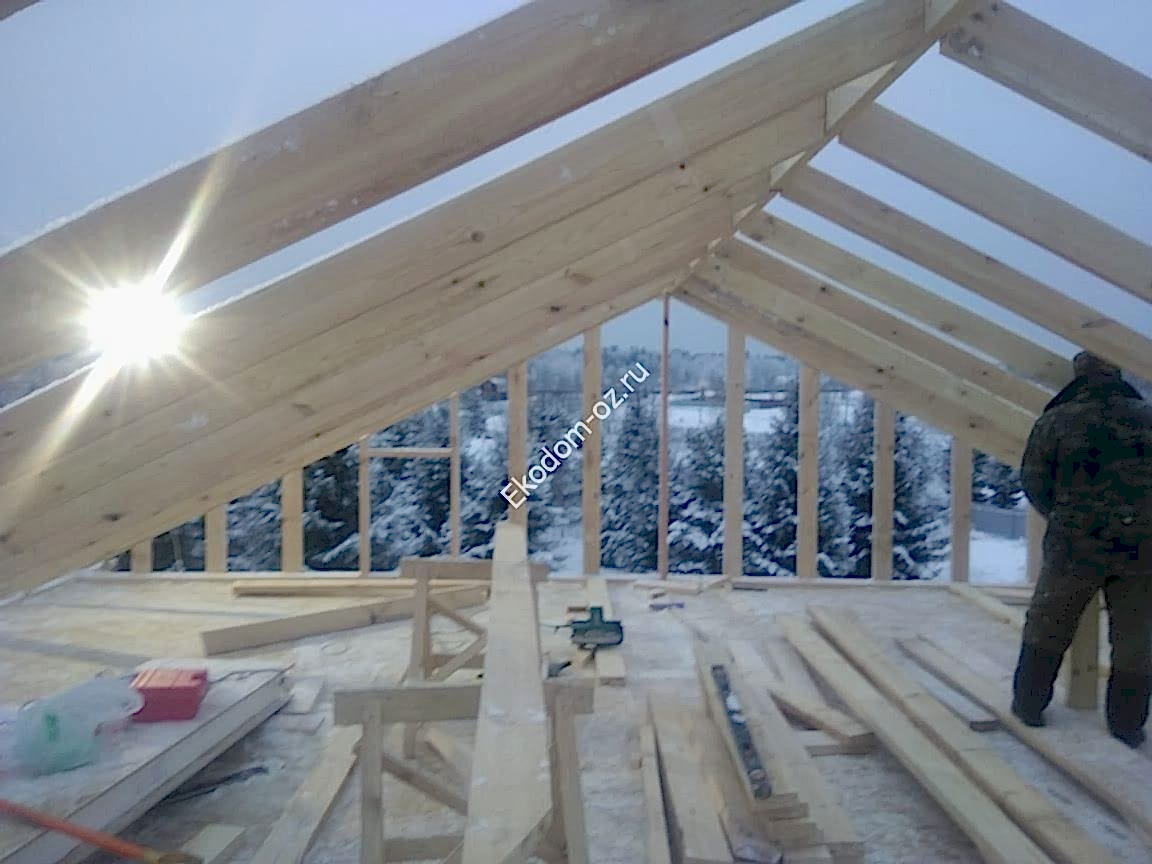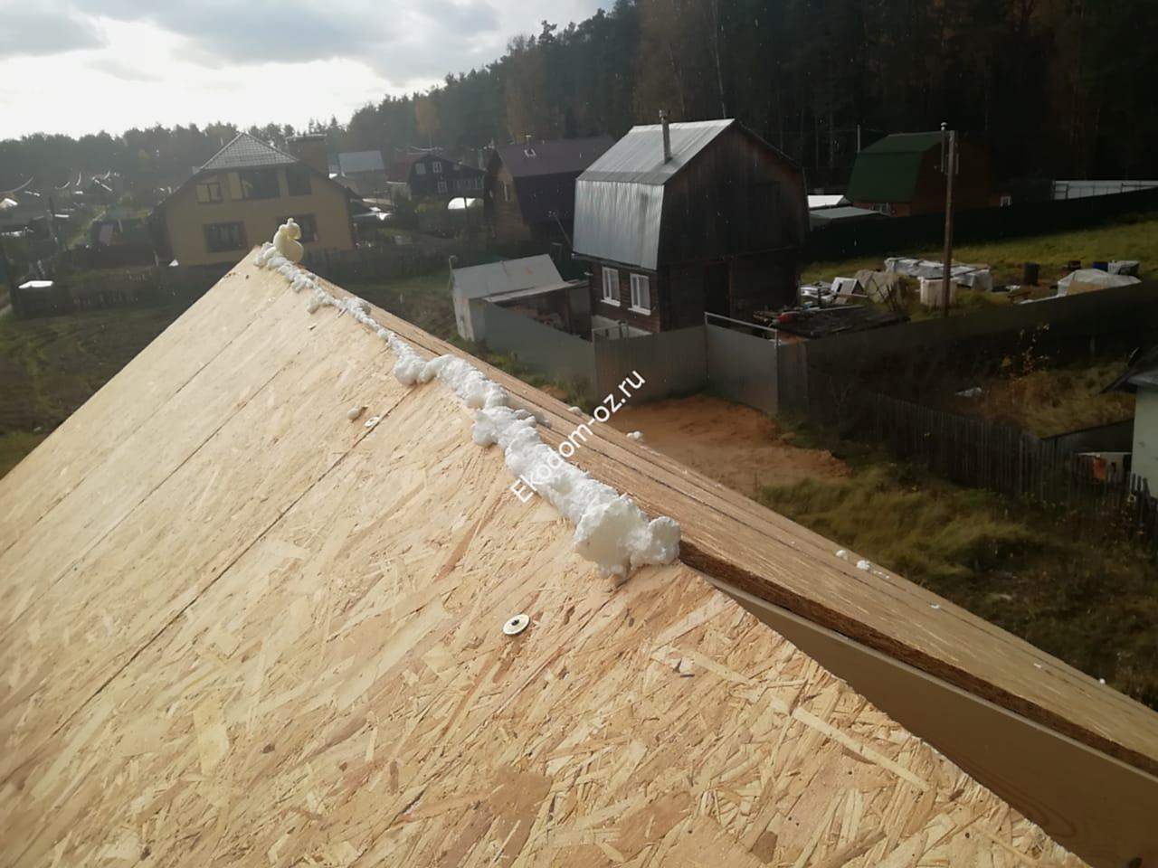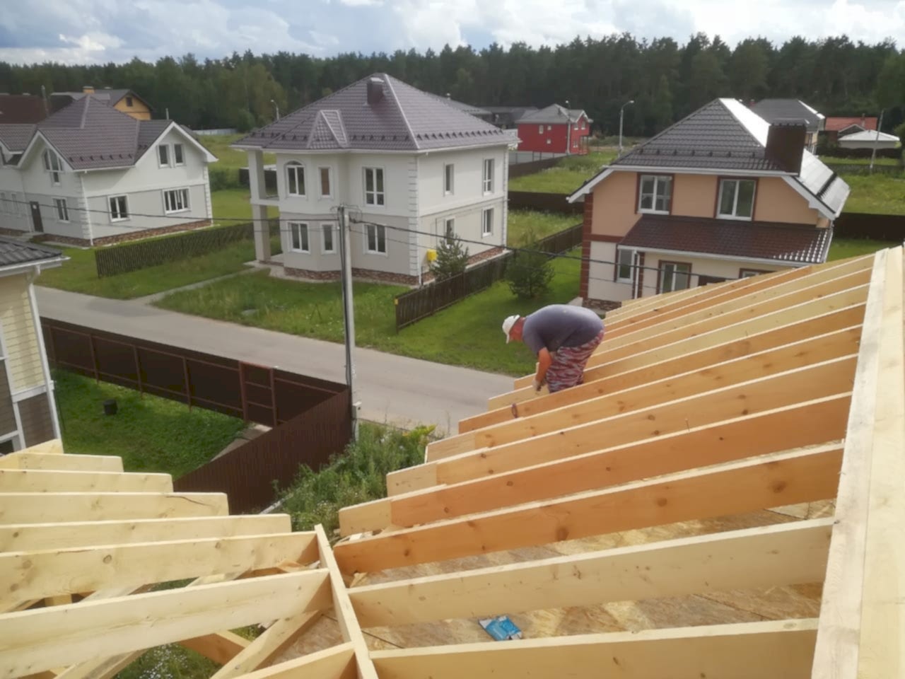 - Кровля:стропильная система, двухскатная, покрытие: качественная гибкая Пин Ап шинглас серия: Ранчо ОСП на фронтоны и для укладки кровельного покрытия.