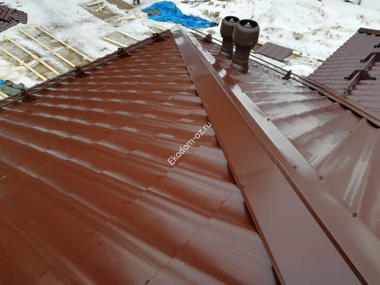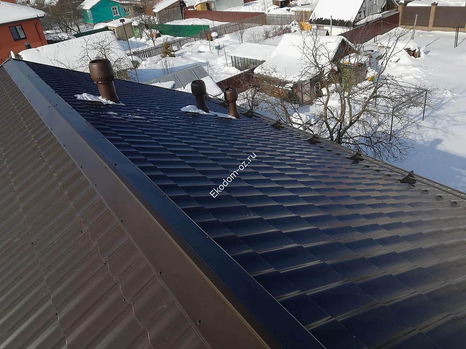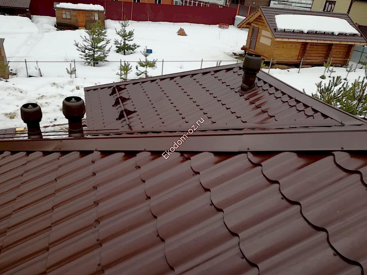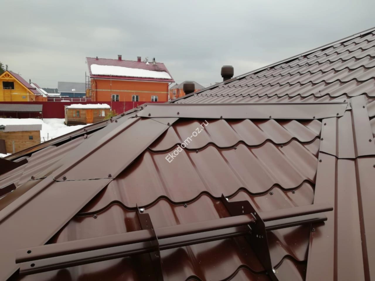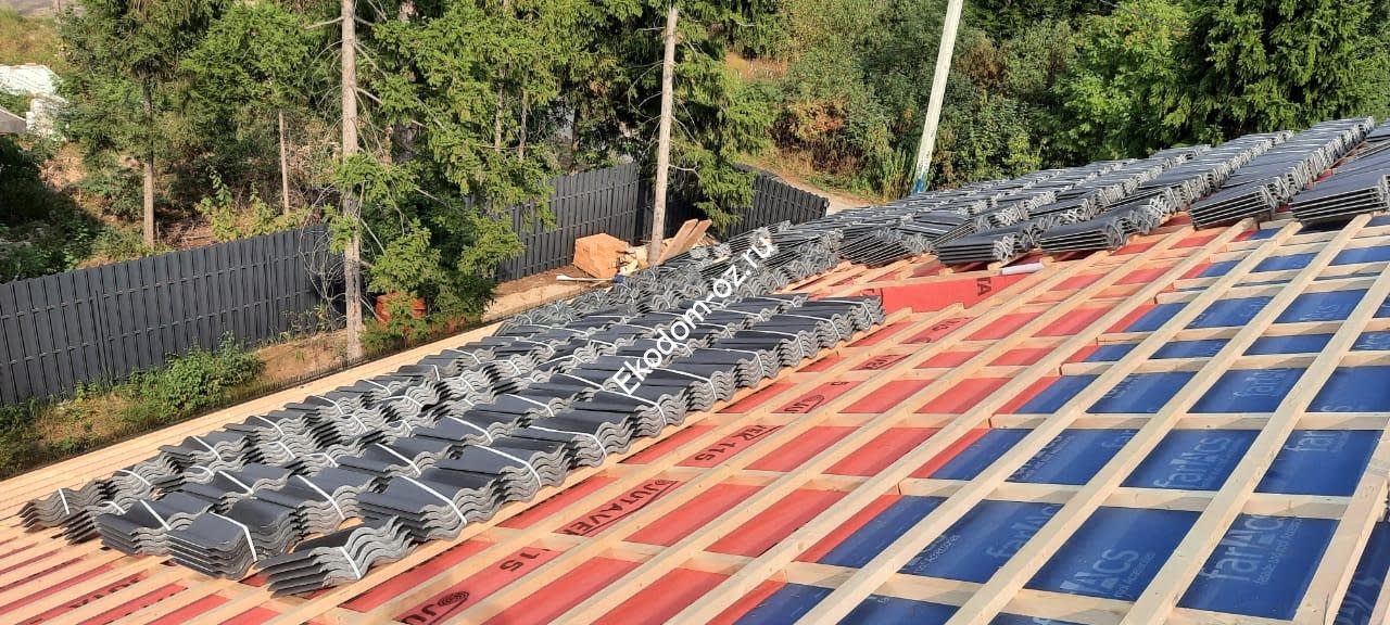 - Чистовое покрытие кровли :металлочерепица, комплект планок, ветровлагозащитная мембрана, Пин Ап крепежа для кровли,вент выходы, снегозадержатели