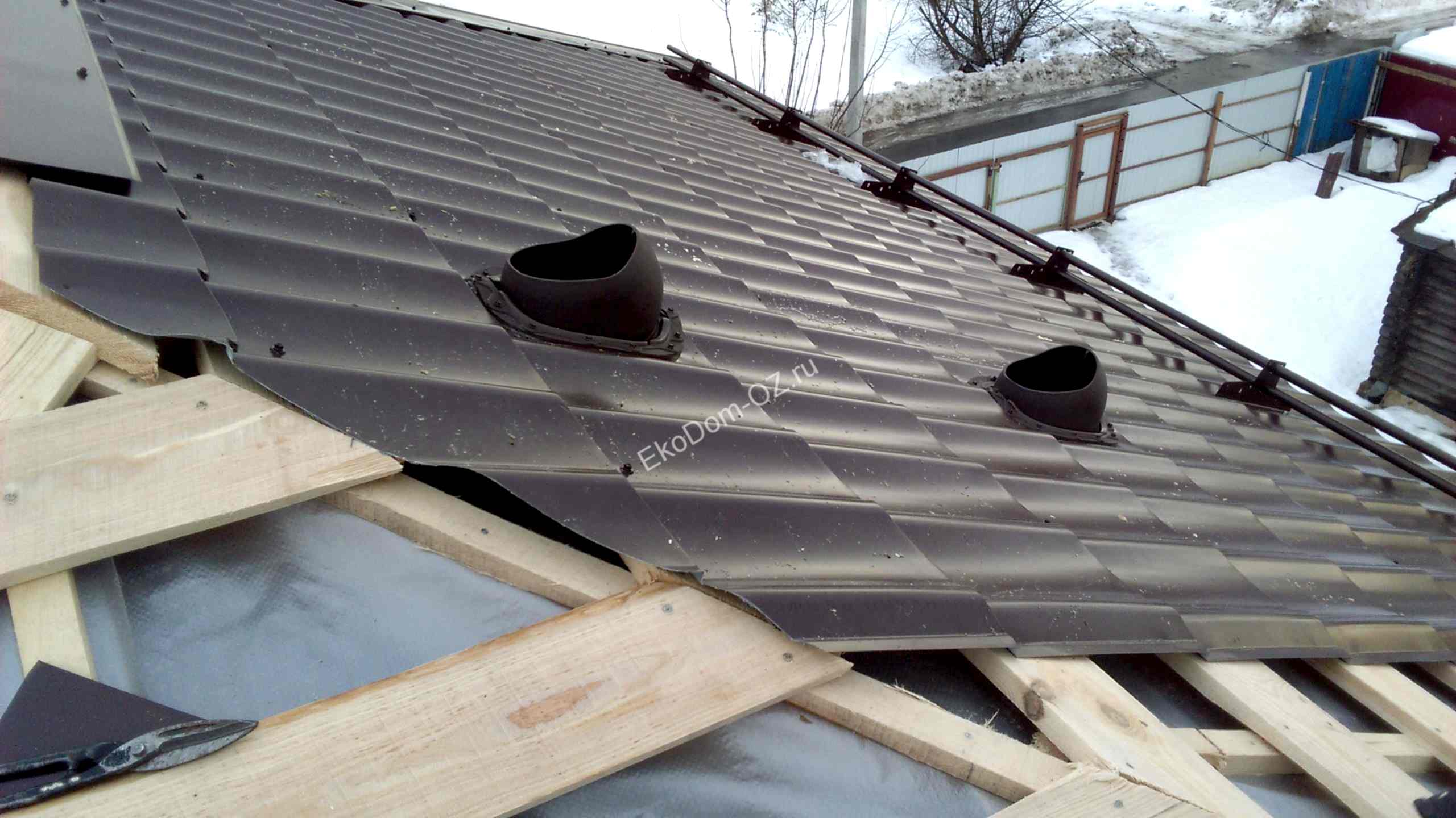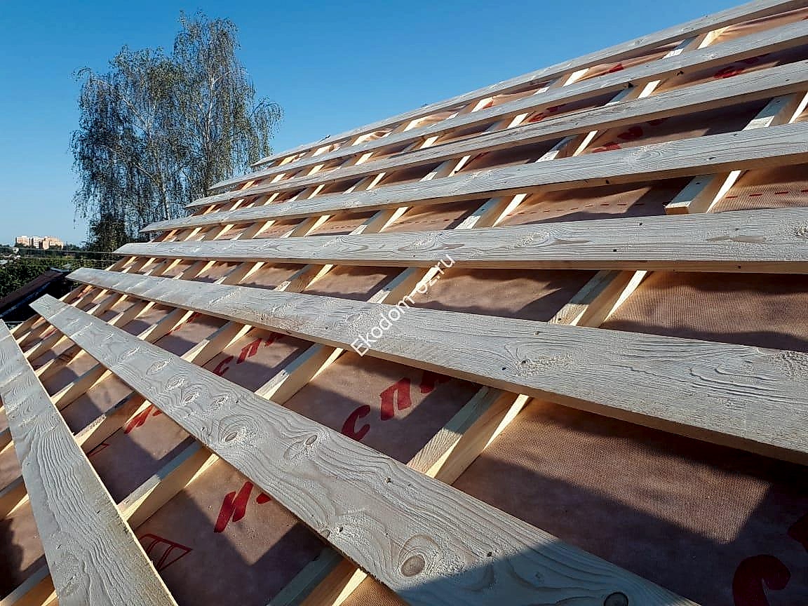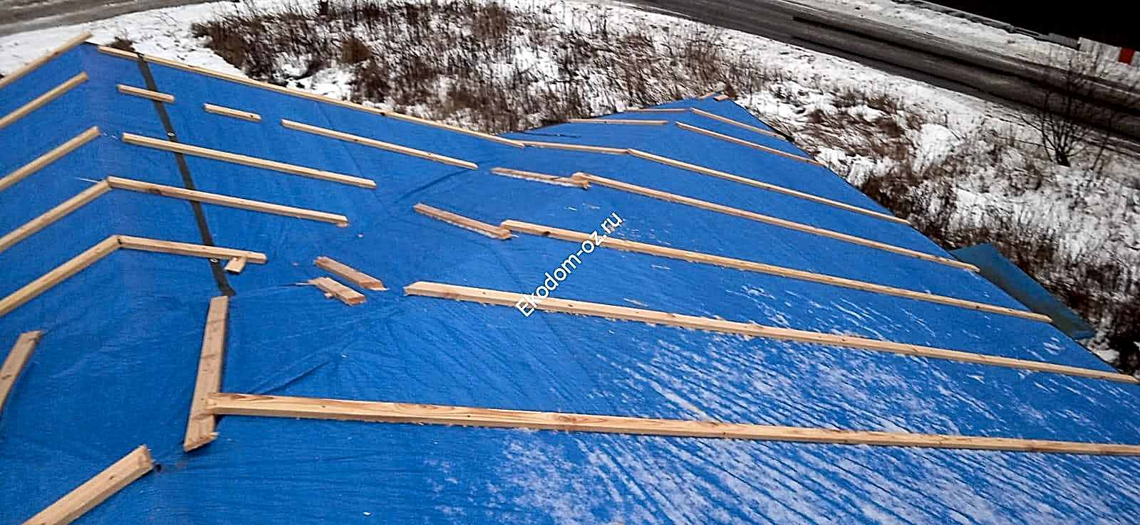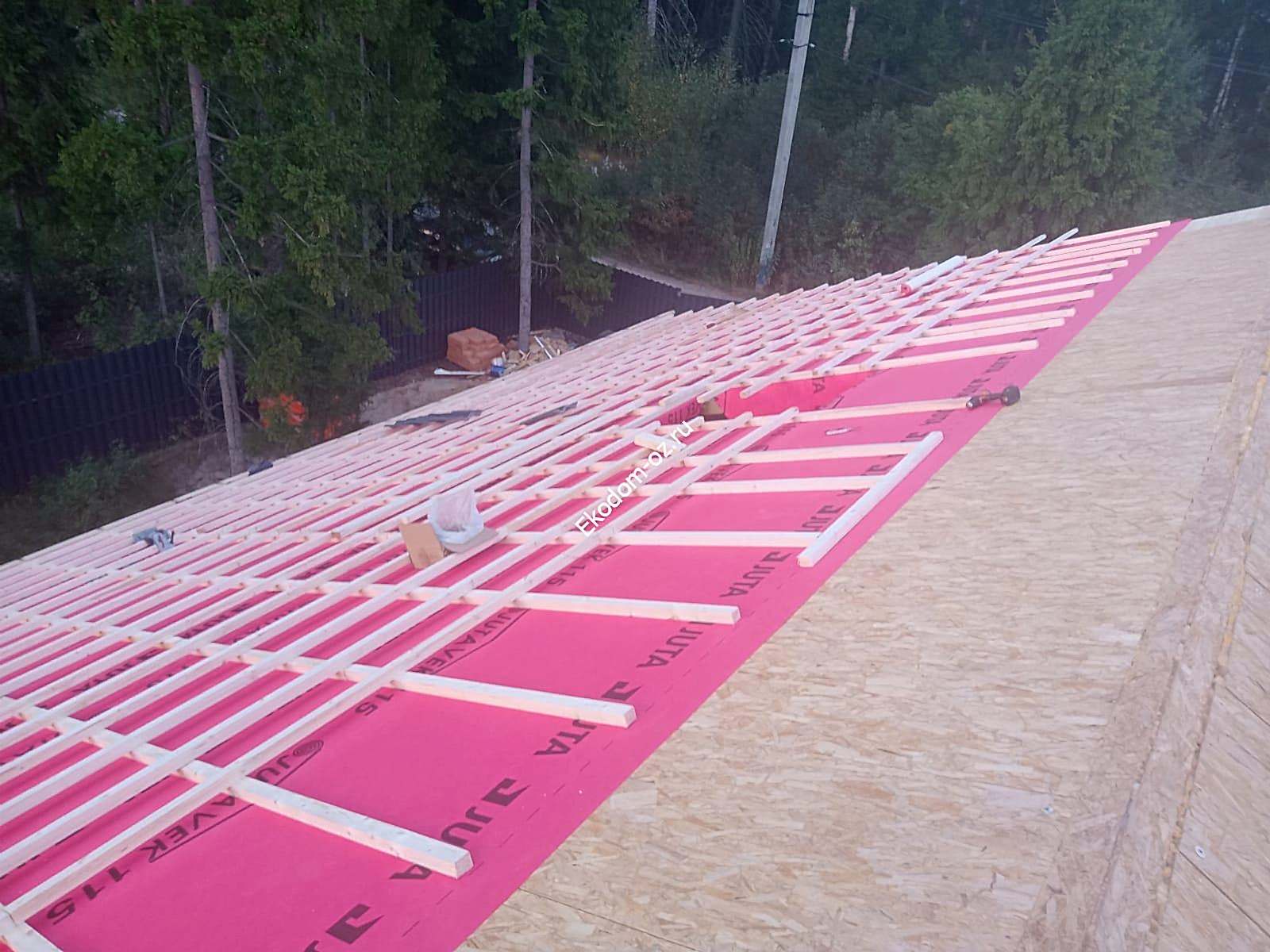 - Чистовое покрытие кровли :металлочерепица, комплект планок, ветровлагозащитная мембрана, Пин Ап крепежа для кровли,вент выходы, снегозадержатели