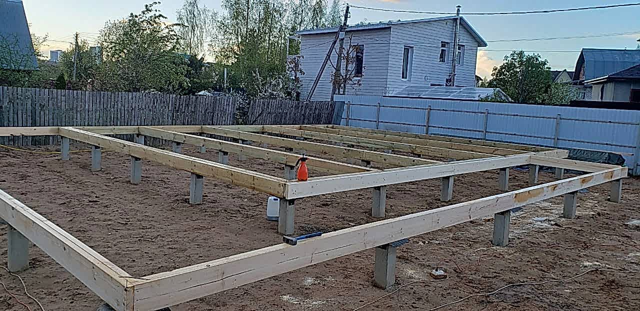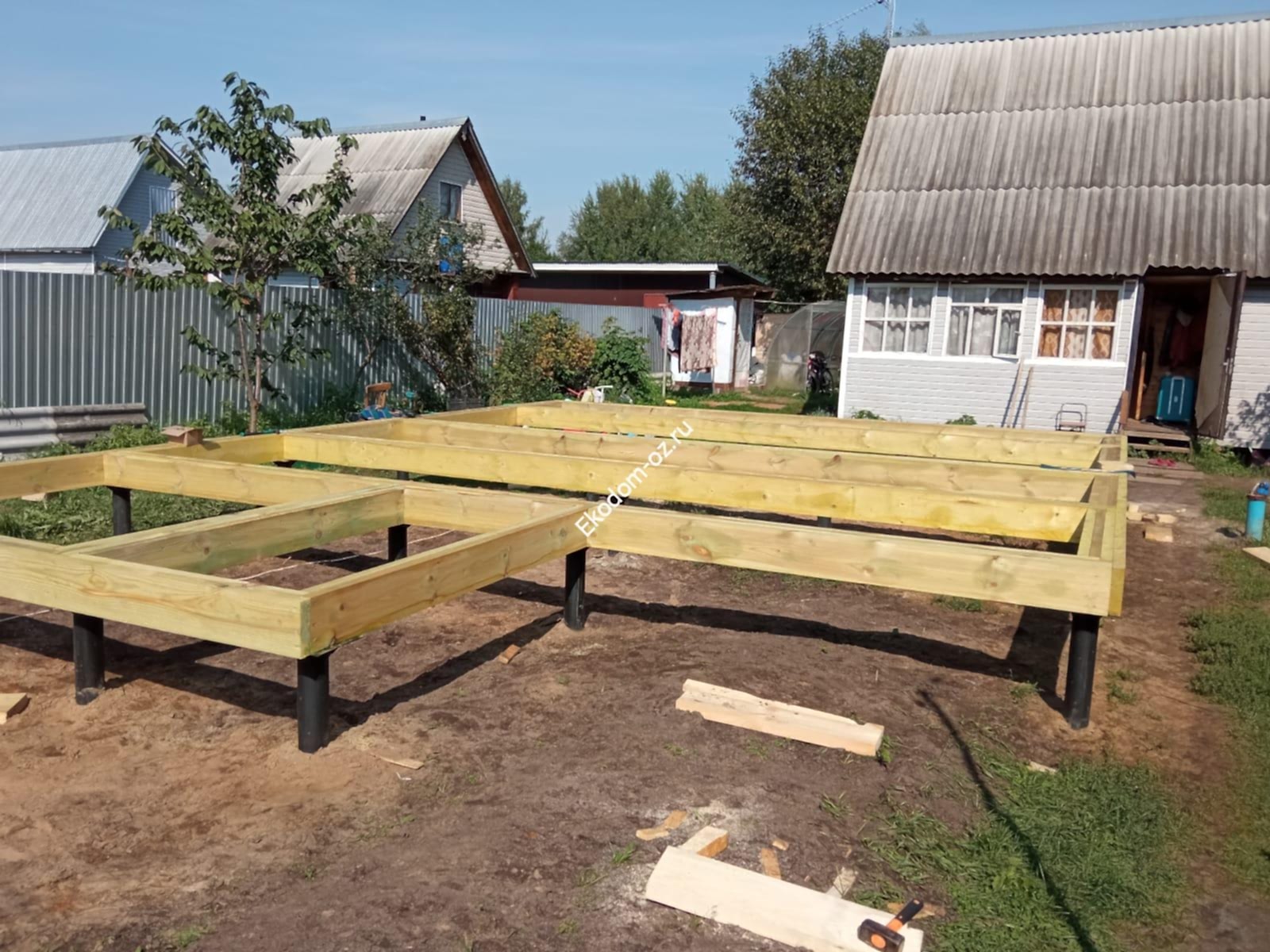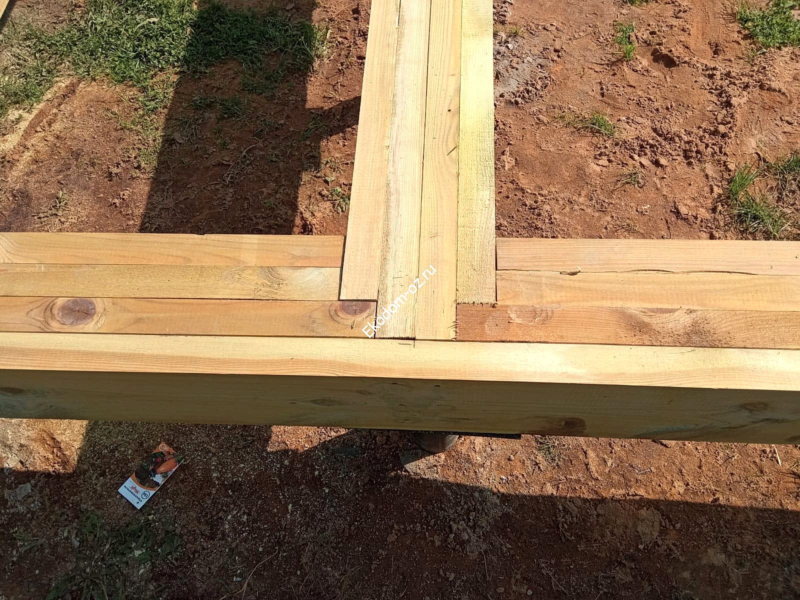 - ФундаментЖБ сваи 150х150х3000, оголовки 250х250 мм, цементирование ствола, обрезка в уровень, установка оголовков, обвязка свай пиломатериалом 200х200 мм (сшита из досок Пин Ап мм) с антисептированием.