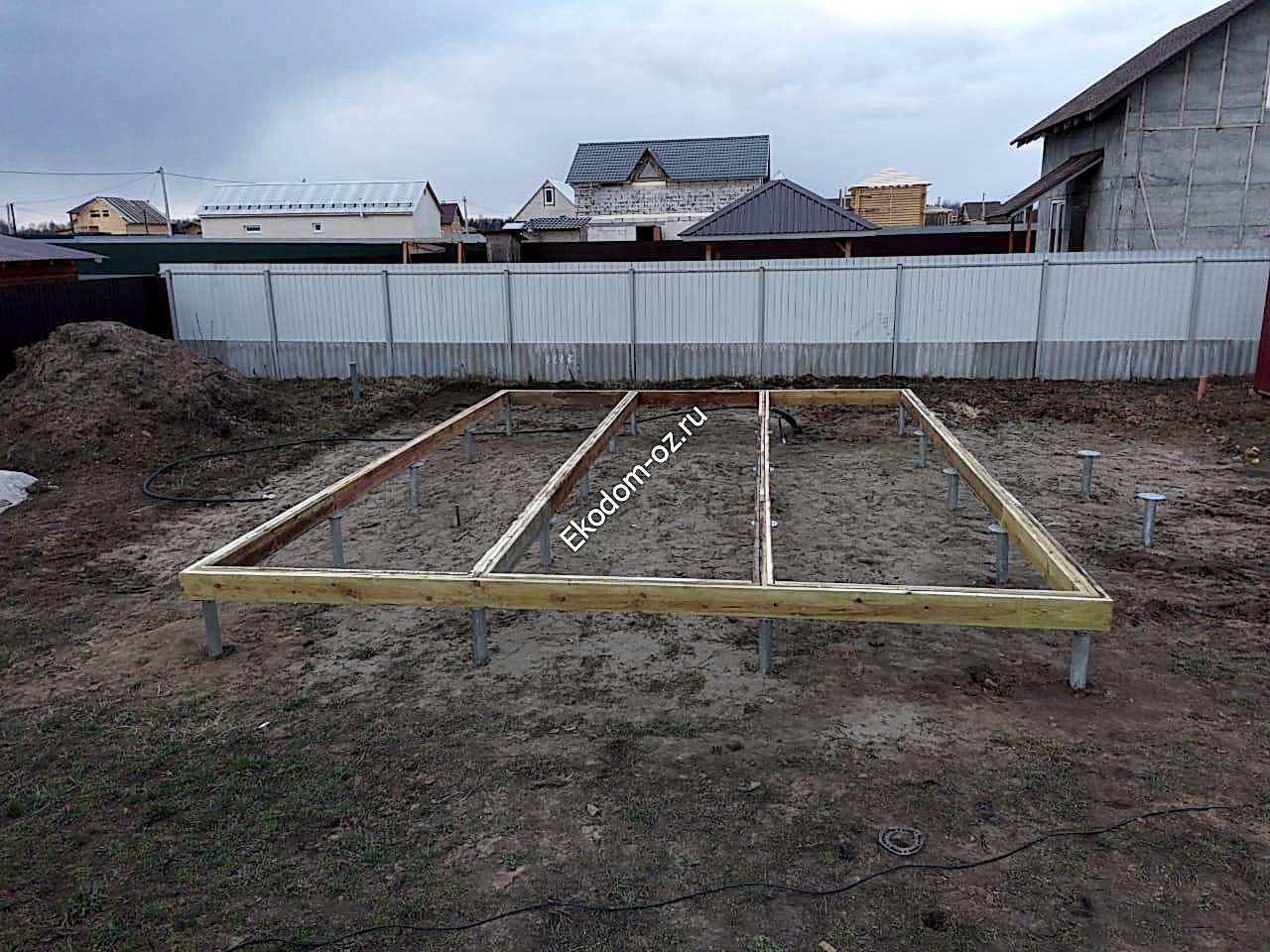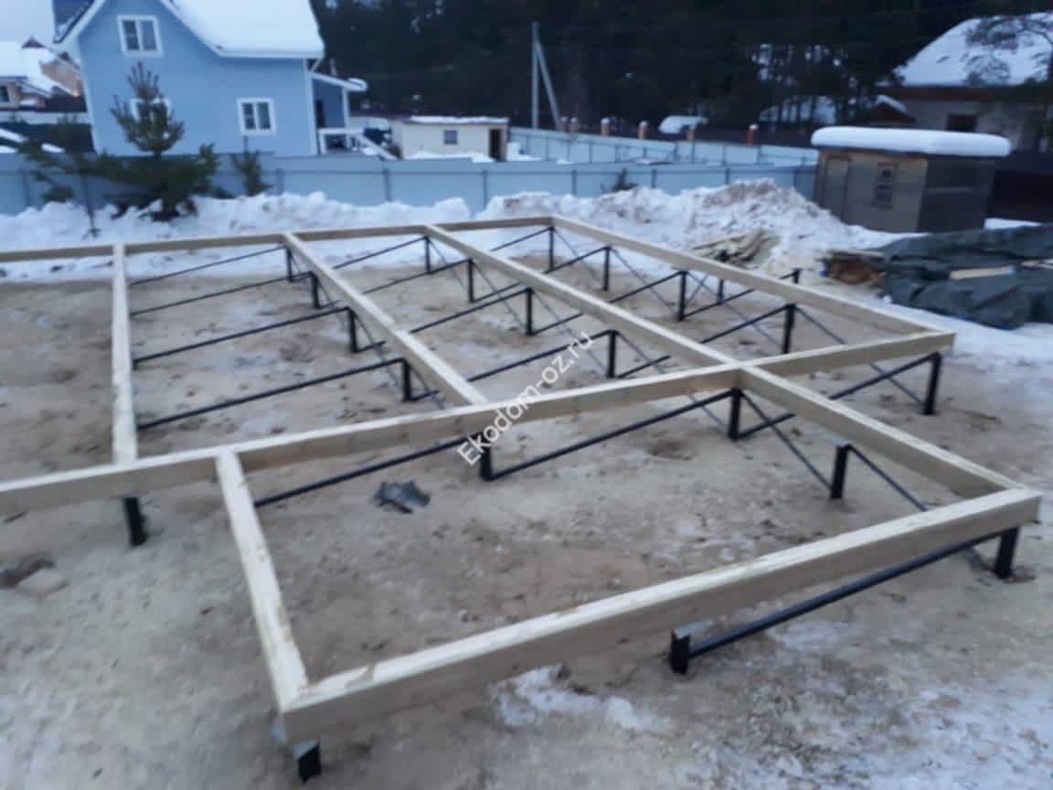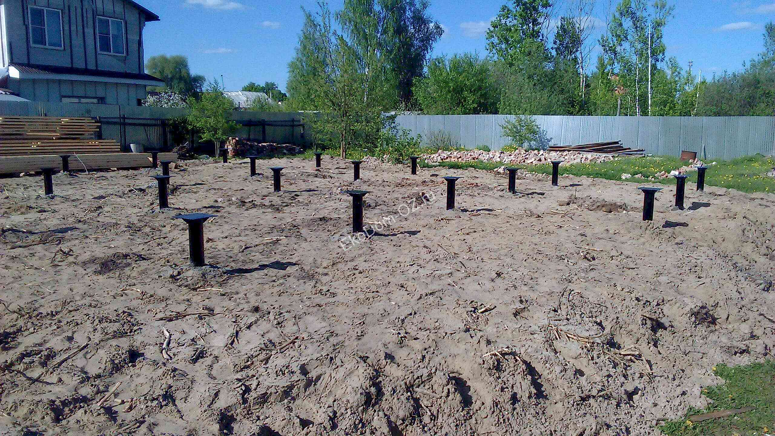 - Фундамент:Пин Ап сваи диаметр 108 мм, оголовки 200х200 мм