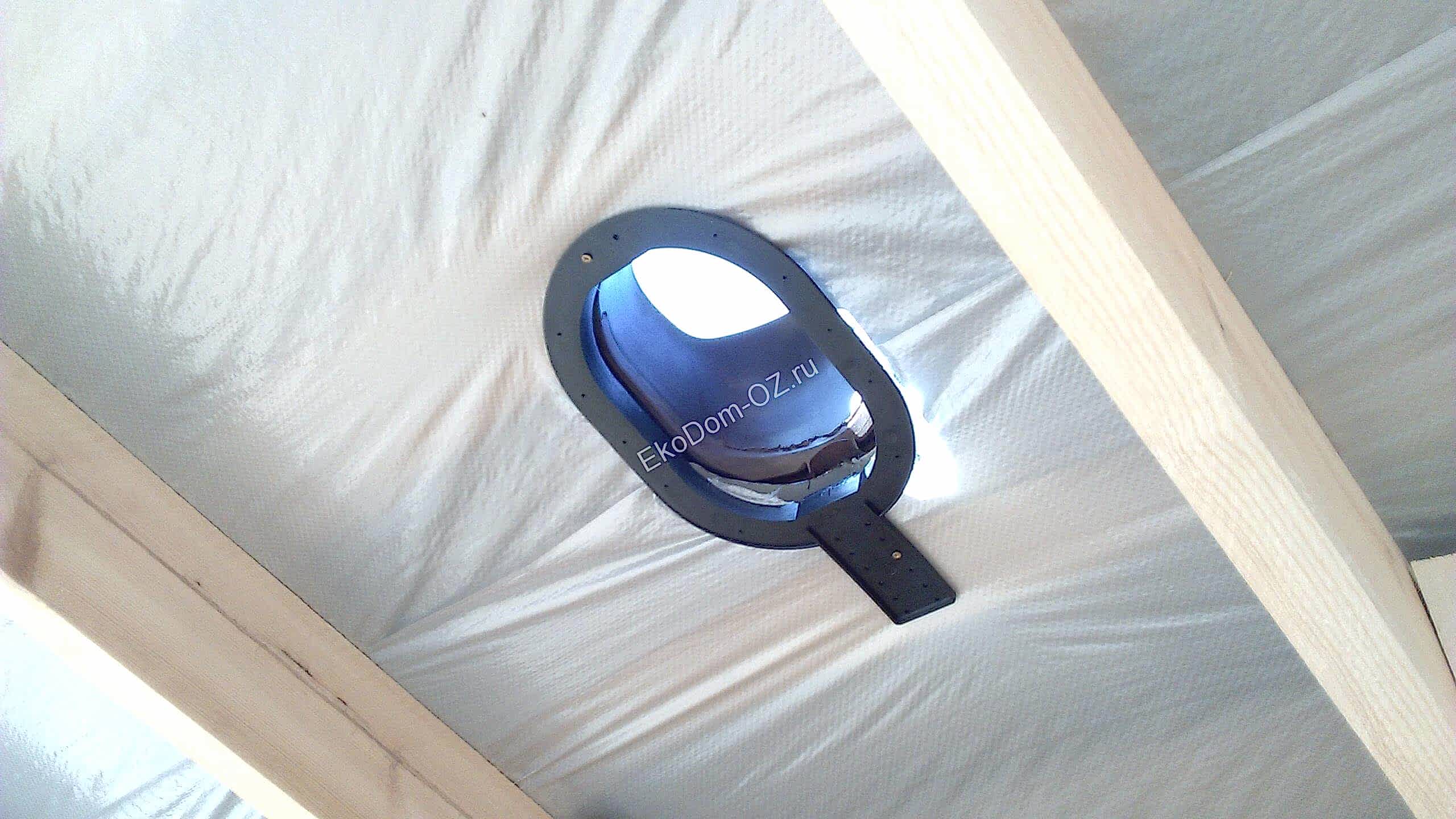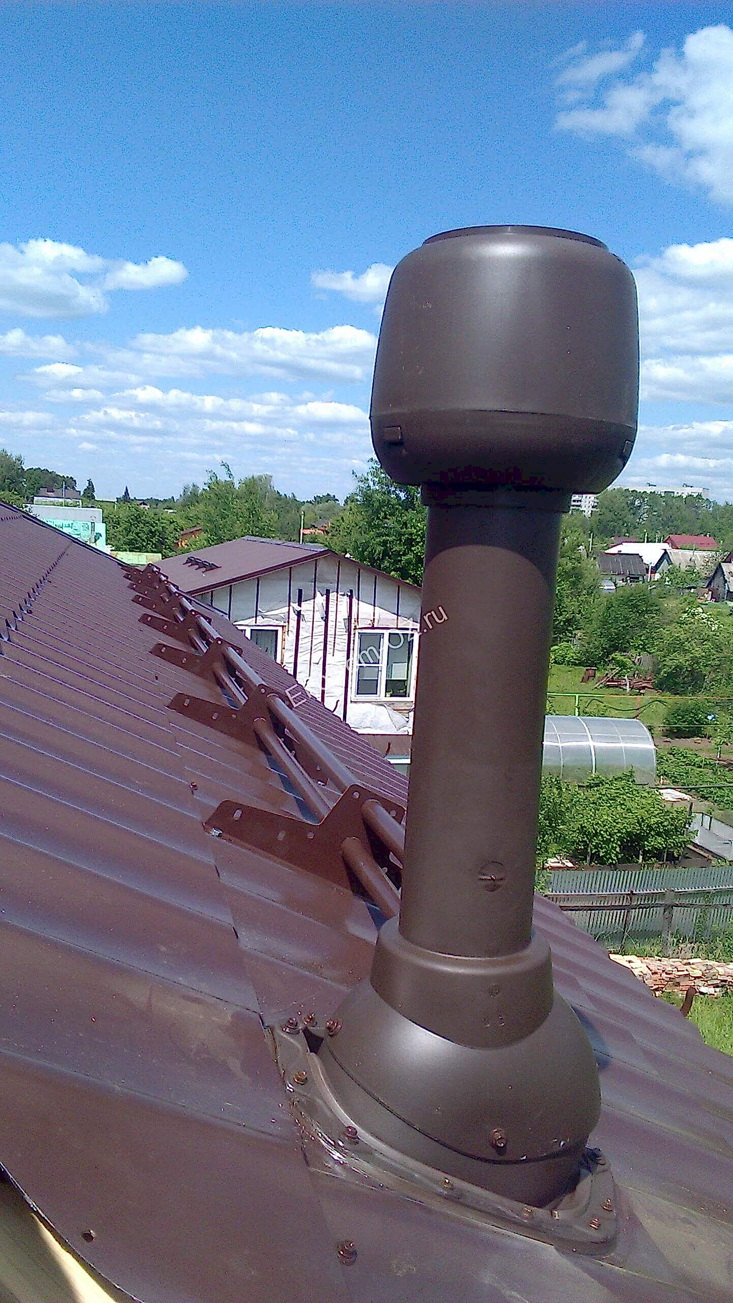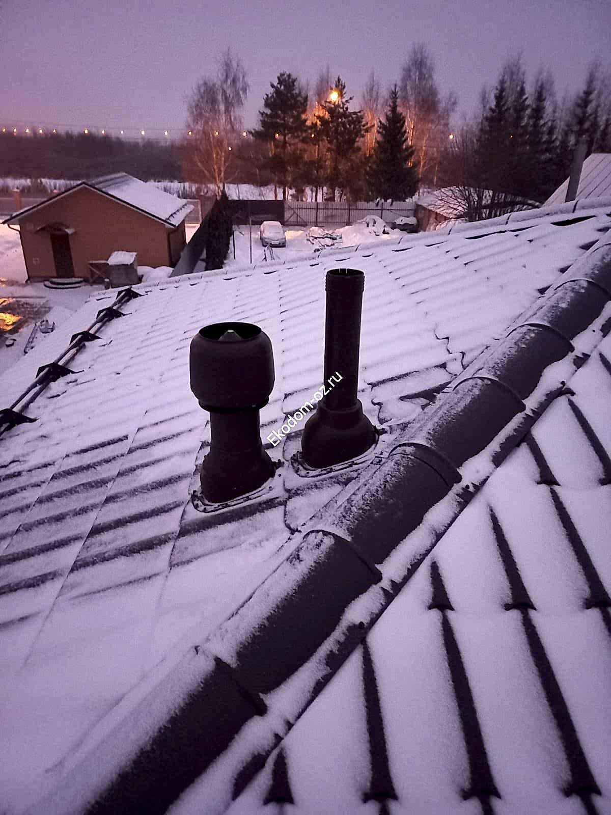 - Вент. выходы на кровле- выход вытяжки изолированный с колпаком 110/500 мм- 3 шт; проходной Пин Ап для труб 125 мм;