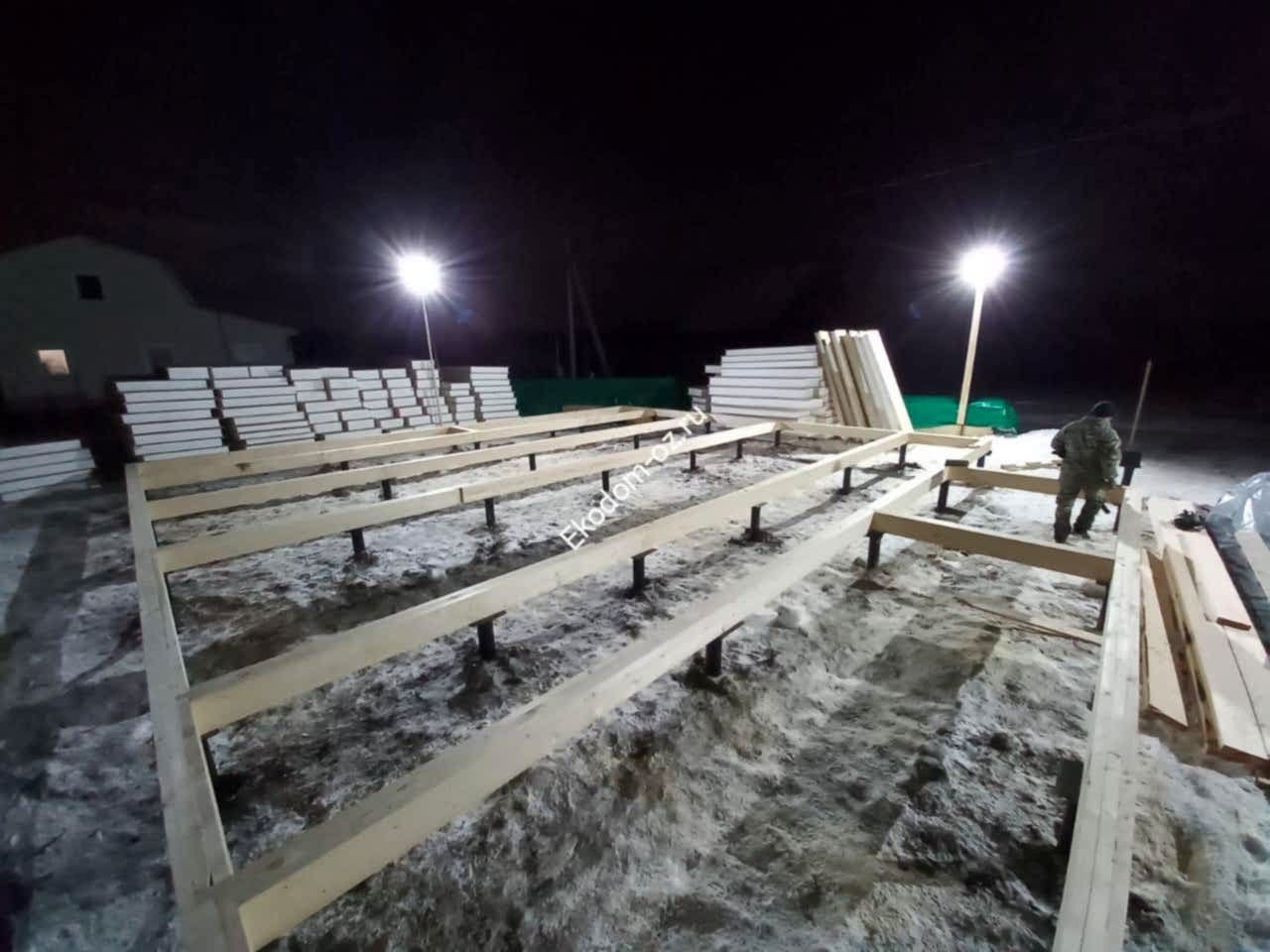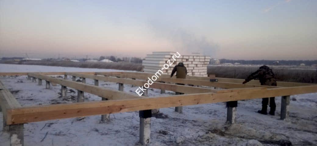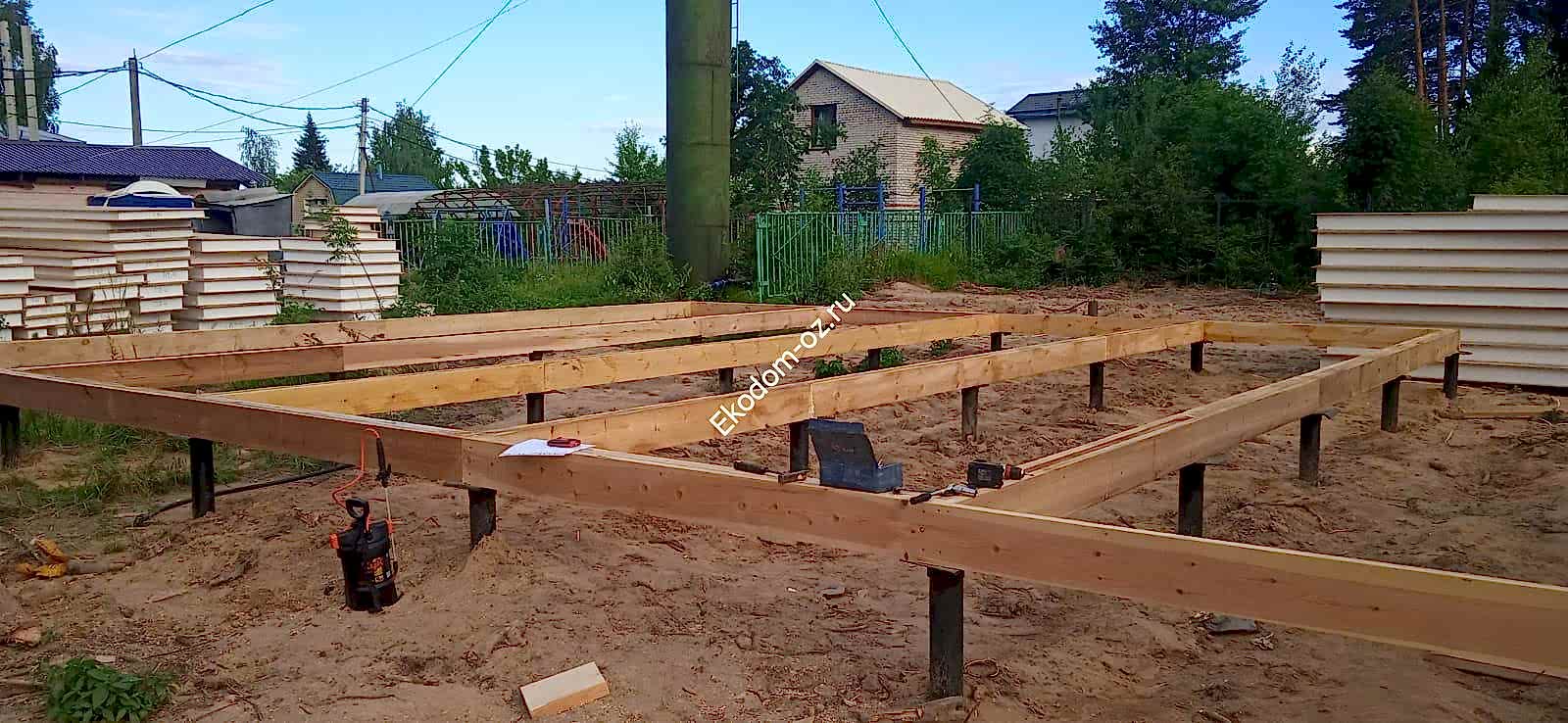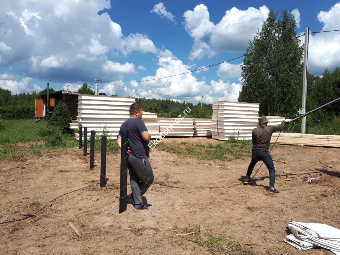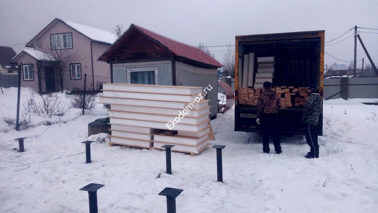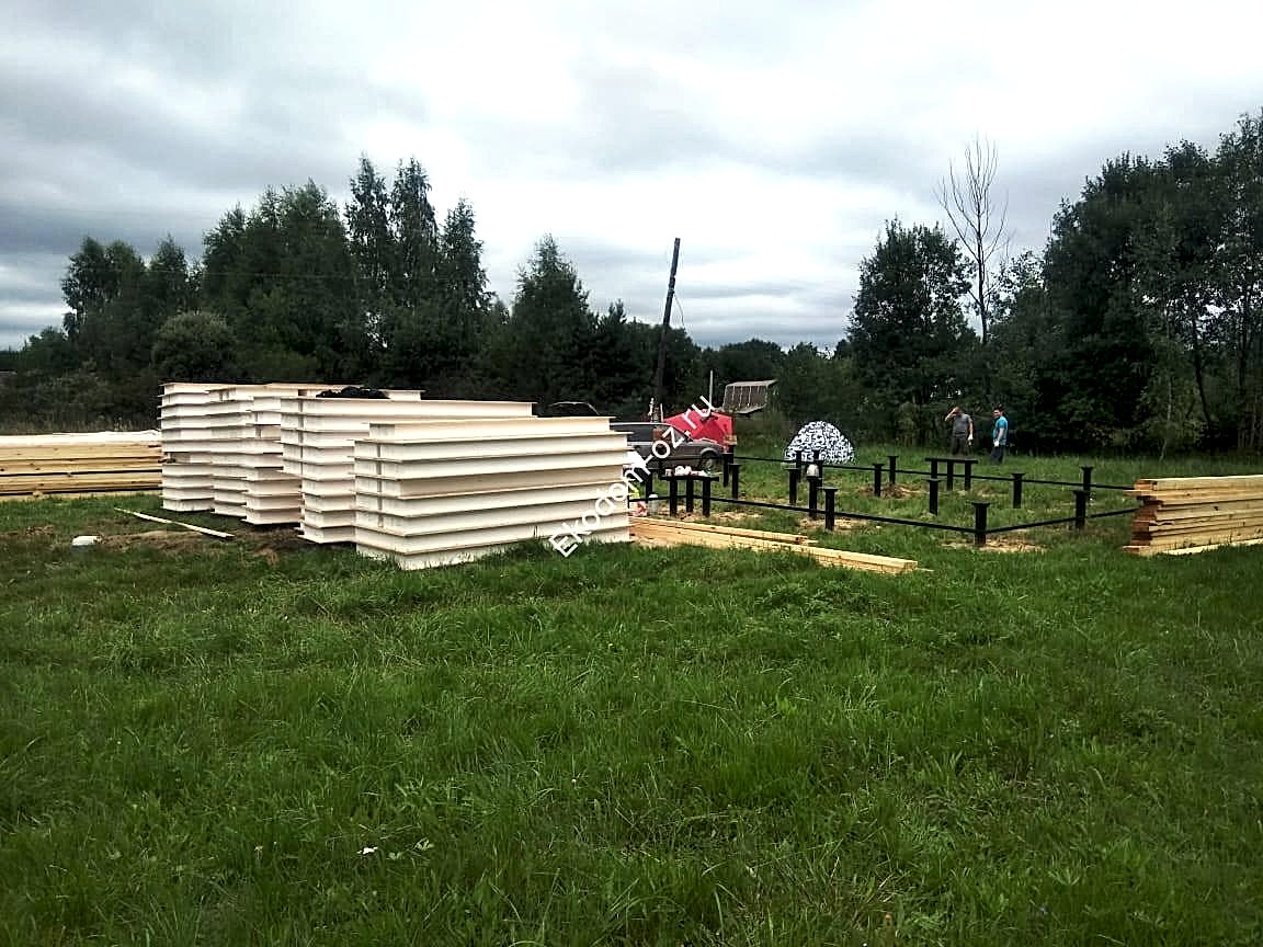 Возведение фундамента, Пин Ап комплекта SIP панелей, завоз необходимых материалов