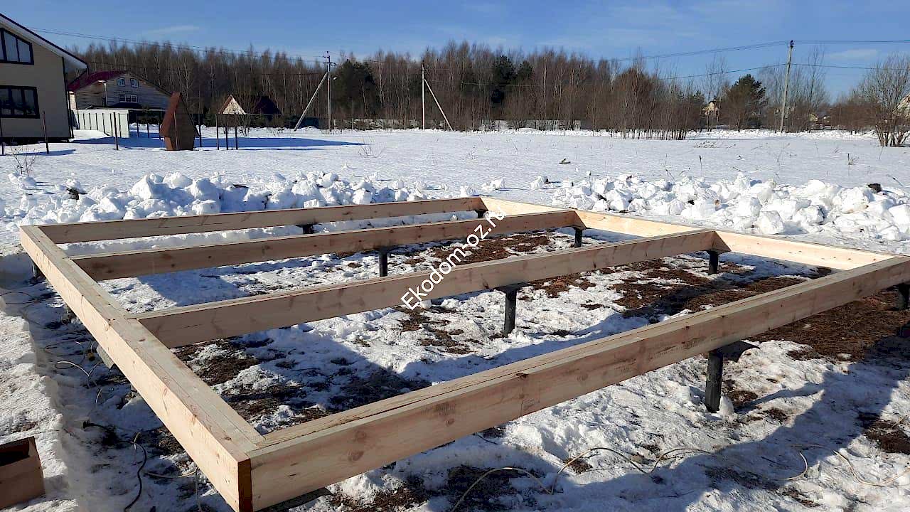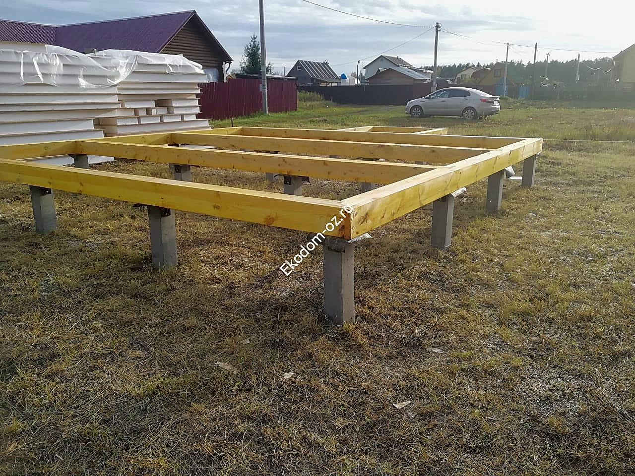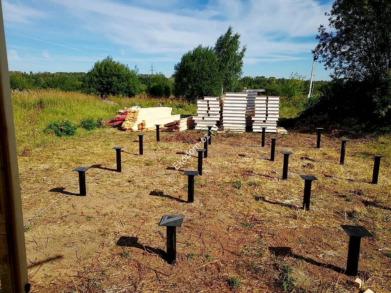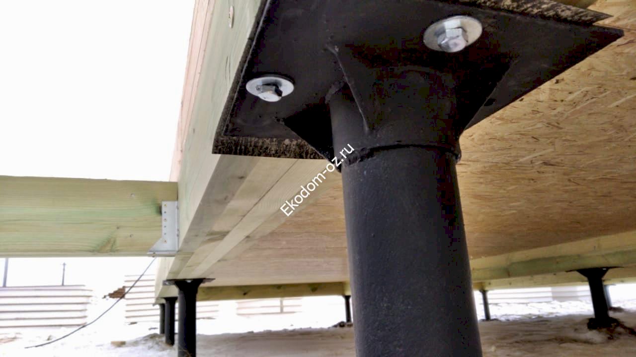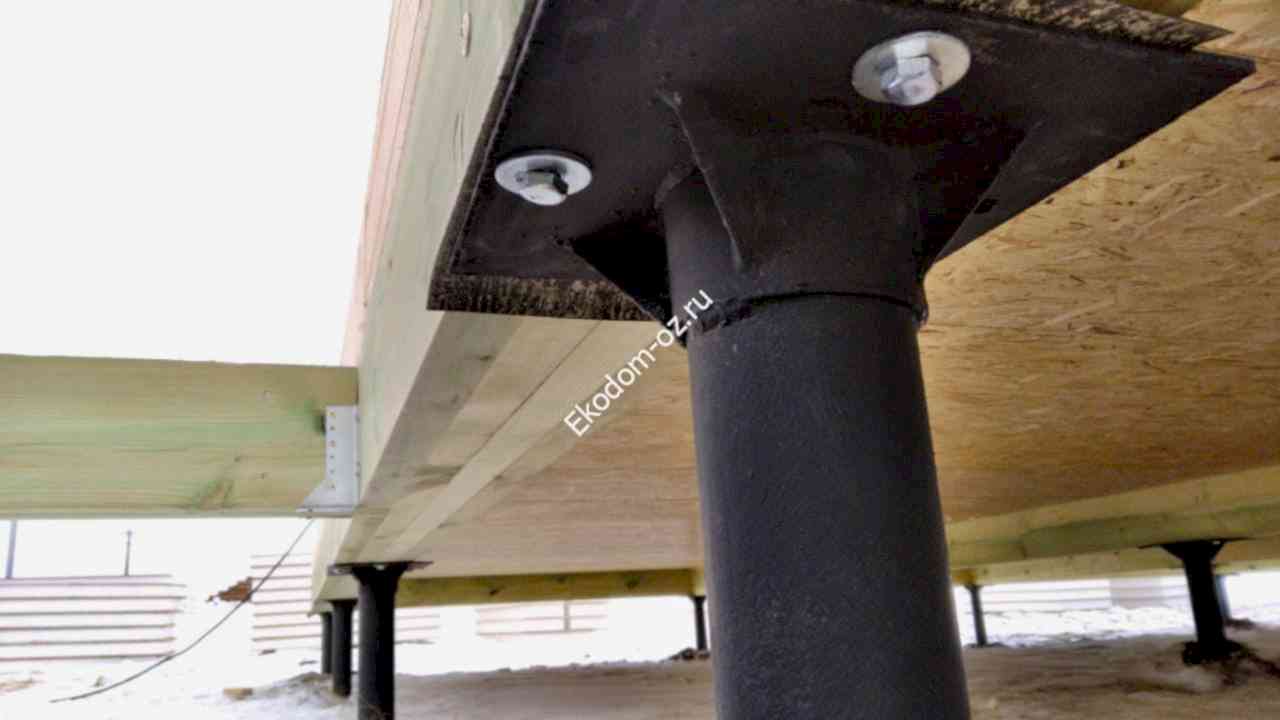 - Фундамент:Пин Ап сваи диаметр 108 мм, оголовки 250х250 мм