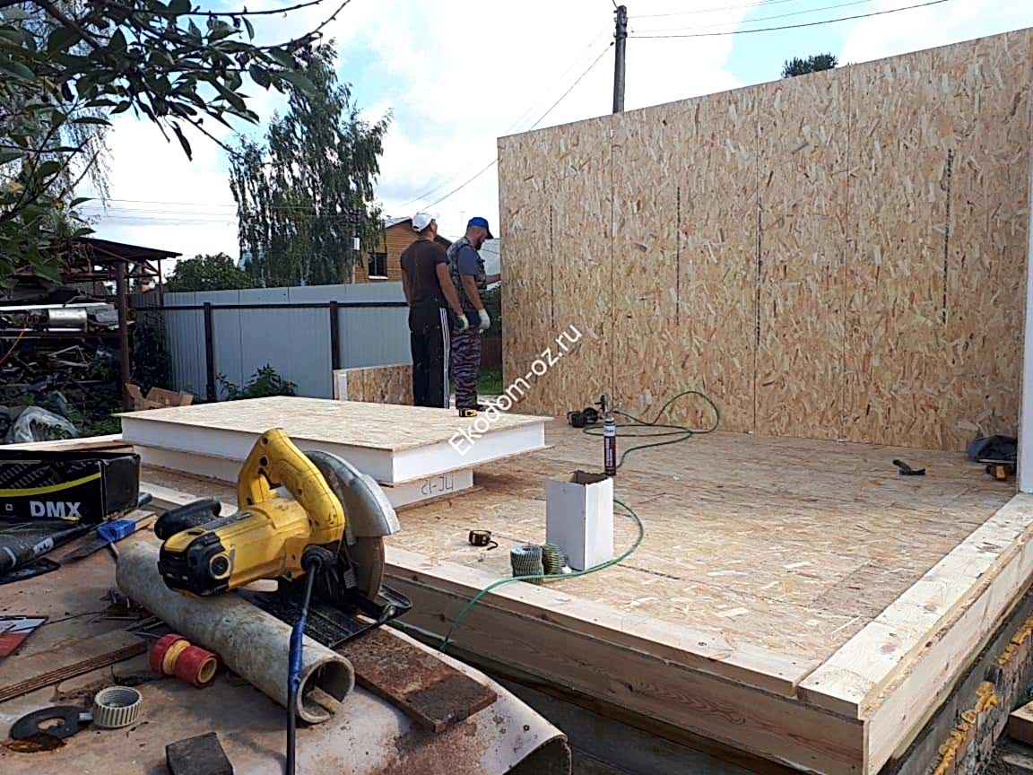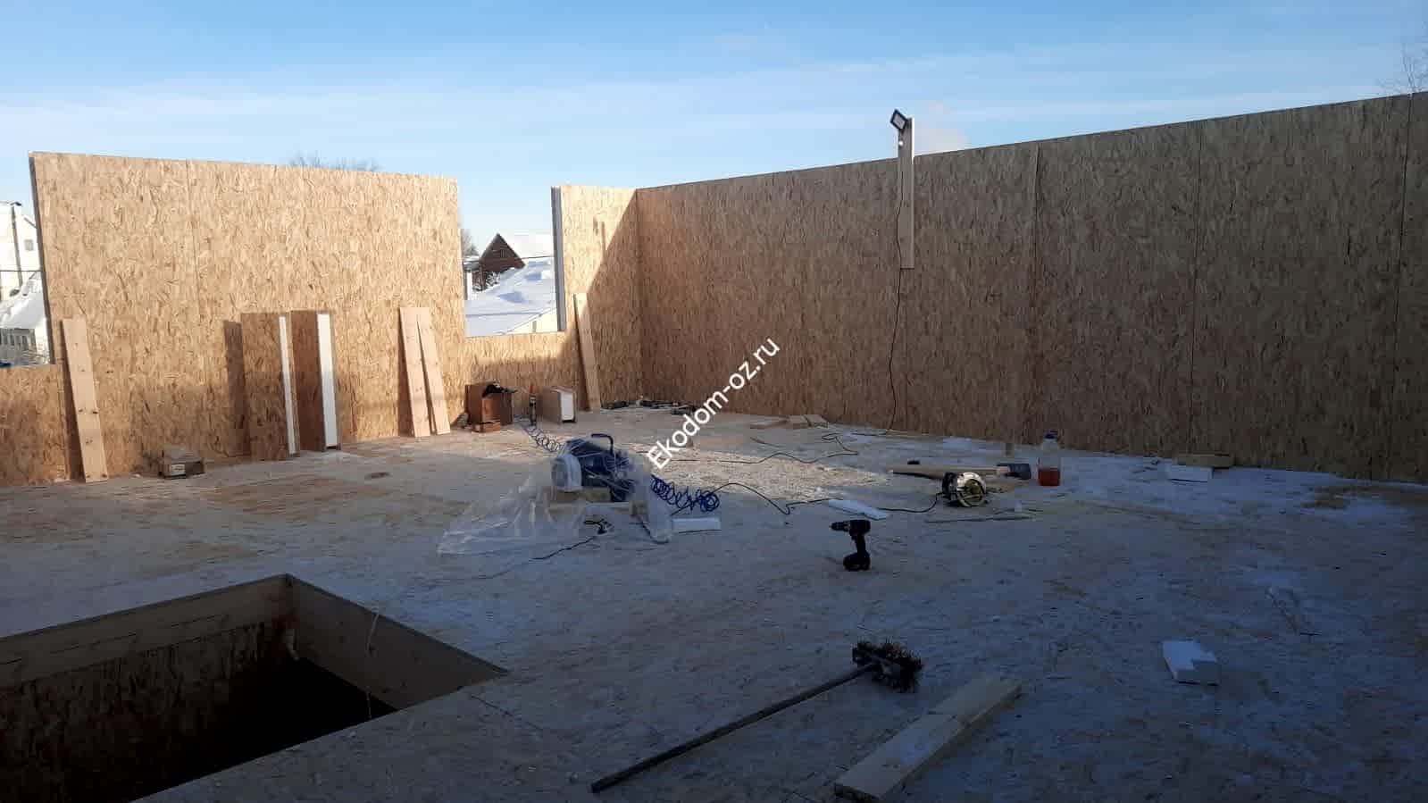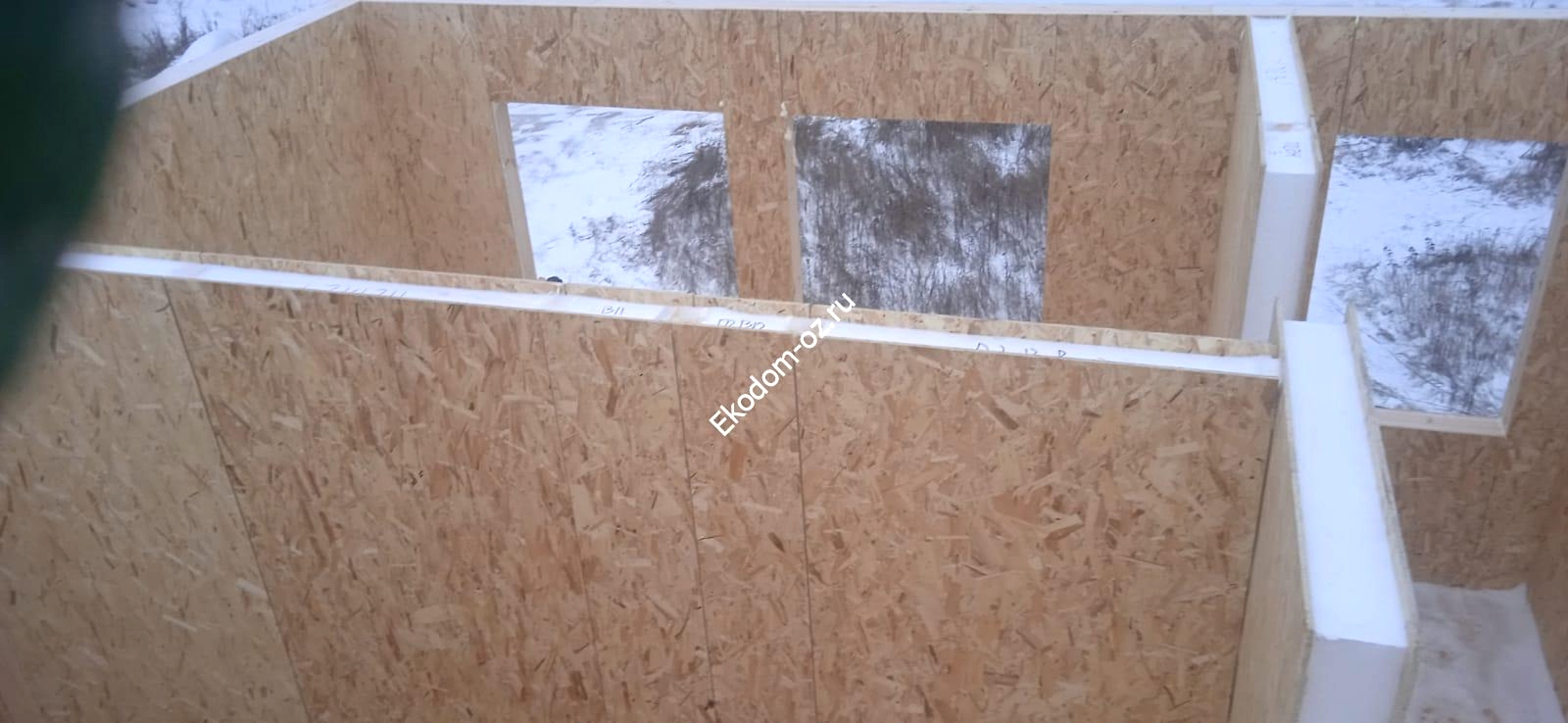 Размер сооружения 8.22х7.260м из СИП панелей в 1,5 Пин Ап (ОСП-3 и ППС «Новопласт»);