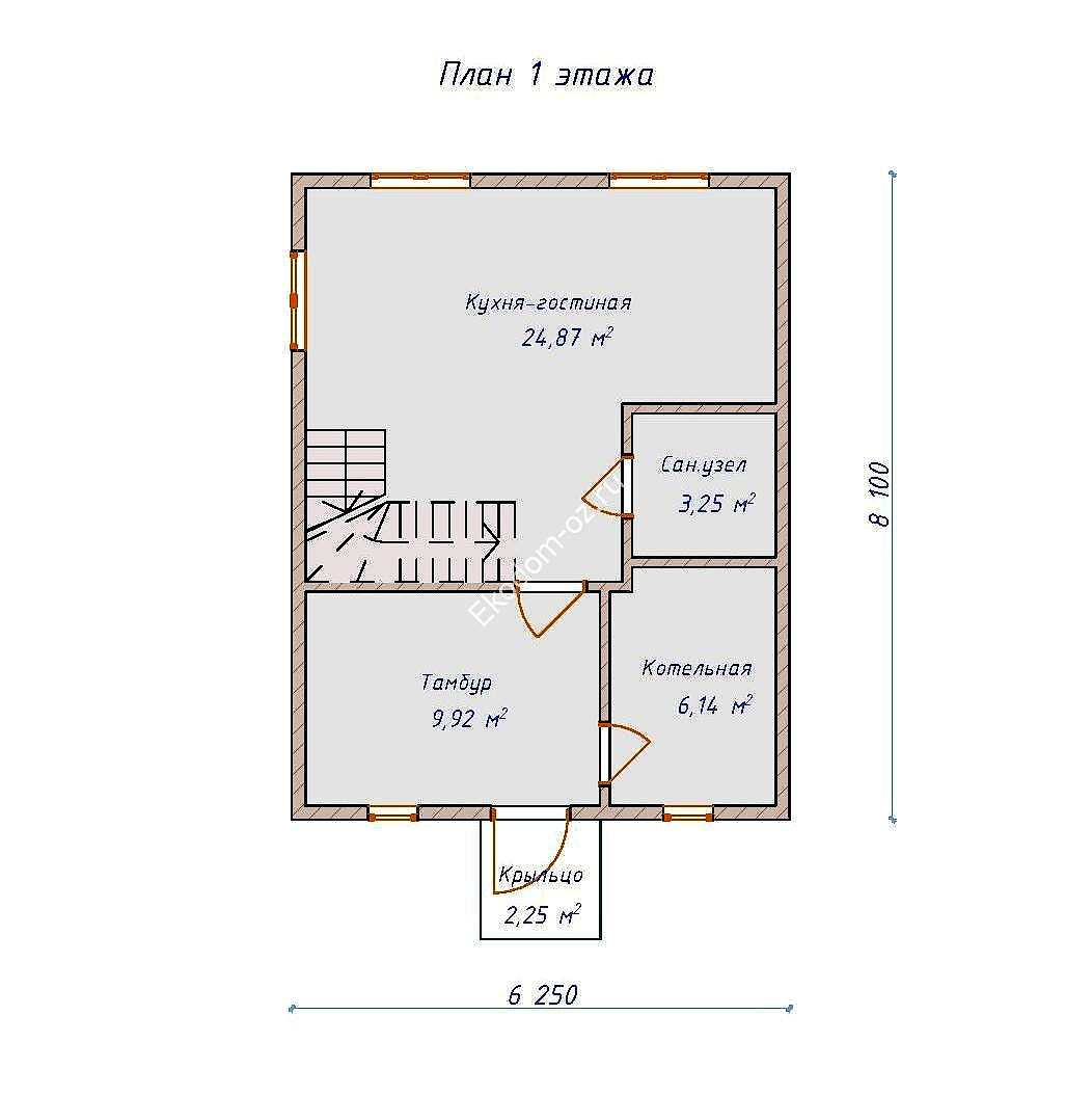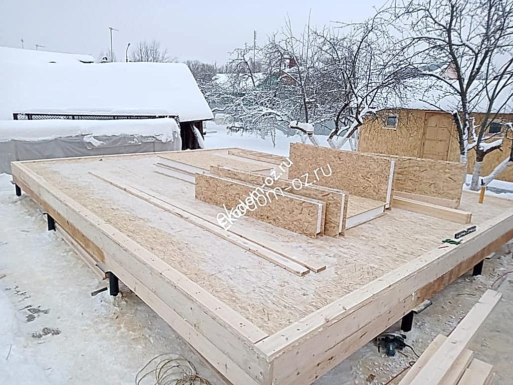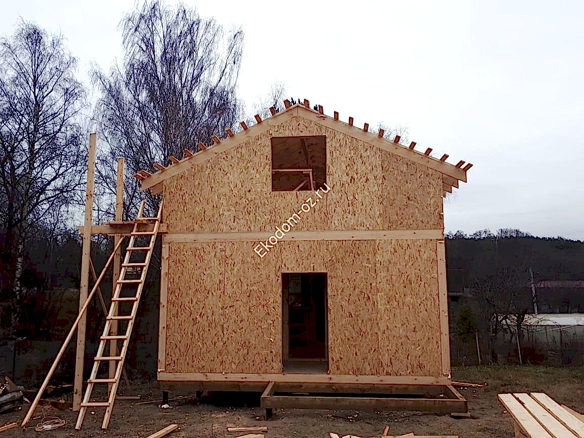 Размер сооружения 8.22х7.260м из СИП панелей в 1,5 Пин Ап (ОСП-3 и ППС «Новопласт»);