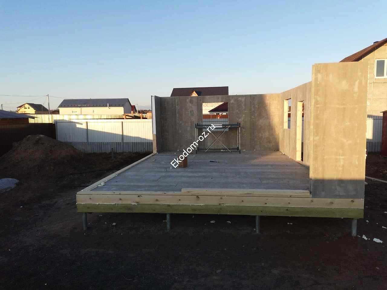 Строительство данного объекта производилось в с. Гауф, Алматинская область Строительство объекта было выполнено за 17 дней. Размер дома 8.125х14м.