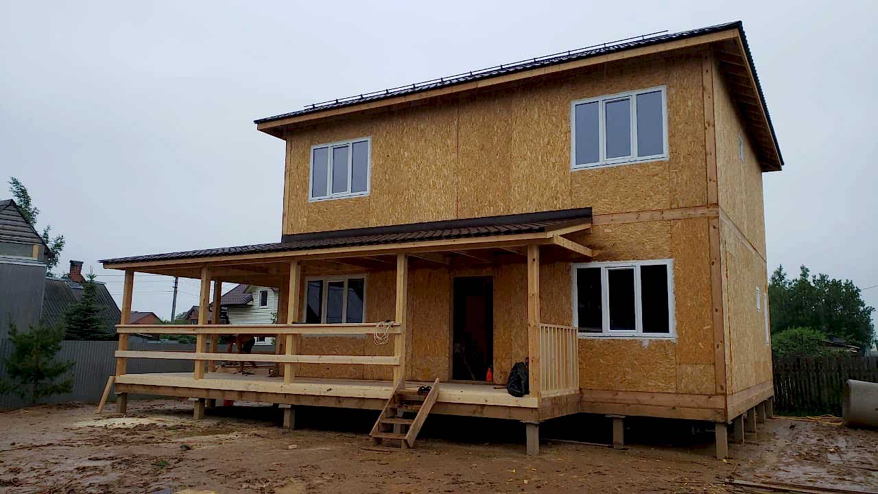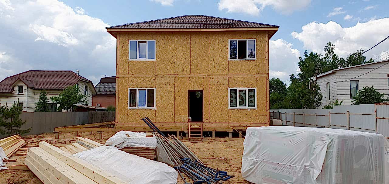 Дом построен в г. Ногинск за 21 день. Теплый контур дома выполнен из SIP панелей с OSB «Калевала».