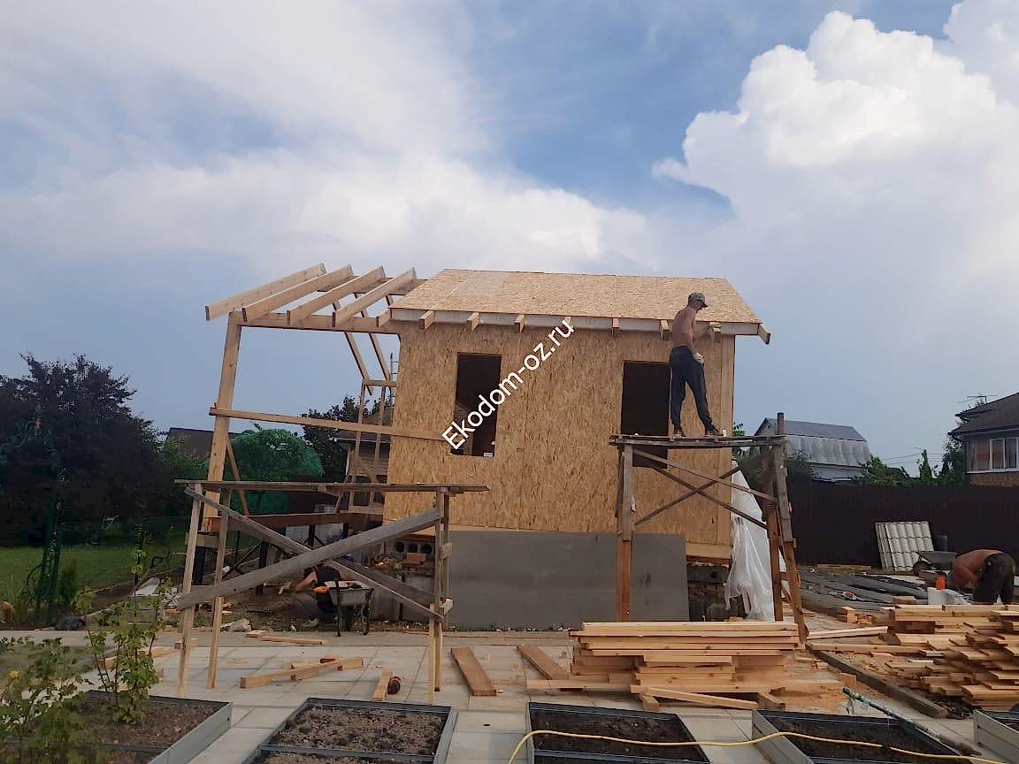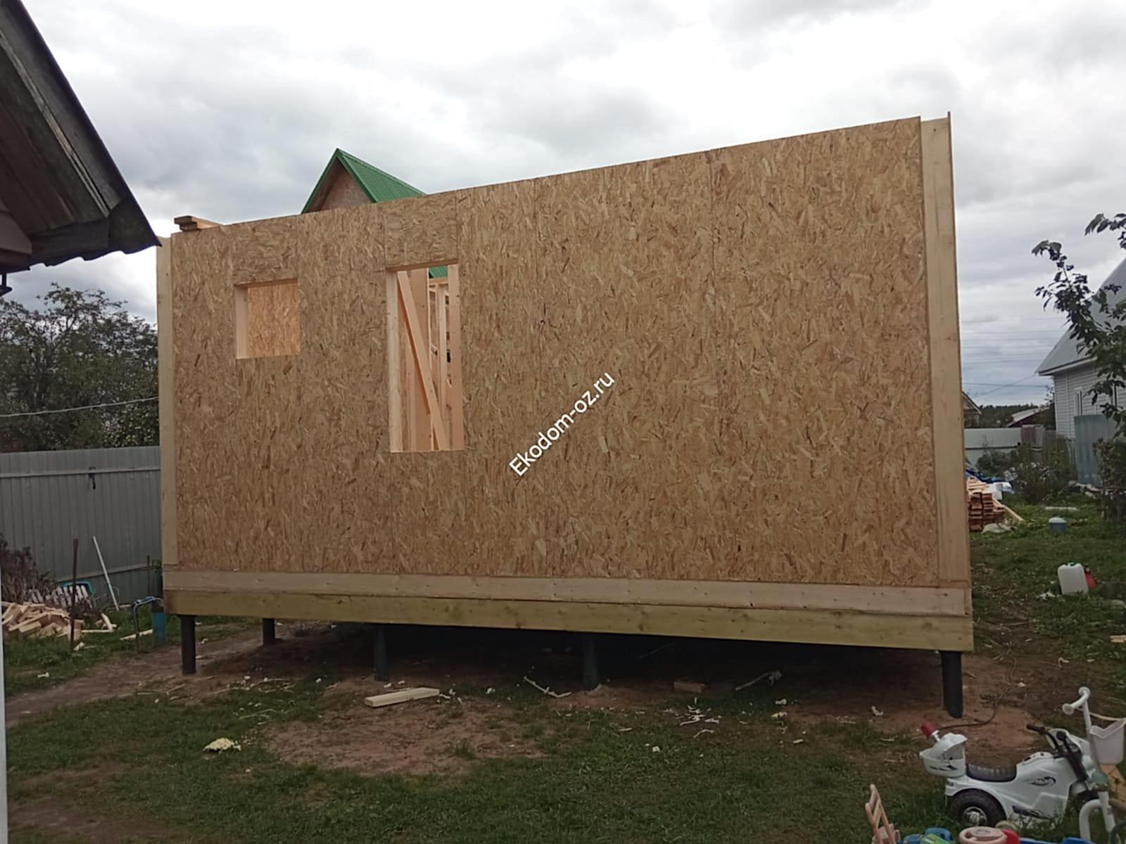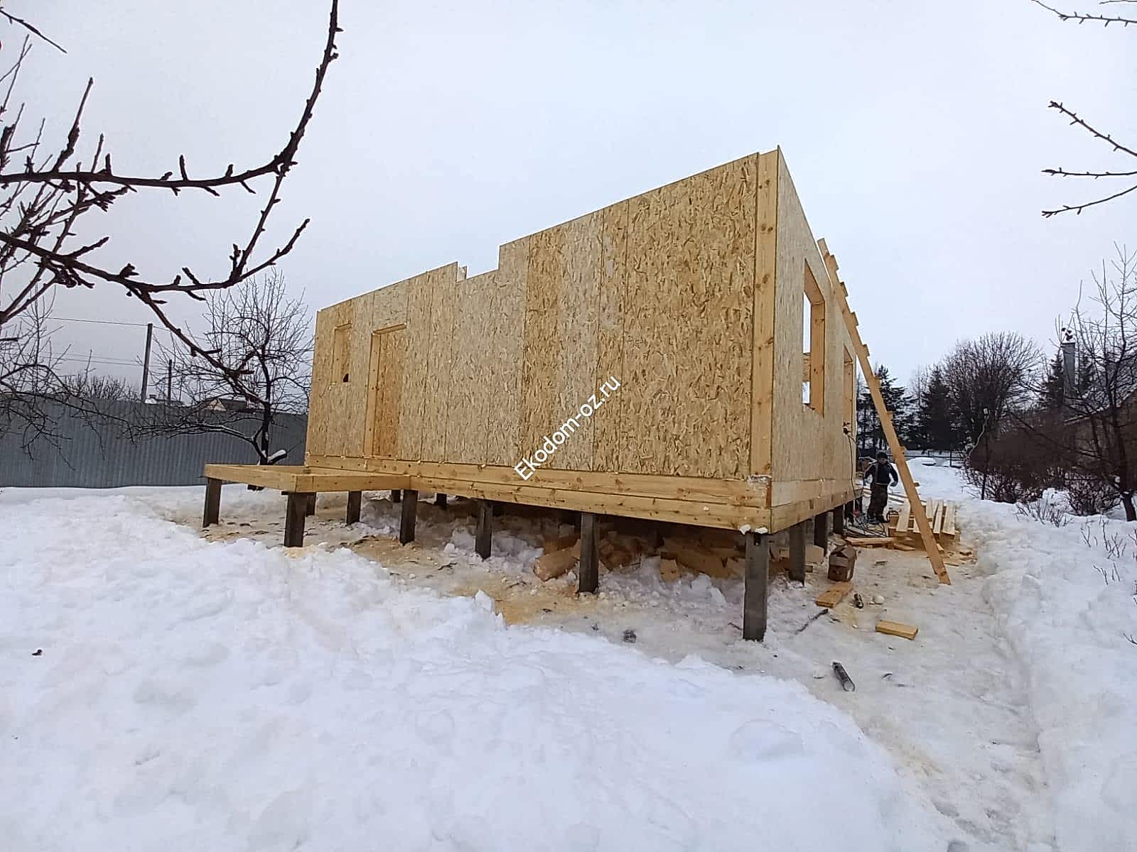 Строительство данного объекта производилось в г. Орехово-Зуево. Строительство объекта было выполнено за 5 дней. Размер дома 12х8.1м.