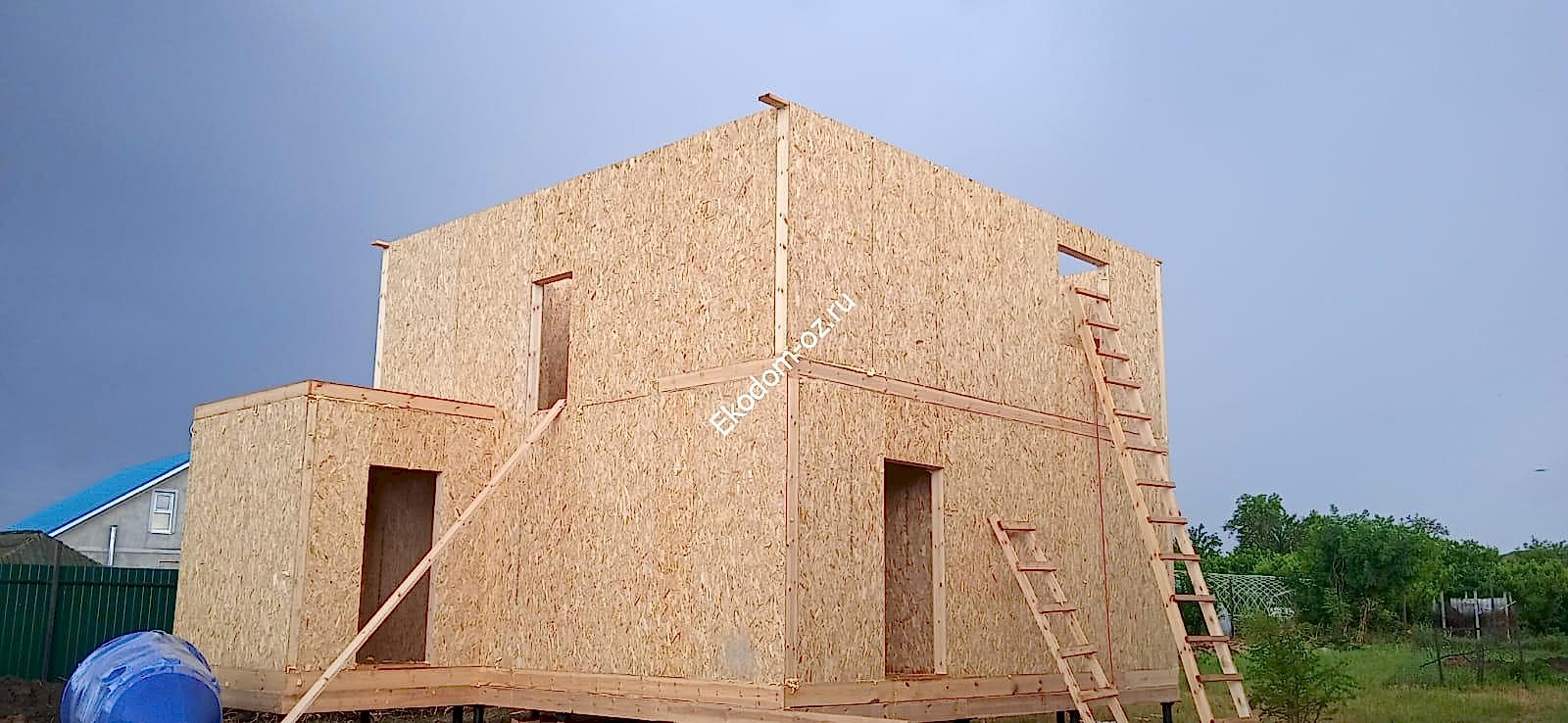 Размер сооружения 7.5х10м из СИП Пин Ап в 2 этажа (ОСП-3 и ППС «Новопласт»);