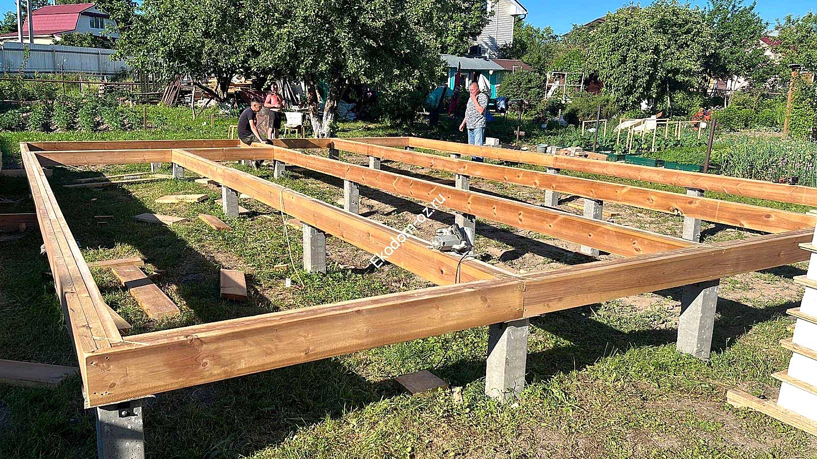 - Терраса 18.5м2:обвязка, пол: доска 50х150