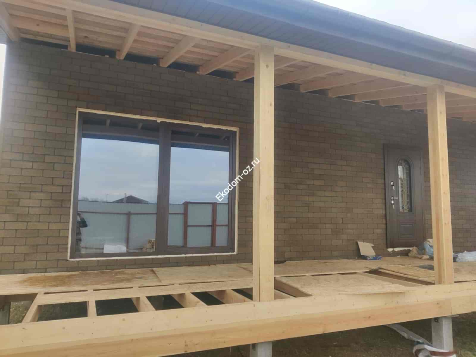 - Терраса 15.01м2:опорные столбы, кровельное покрытие.