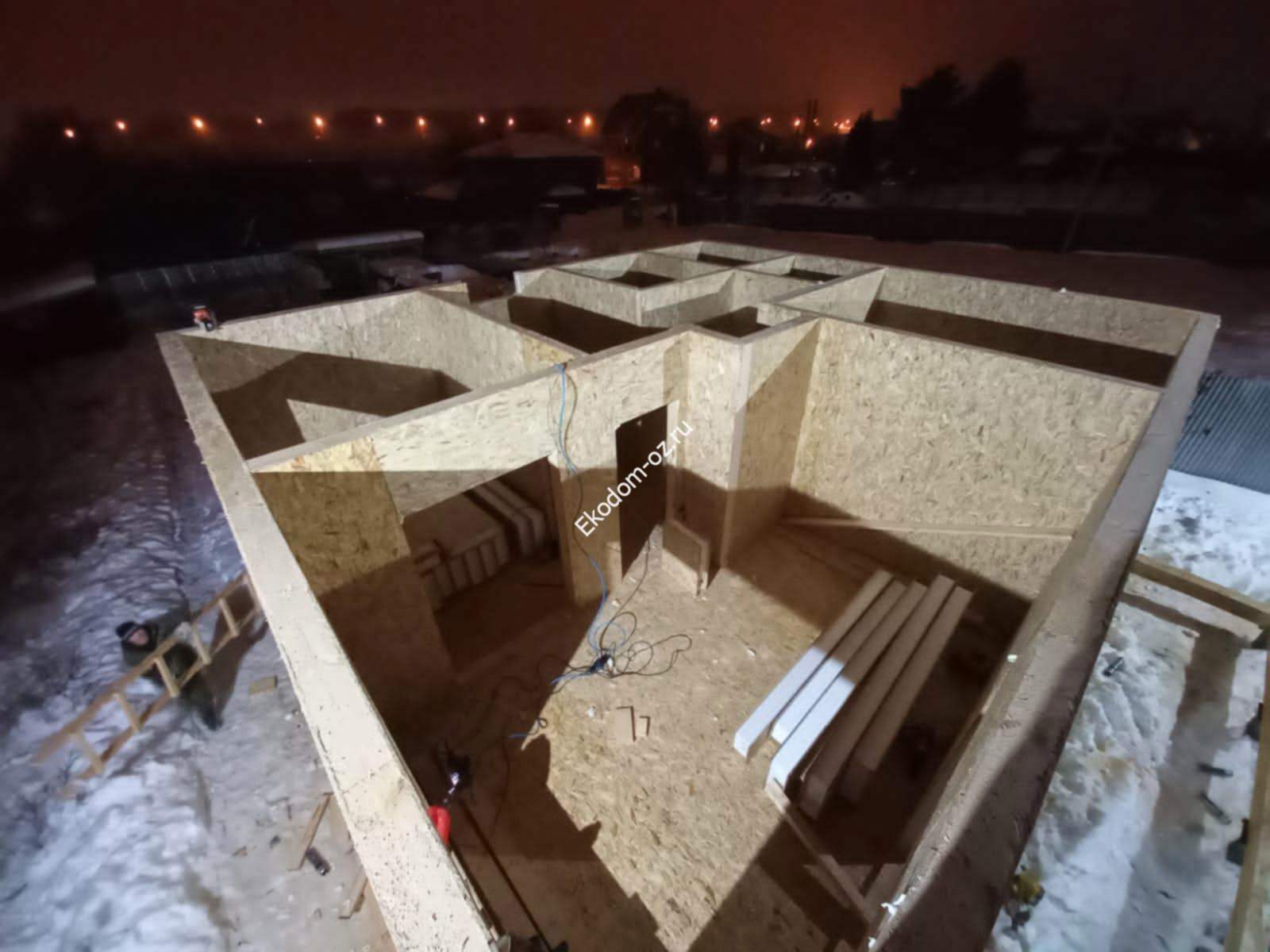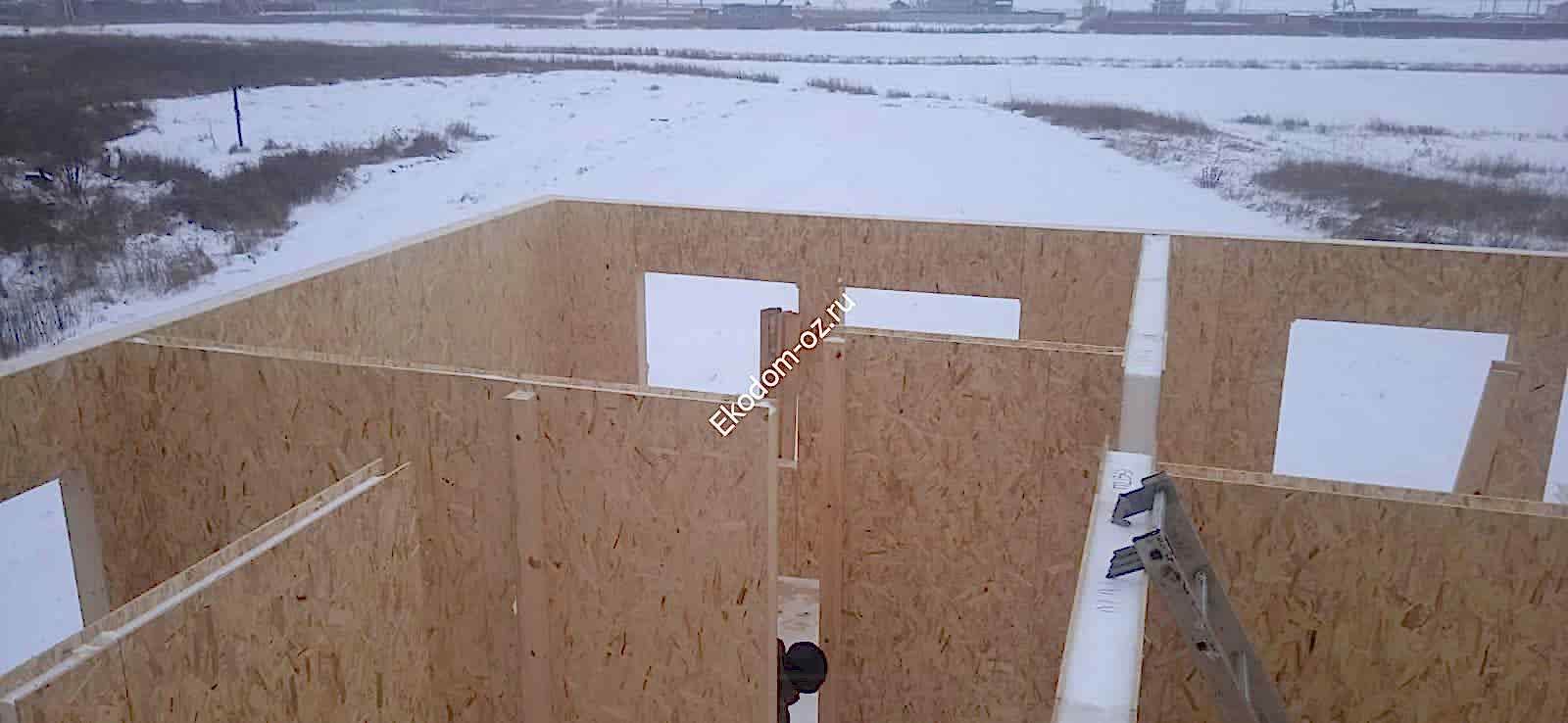 Размер сооружения 12.5х8.125м из СИП панелей в 1 Пин Ап (ОСП-3 и ППС «Новопласт»);