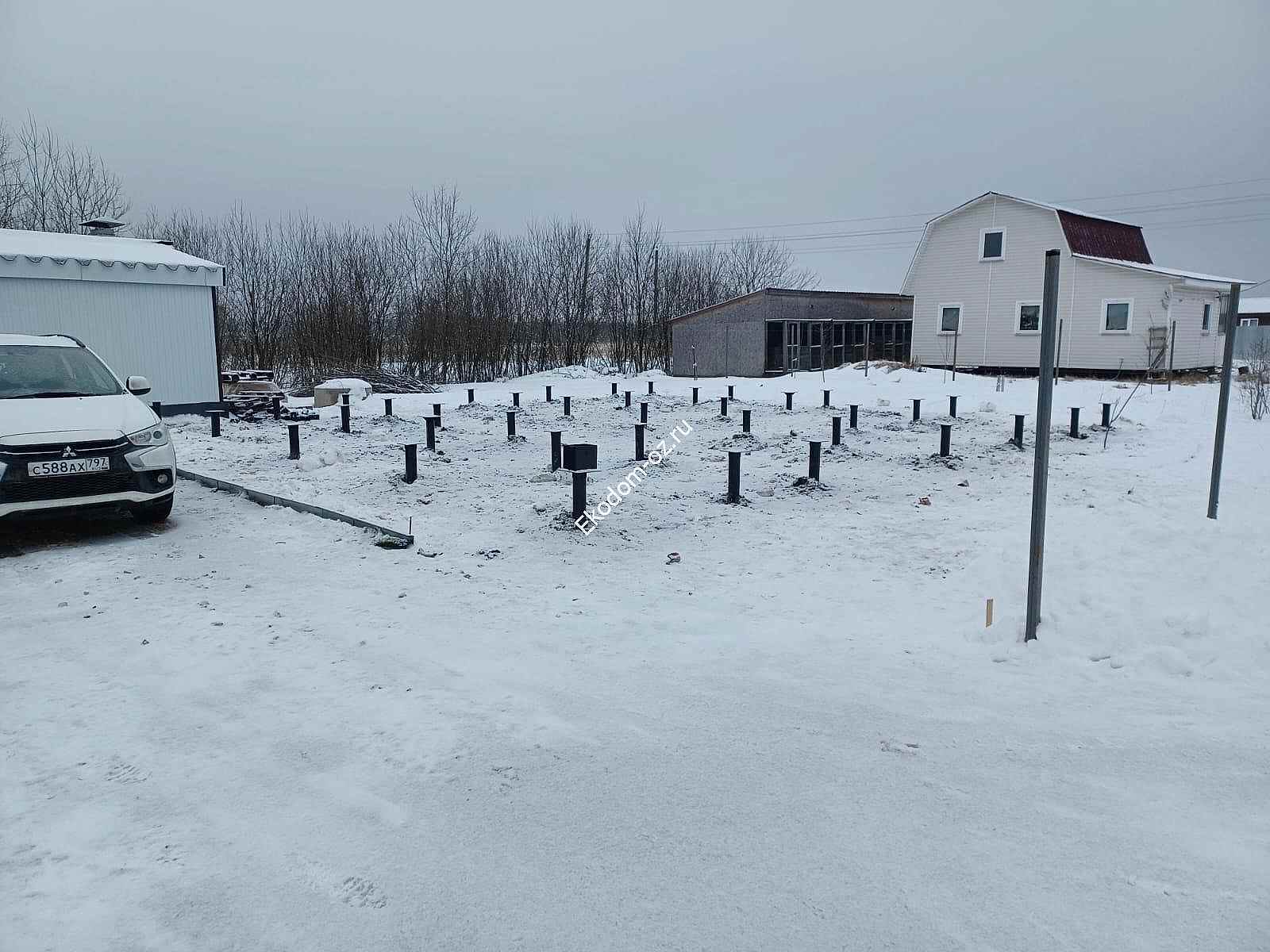 Строительство данного объекта производилось в д. Дуброво, как вы видите на фото, строительство объекта происходило в зимнее время года, если быть точнее в феврале месяце. Строительство объекта было выполнено за 16 дней.