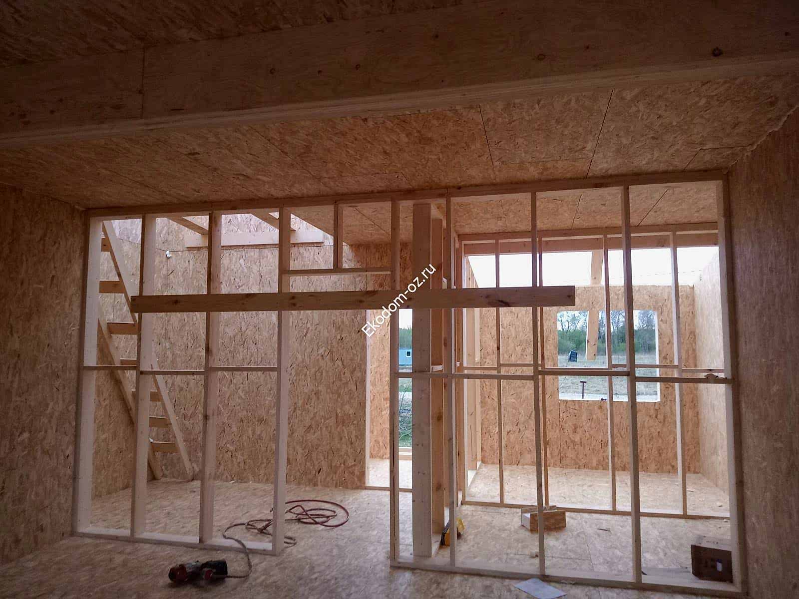 - Перегородки: нулевое перекрытие тамбура СИП 174 мм, Пин Ап стены СИП 174 мм, внутренне перегородки СИП 124 м
