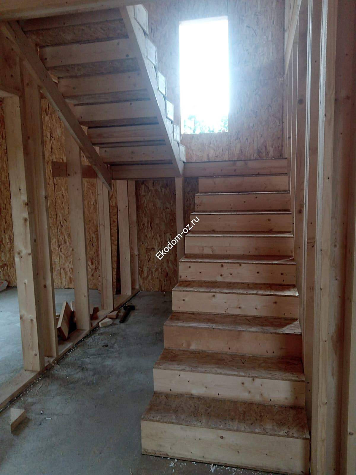 На фото реализованная лестница из SIP панелей в пристройке, выполненной так же нашей бригадой в д. Логиново